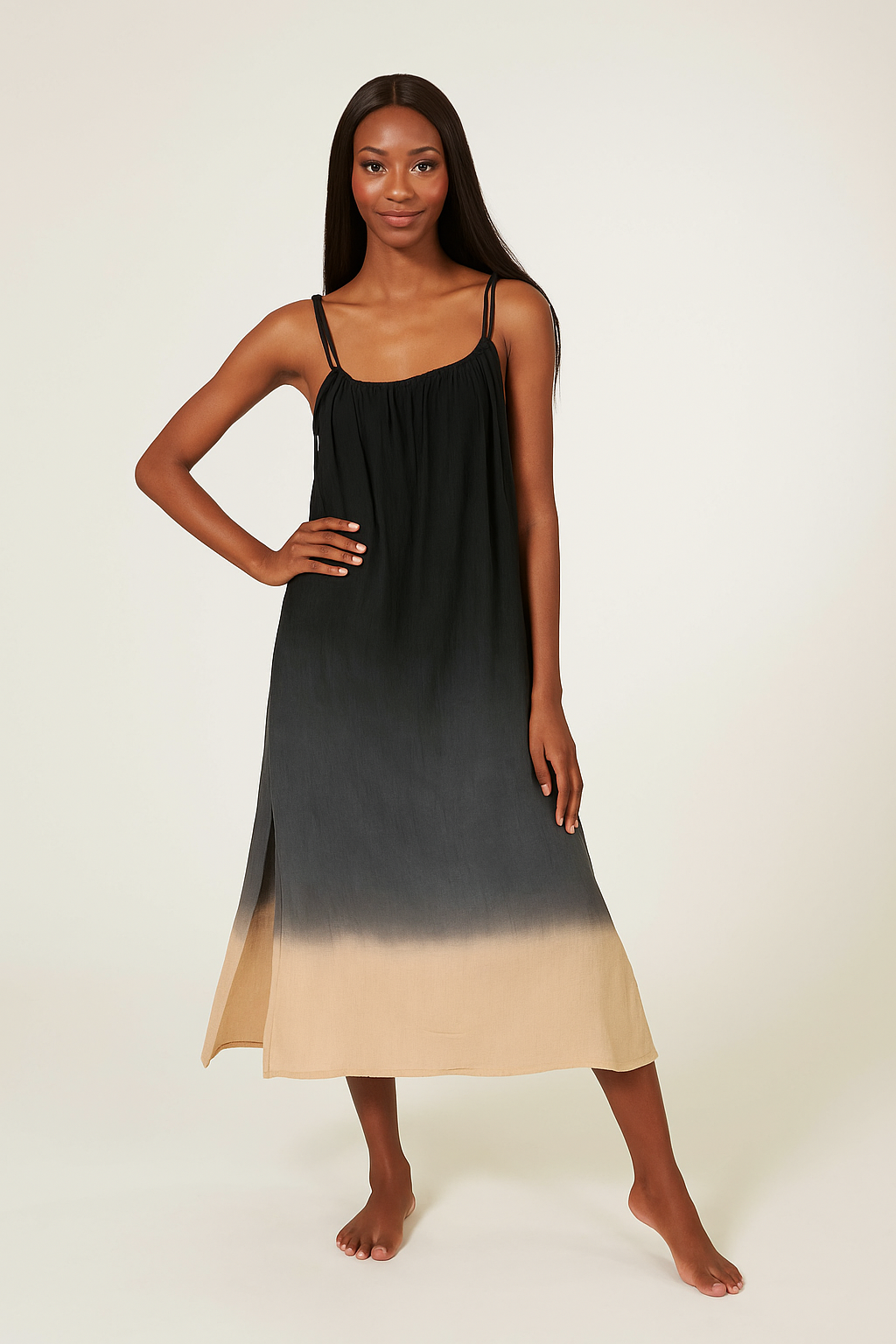 Discover the Bucoli dress, a perfect choice for warm summer days! This original dress, made of a light and comfortable fabric, guarantees an impeccable fit and a feeling of freshness at all times. What makes it special is its adjustable halter neck, supported by a delicate double strap on each side that culminates in a dazzling V-back, with the peace symbol at the center back. The wide side slits add a touch of sensuality, allowing your legs to show off with every step. The midi cut provides comfort creating a very fresh and summery look.