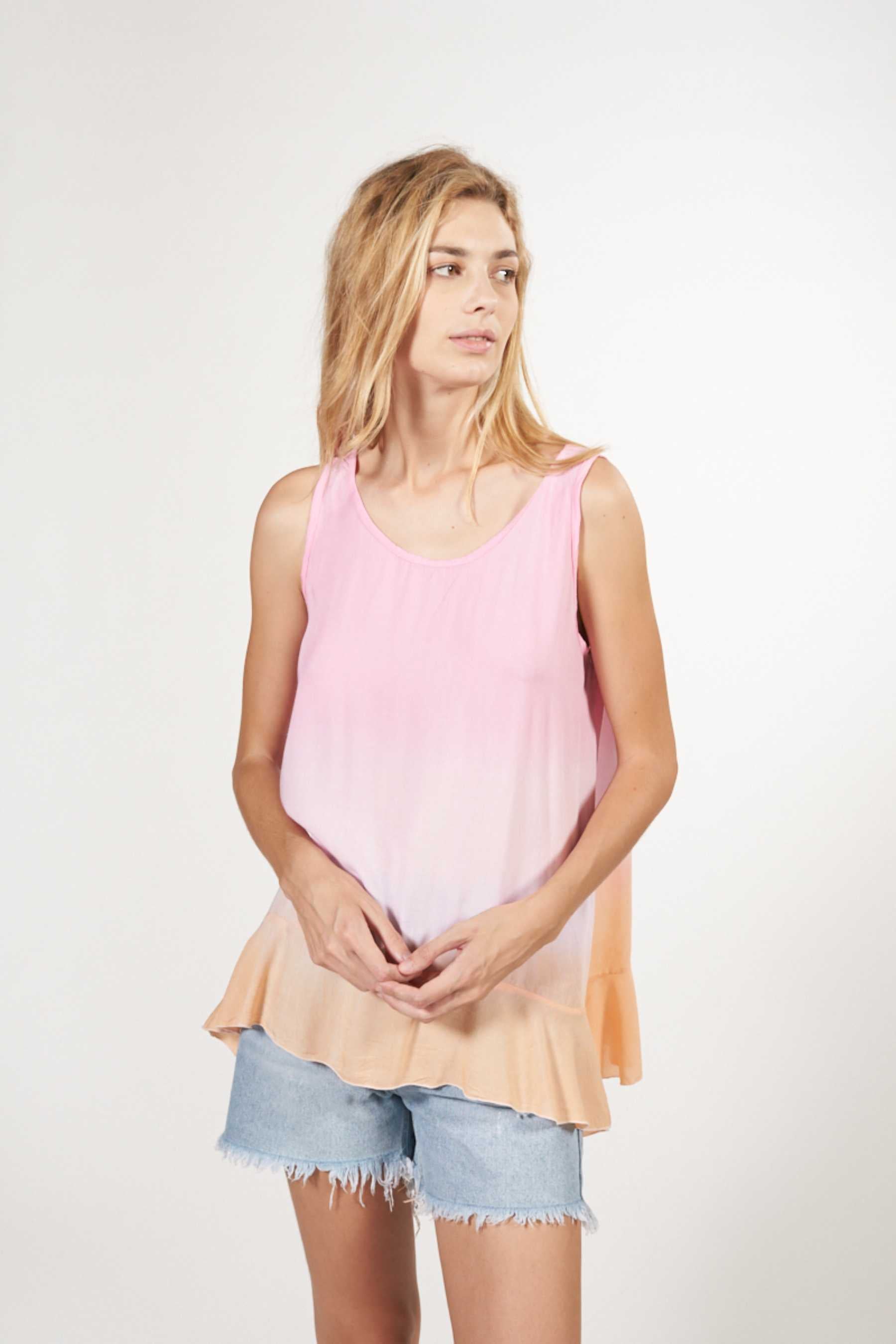 The Labo top is the perfect ally to enjoy your spring and summer plans! With a rounded neckline both on the chest and back, and wide straps that guarantee comfort, this top is ideal for any silhouette. Its slightly flared cut and its original hem with longer sides and peak finishes give it a unique touch. Combine it with our Fryes pants in the same tie dye for a total look.
