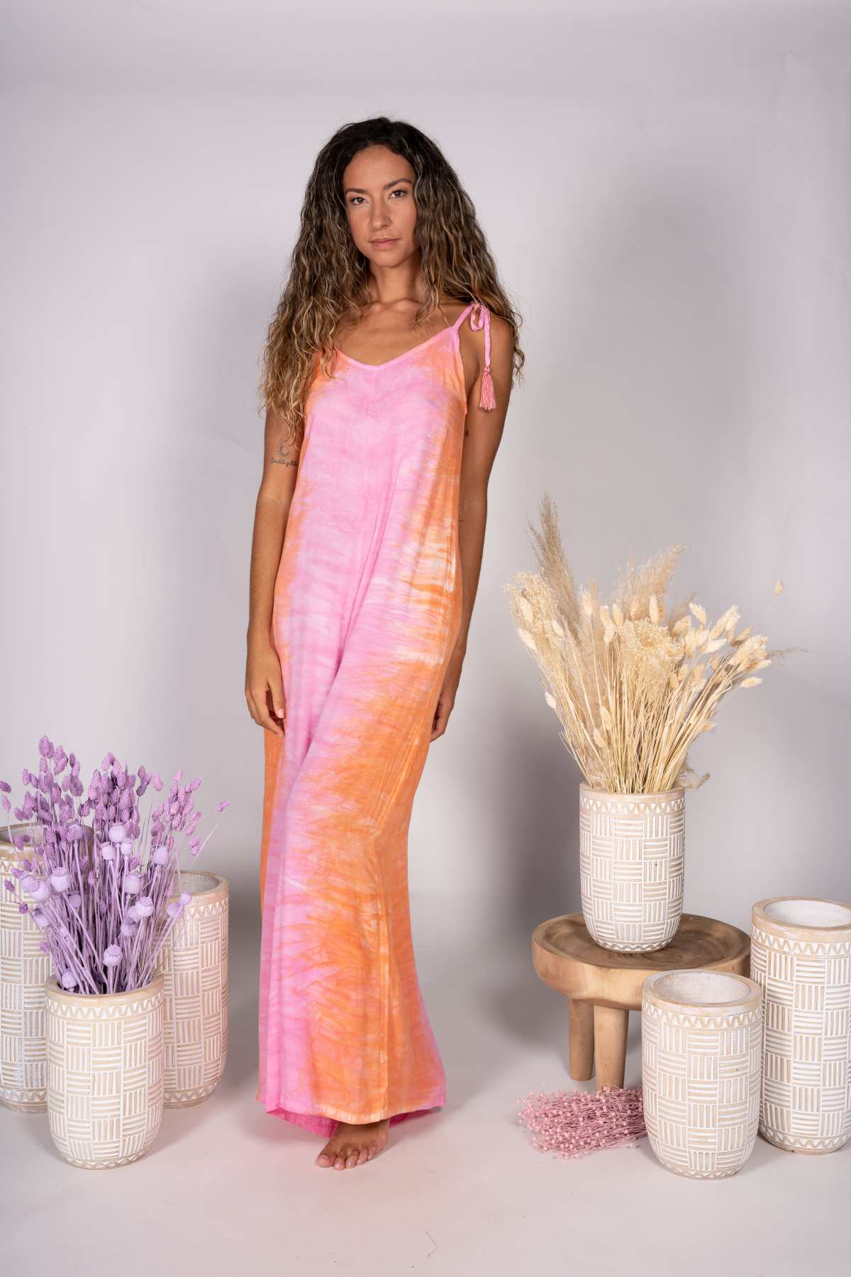 La confección se realiza en Bali, Indonesia, la cuna del Tie Dye, en pequeños talleres familiares de artesanos que, uno a uno, confeccionan, tiñen y cosen a mano las prendas, creando verdaderas obras de arte únicas y exclusivas.