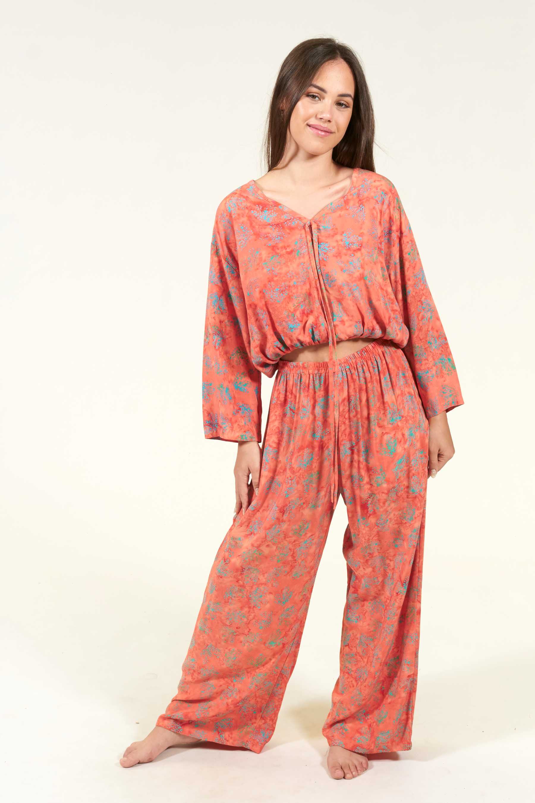 La confección se realiza en Bali, Indonesia, la cuna del Tie Dye, en pequeños talleres familiares de artesanos que, uno a uno, confeccionan, tiñen y cosen a mano las prendas, creando verdaderas obras de arte únicas y exclusivas.