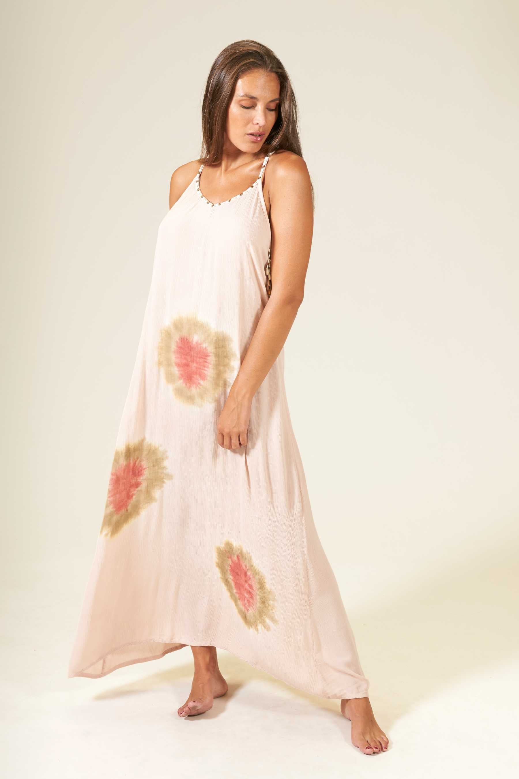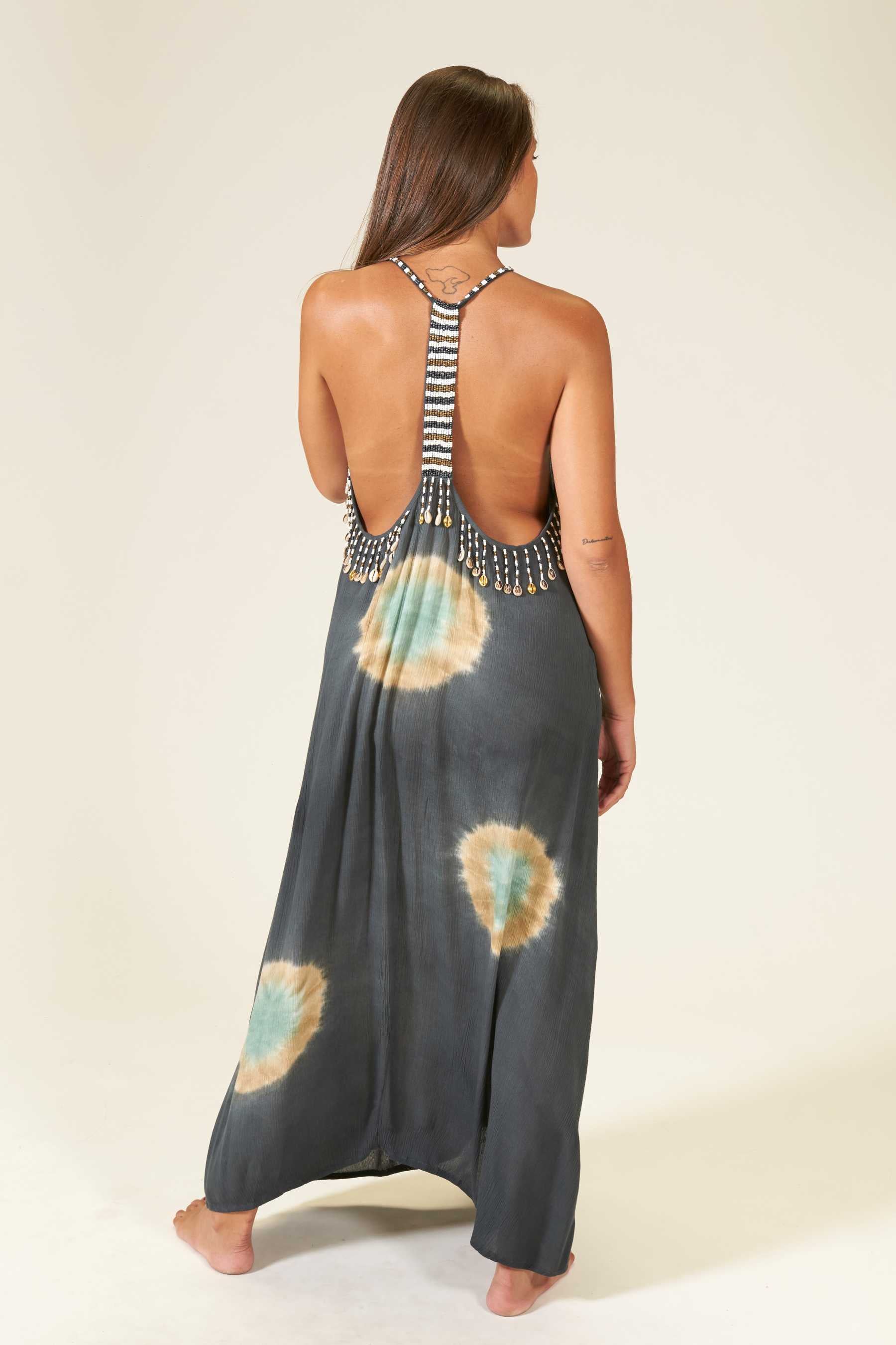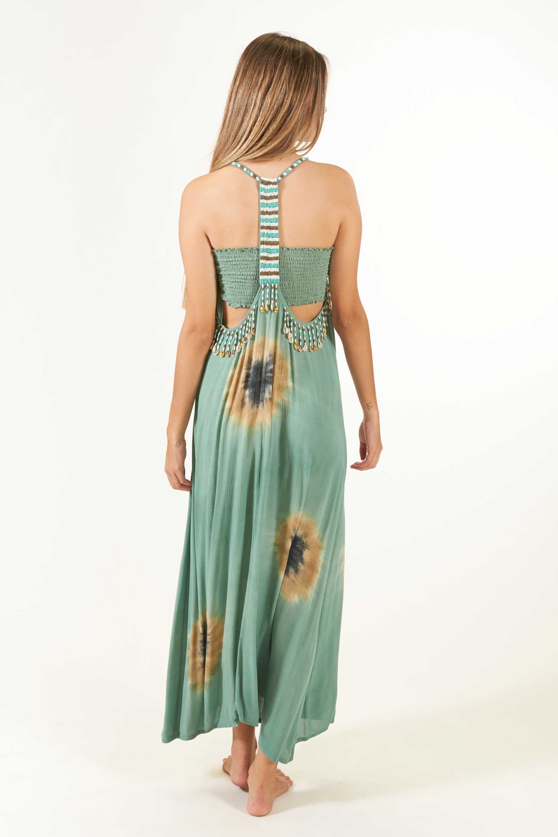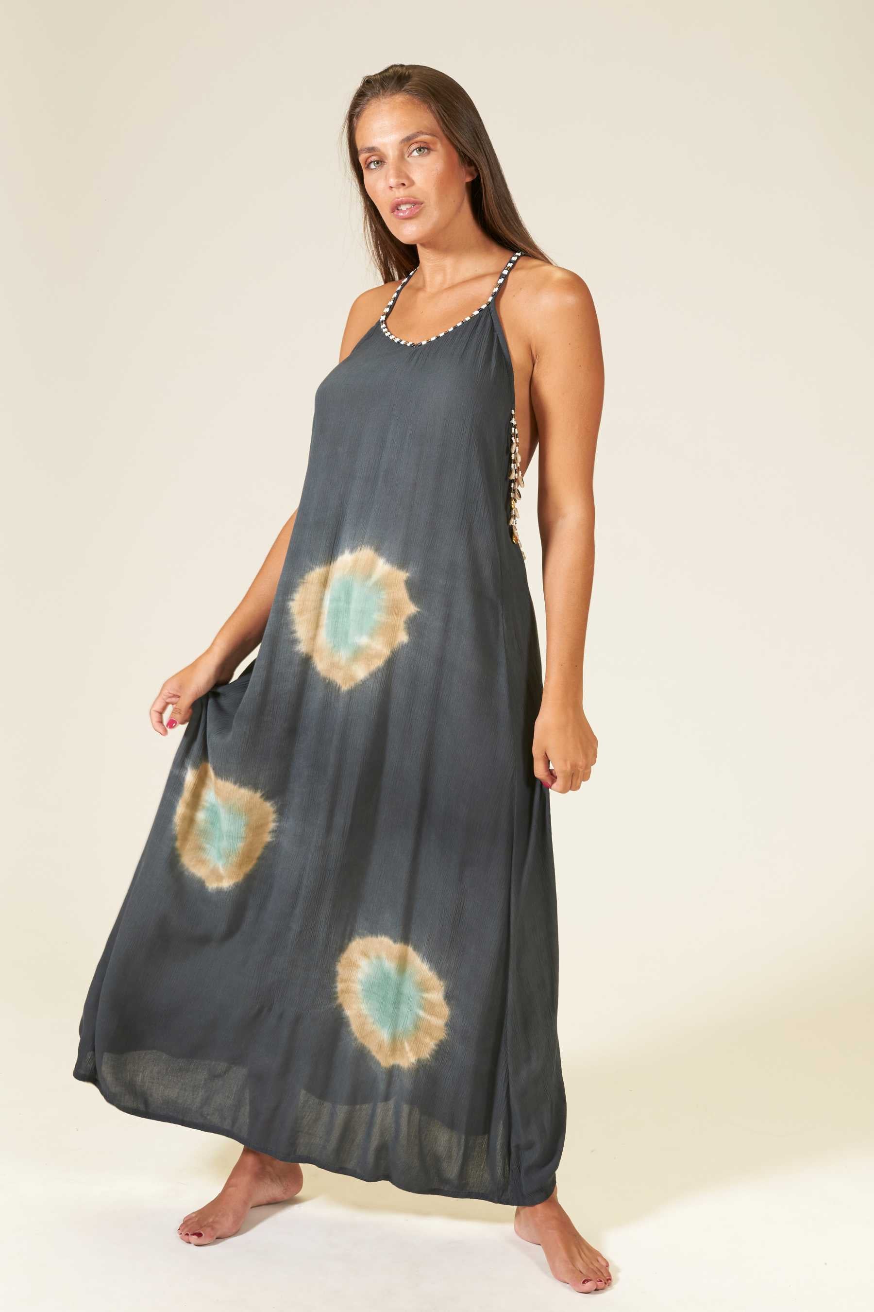 El vestido largo Anse es una joya de nuestra colección, perfecta para los días soleados del verano. Con una espalda que roba miradas, adornada con abalorios y conchas naturales cosidas a mano, este vestido es una verdadera obra de arte. Además, incluye un bandeau que puedes utilizar, si te sientes más cómoda y lucir el vestido igual de bonito. Su largo hasta los pies y su caída fluida lo hacen una elección elegante y versátil. Disponible en una gama de colores sólidos y en nuestro exclusivo diseño de tie dye Wabisabi para aquellas que buscan un estilo más bohemio. El tie dye está realizado a mano con pigmentos naturales, asegurando un acabado único en cada prenda.