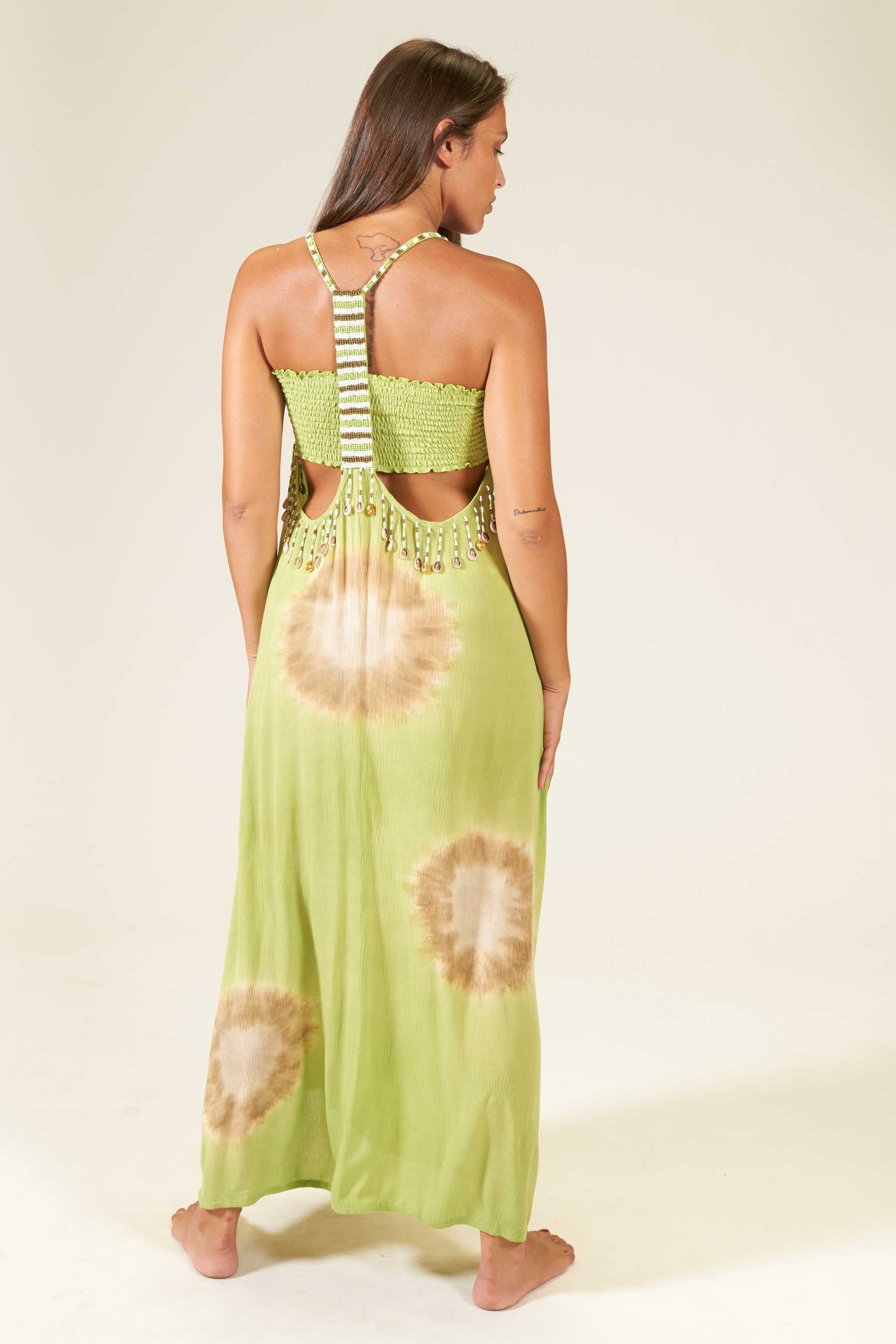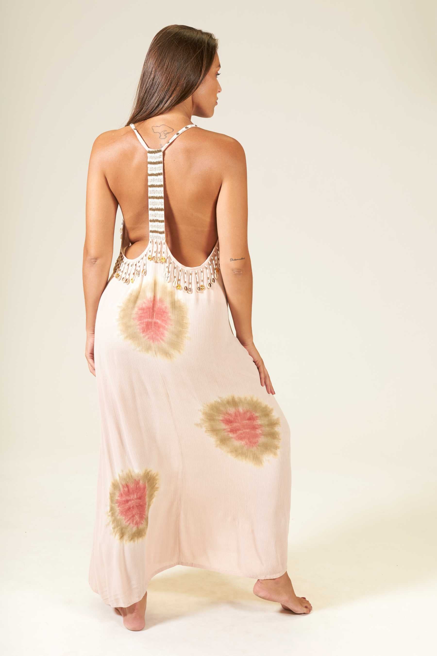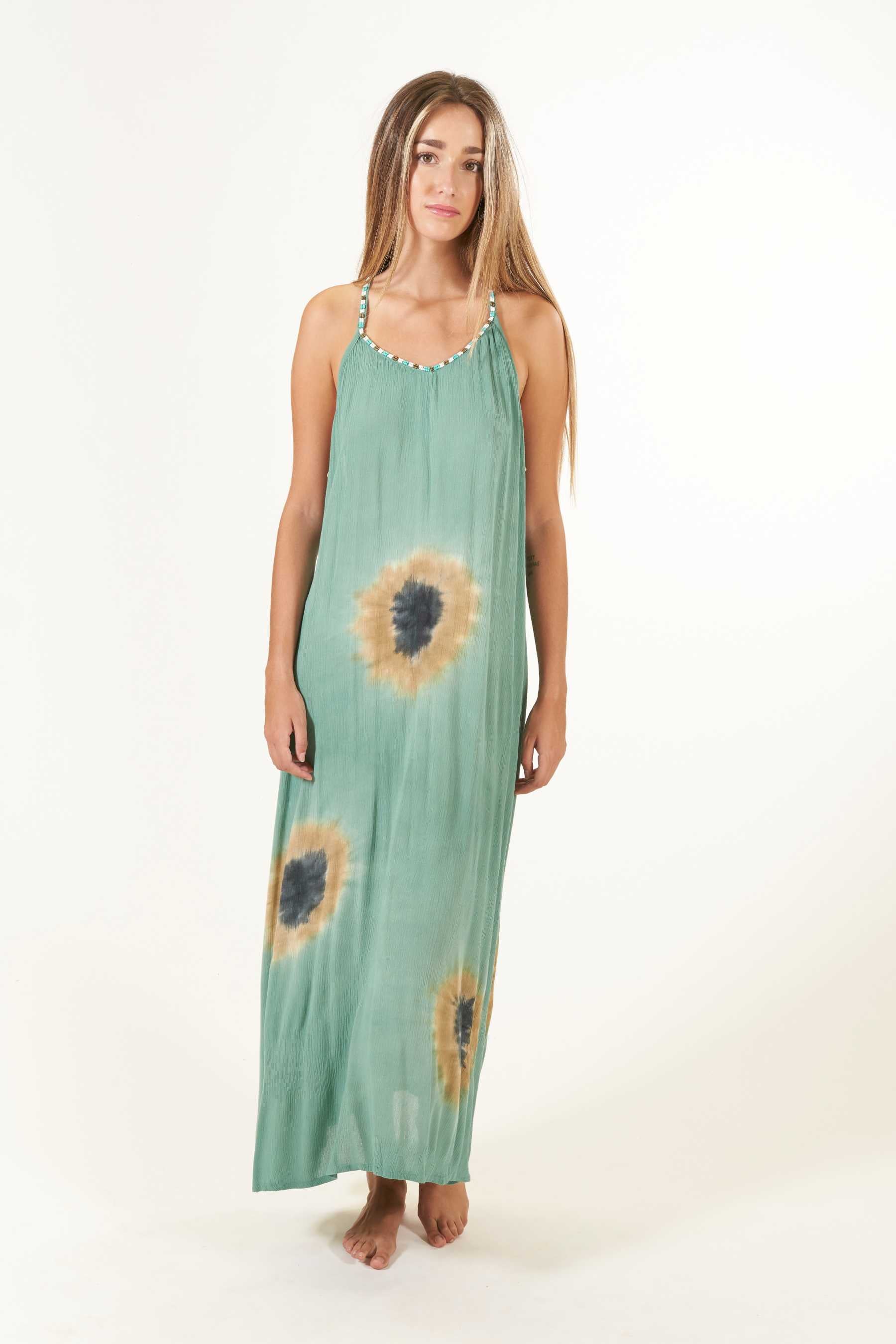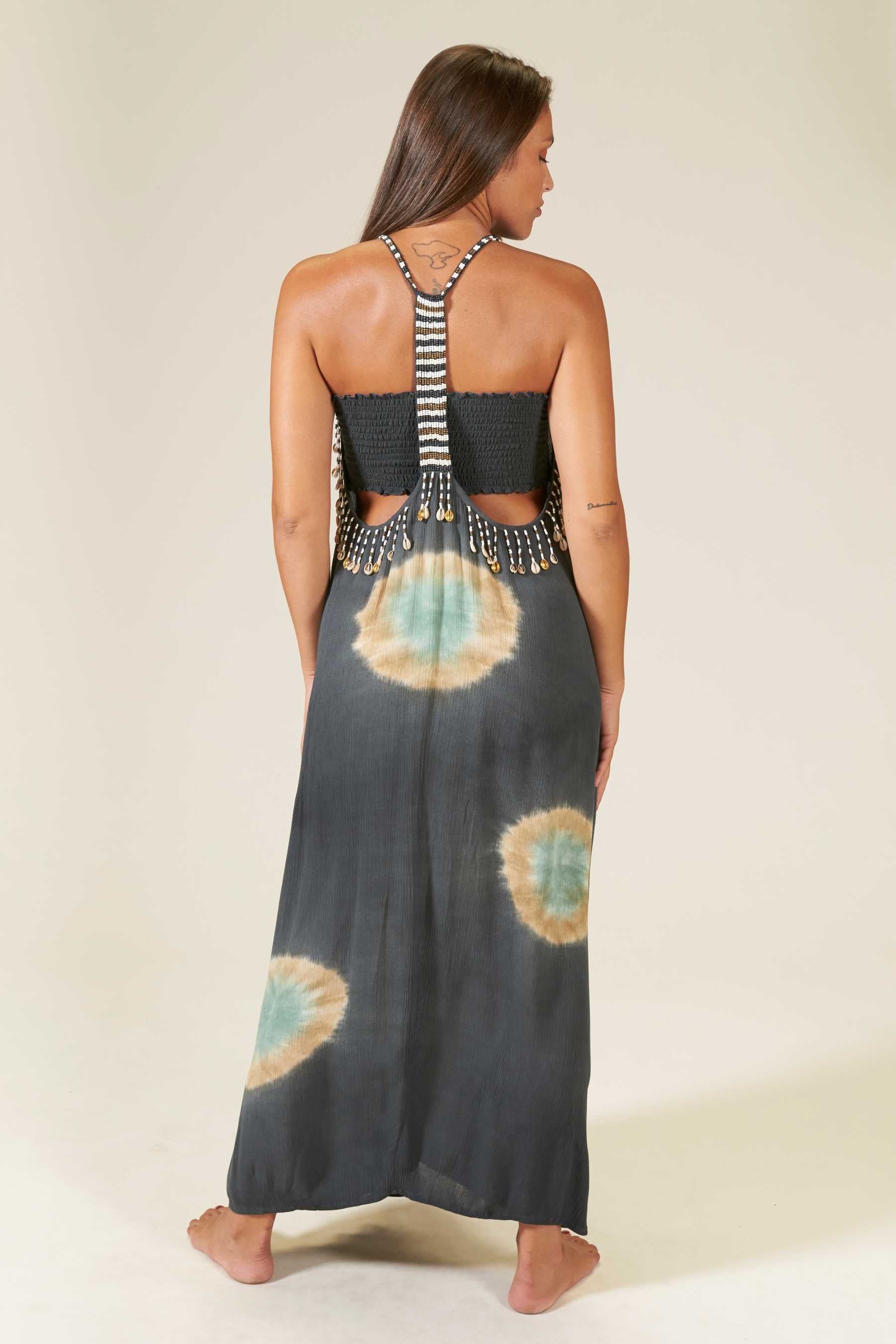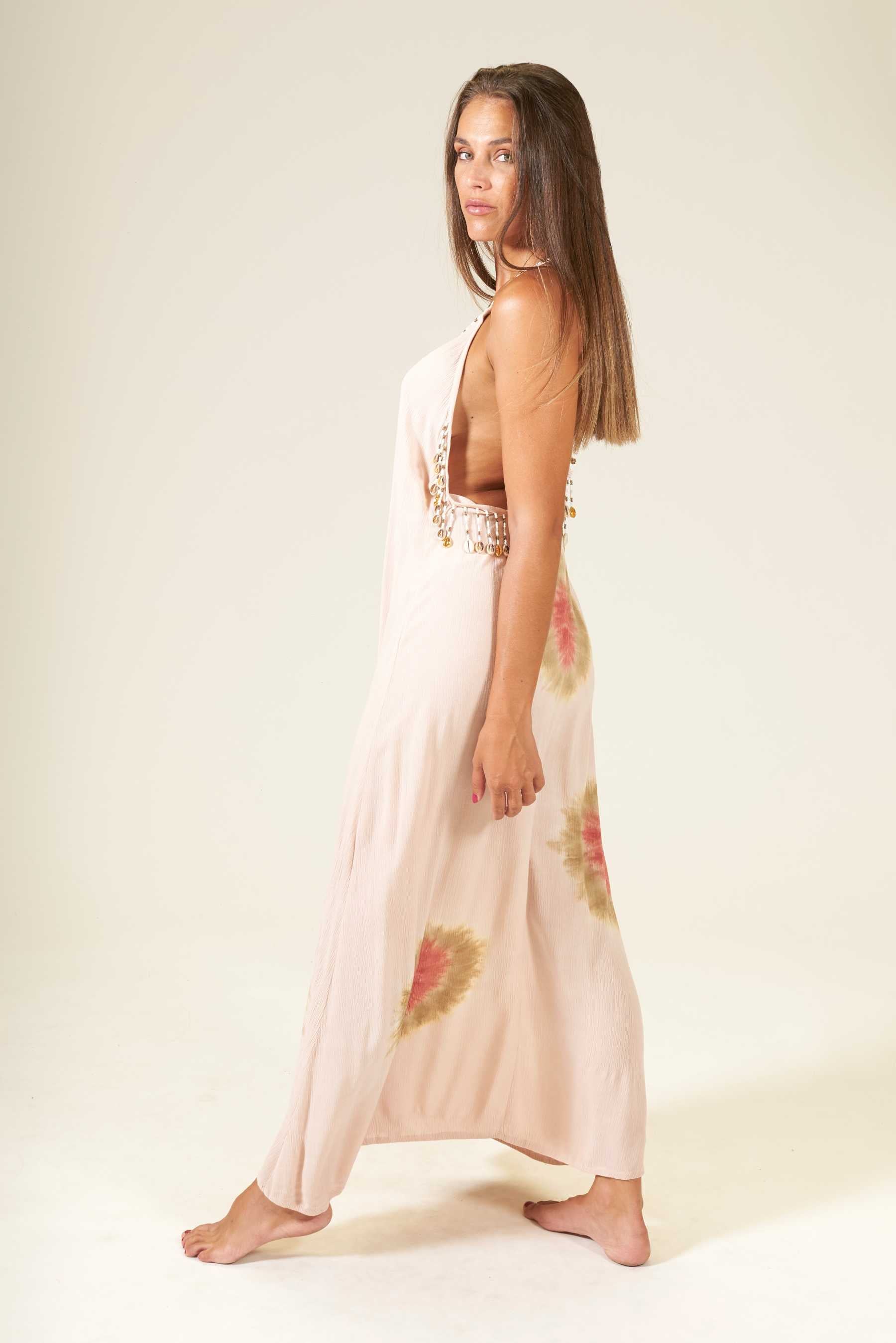 El vestido largo Anse es una joya de nuestra colección, perfecta para los días soleados del verano. Con una espalda que roba miradas, adornada con abalorios y conchas naturales cosidas a mano, este vestido es una verdadera obra de arte. Además, incluye un bandeau que puedes utilizar, si te sientes más cómoda y lucir el vestido igual de bonito. Su largo hasta los pies y su caída fluida lo hacen una elección elegante y versátil. Disponible en una gama de colores sólidos y en nuestro exclusivo diseño de tie dye Wabisabi para aquellas que buscan un estilo más bohemio. El tie dye está realizado a mano con pigmentos naturales, asegurando un acabado único en cada prenda.