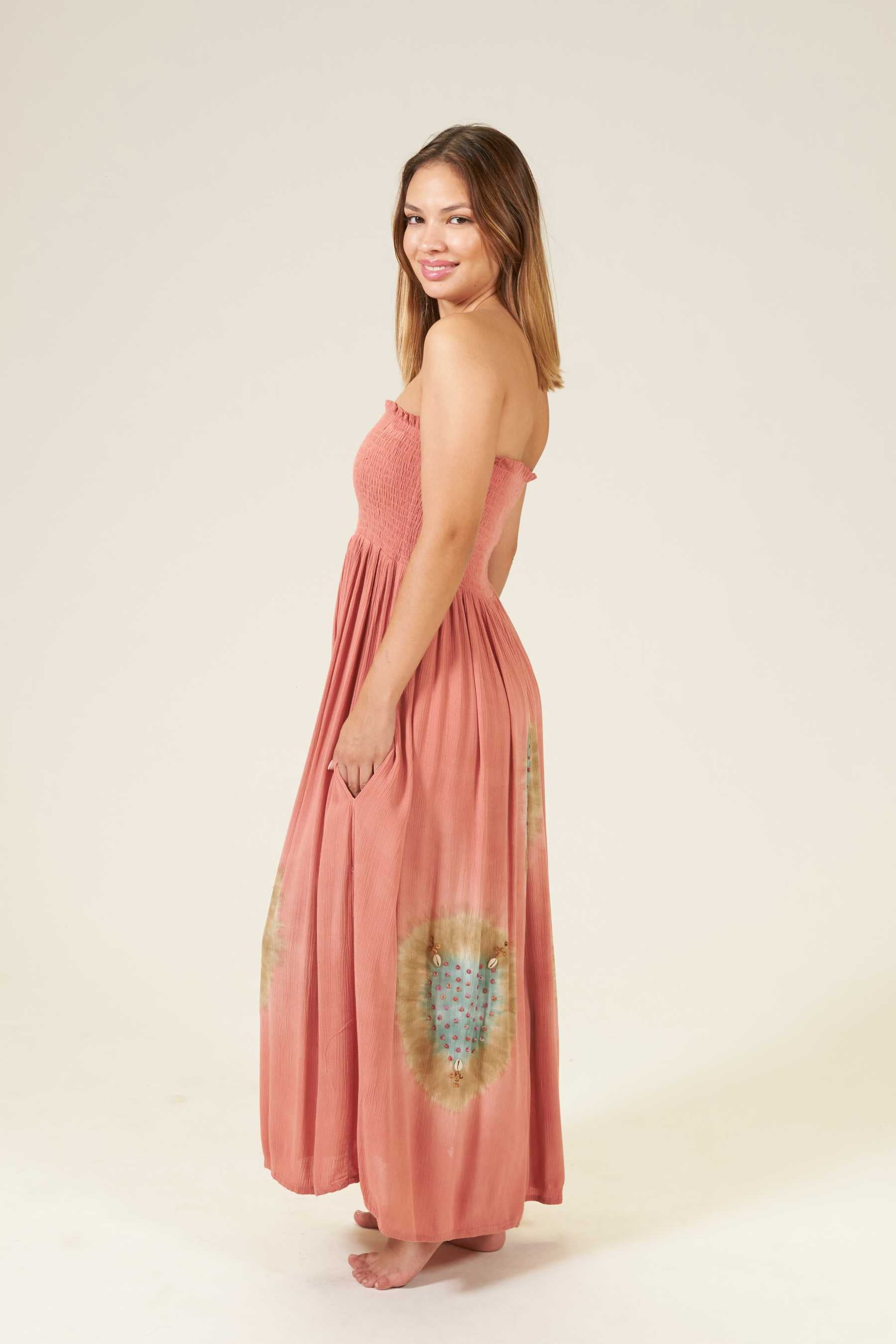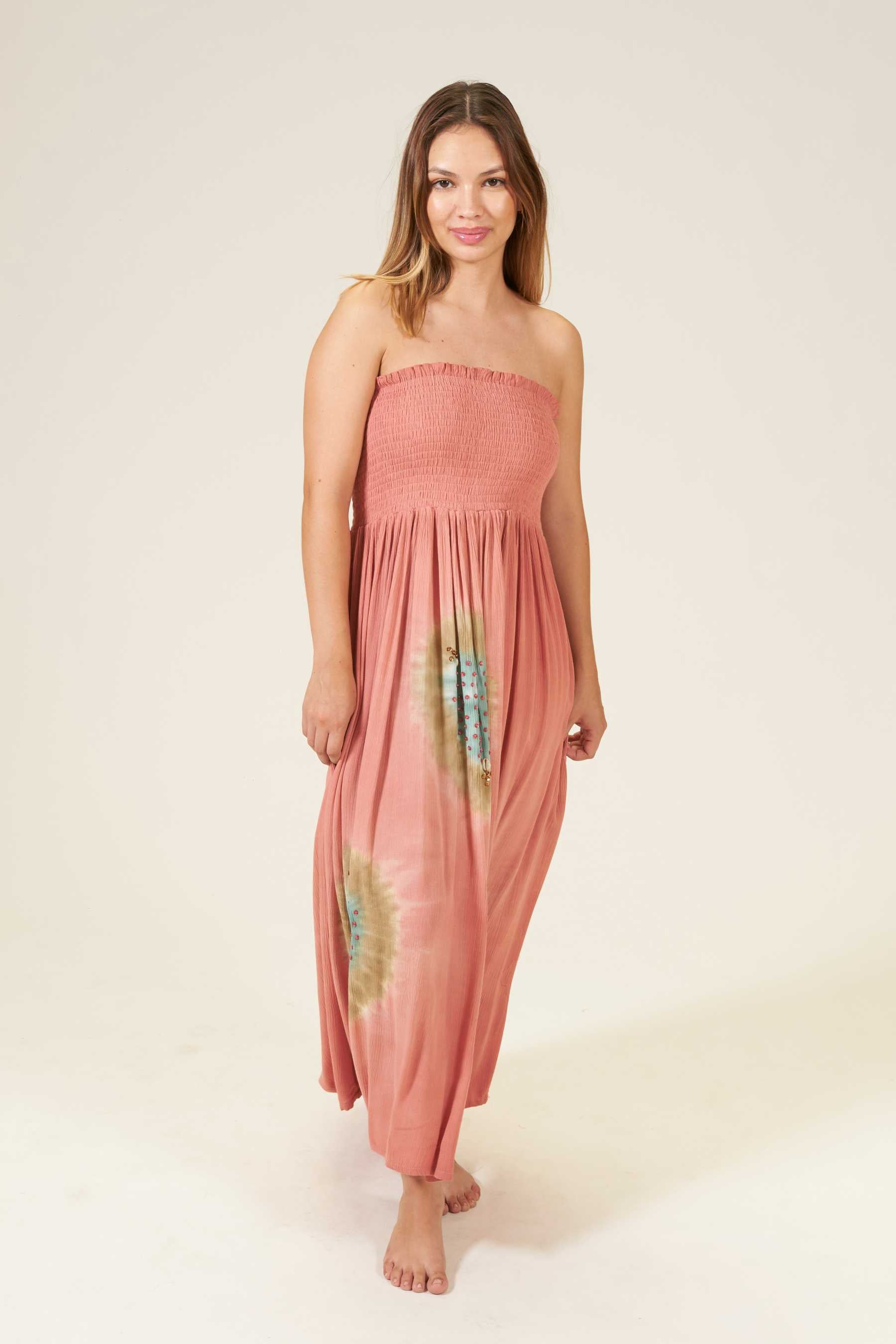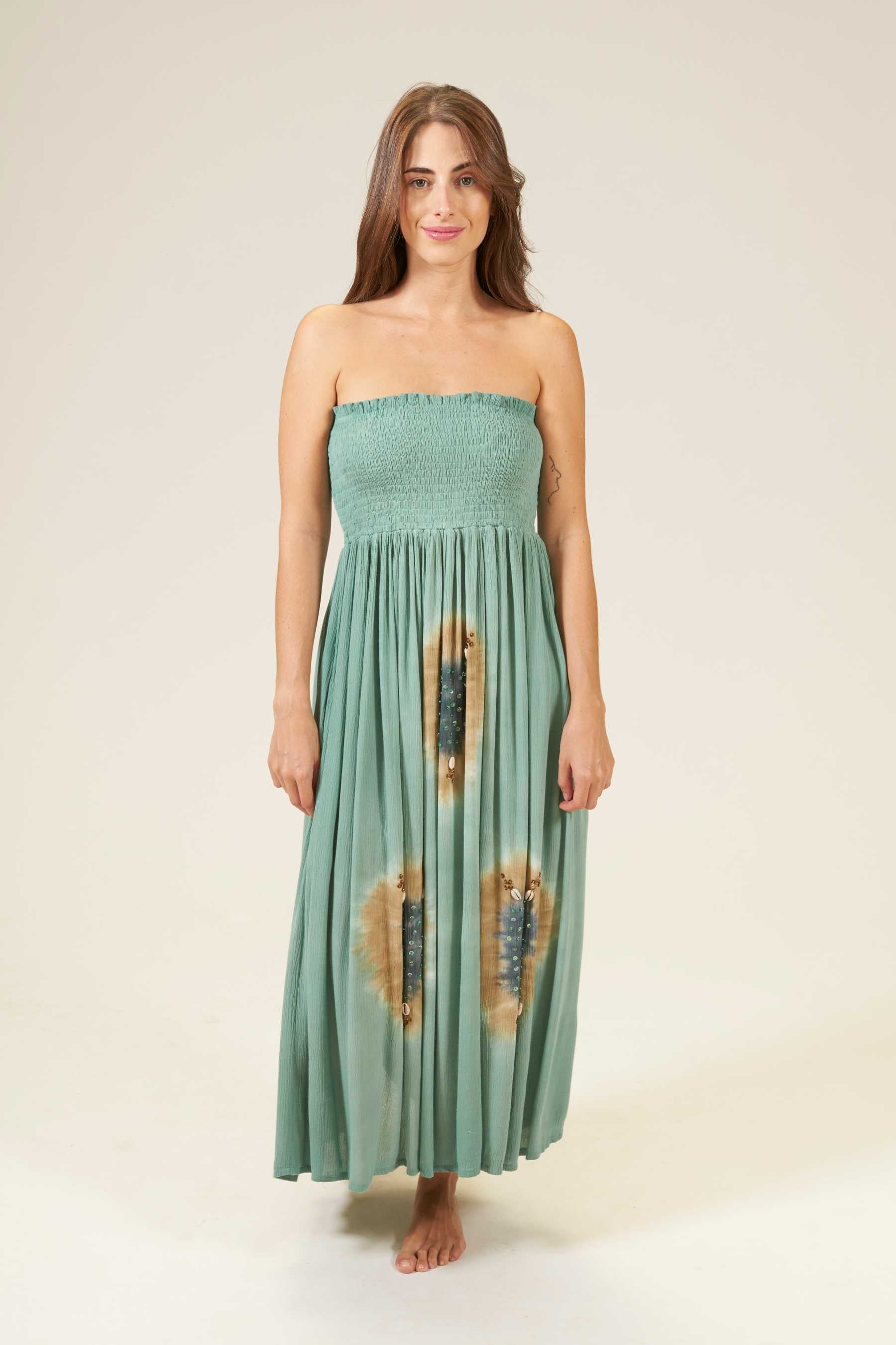 El vestido Luro es una pieza encantadora que se ajusta perfectamente a cualquier tipo de cuerpo. Con un fruncido tipo nido de abeja que realza el pecho y estiliza la figura. Su escote recto en palabra de honor añade un toque de elegancia, ideal para cenas o paseos veraniegos. Prueba combinándolo con unas sandalias romanas para un look completo. Teñido a mano con nuestra exclusiva técnica de tie dye, utilizando pigmentos naturales y métodos tradicionales.