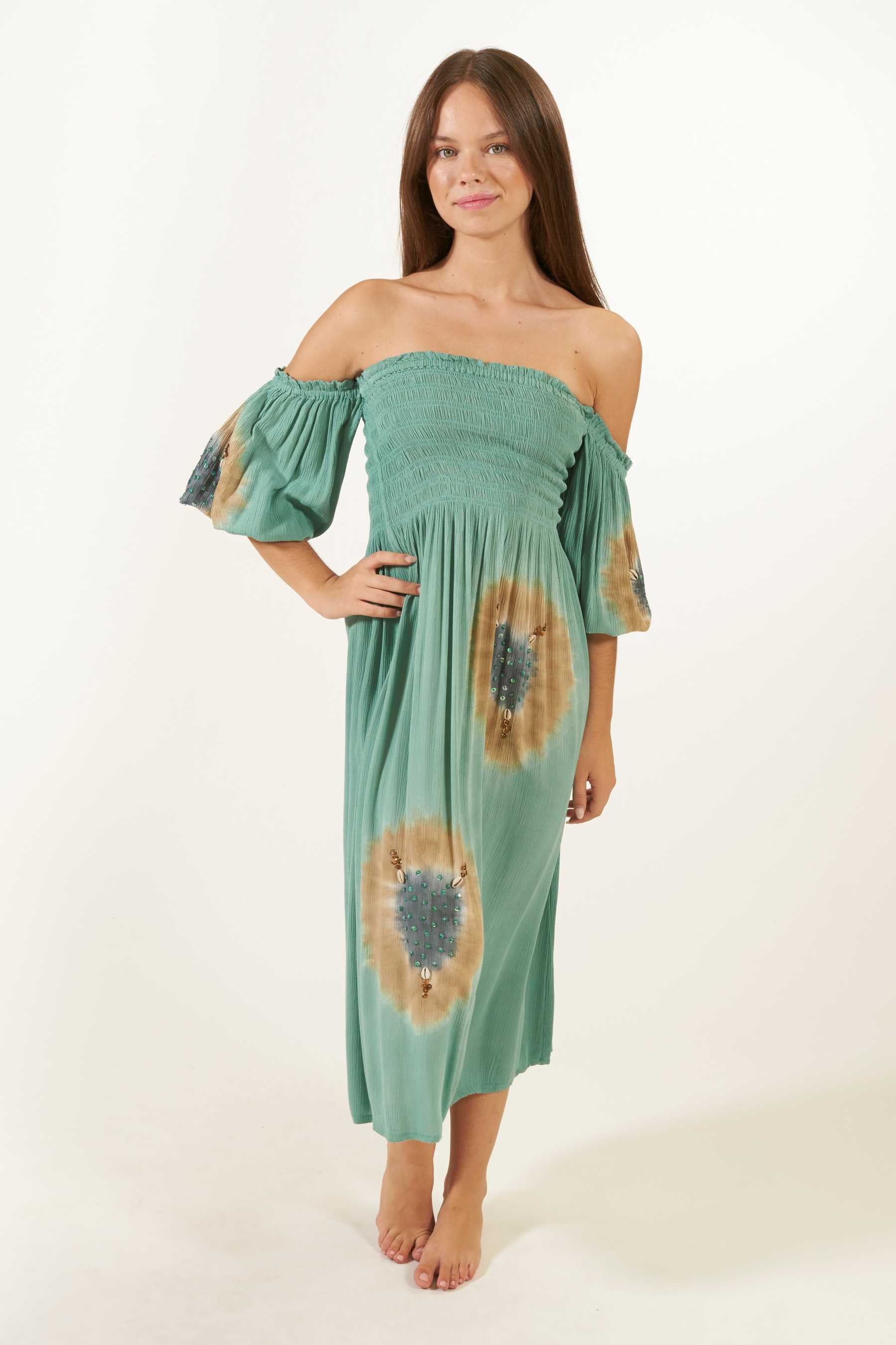 El vestido Praslin es una pieza encantadora que se ajusta perfectamente a cualquier tipo de cuerpo. Con un fruncido tipo nido de abeja que realza el pecho y estiliza la figura. Su escote recto en palabra de honor añade un toque de elegancia y las mangas abullonadas con elástico en la parte superior dejan los hombros descubiertos y aportan un toque romántico a la prenda. Prueba combinándolo con unas sandalias planas para un look completo. Teñido a mano con nuestra exclusiva técnica de tie dye, utilizando pigmentos naturales y métodos tradicionales.
