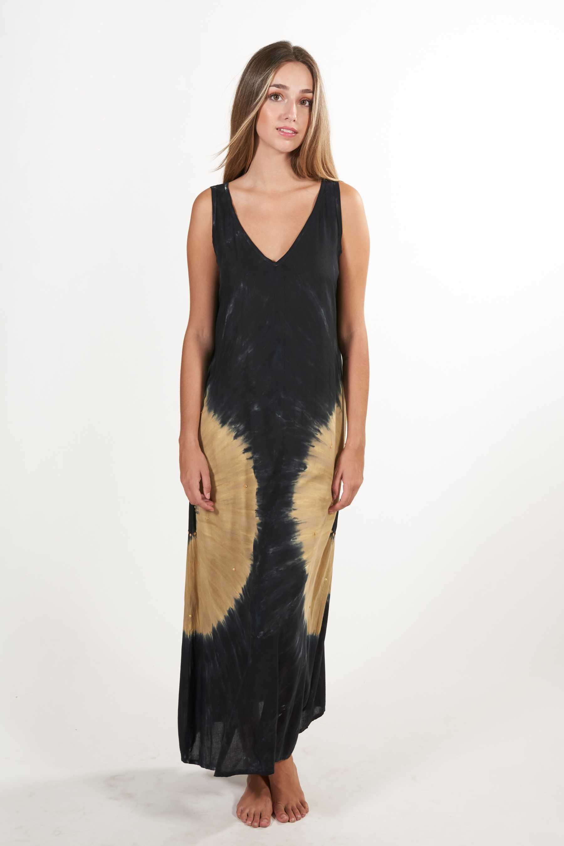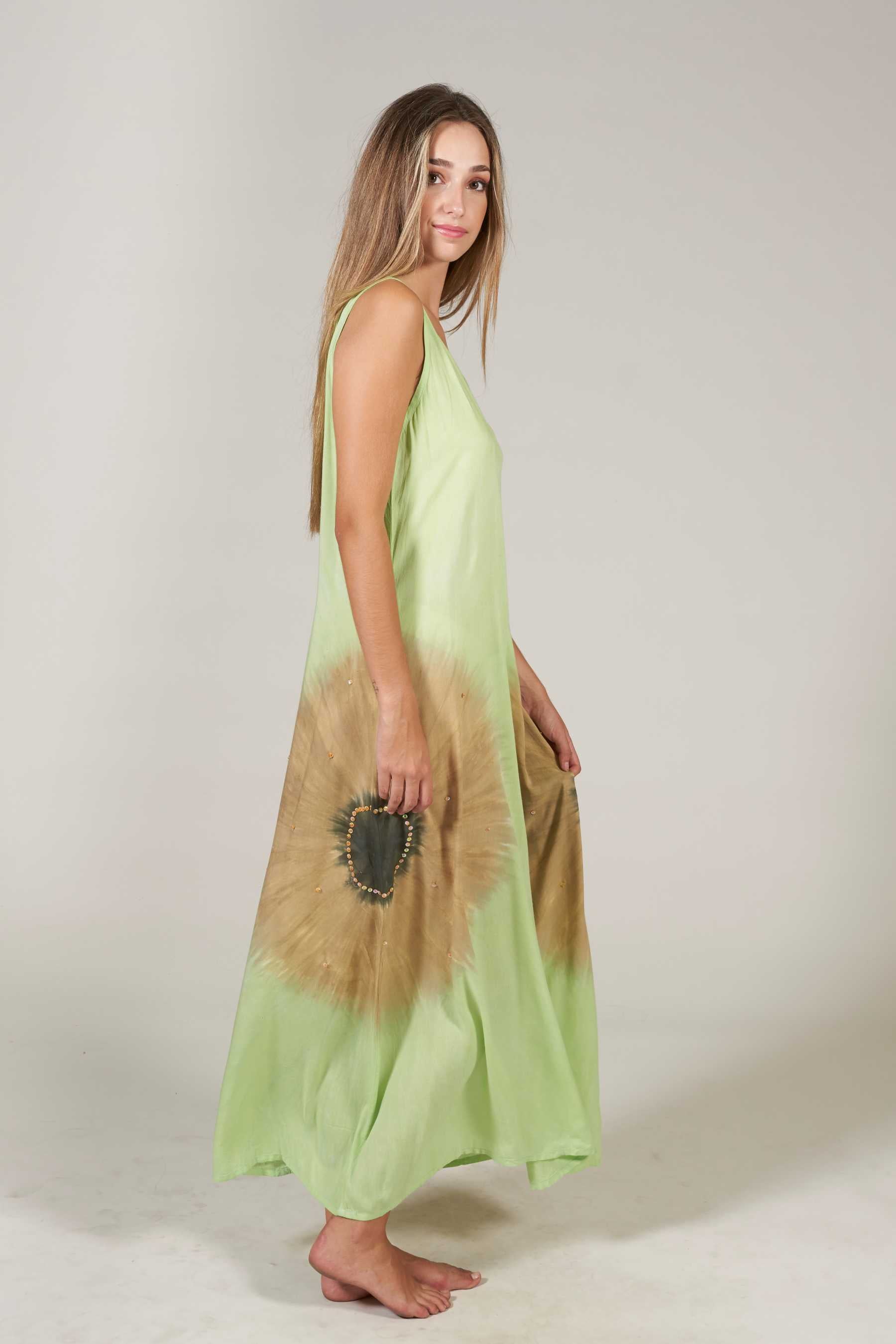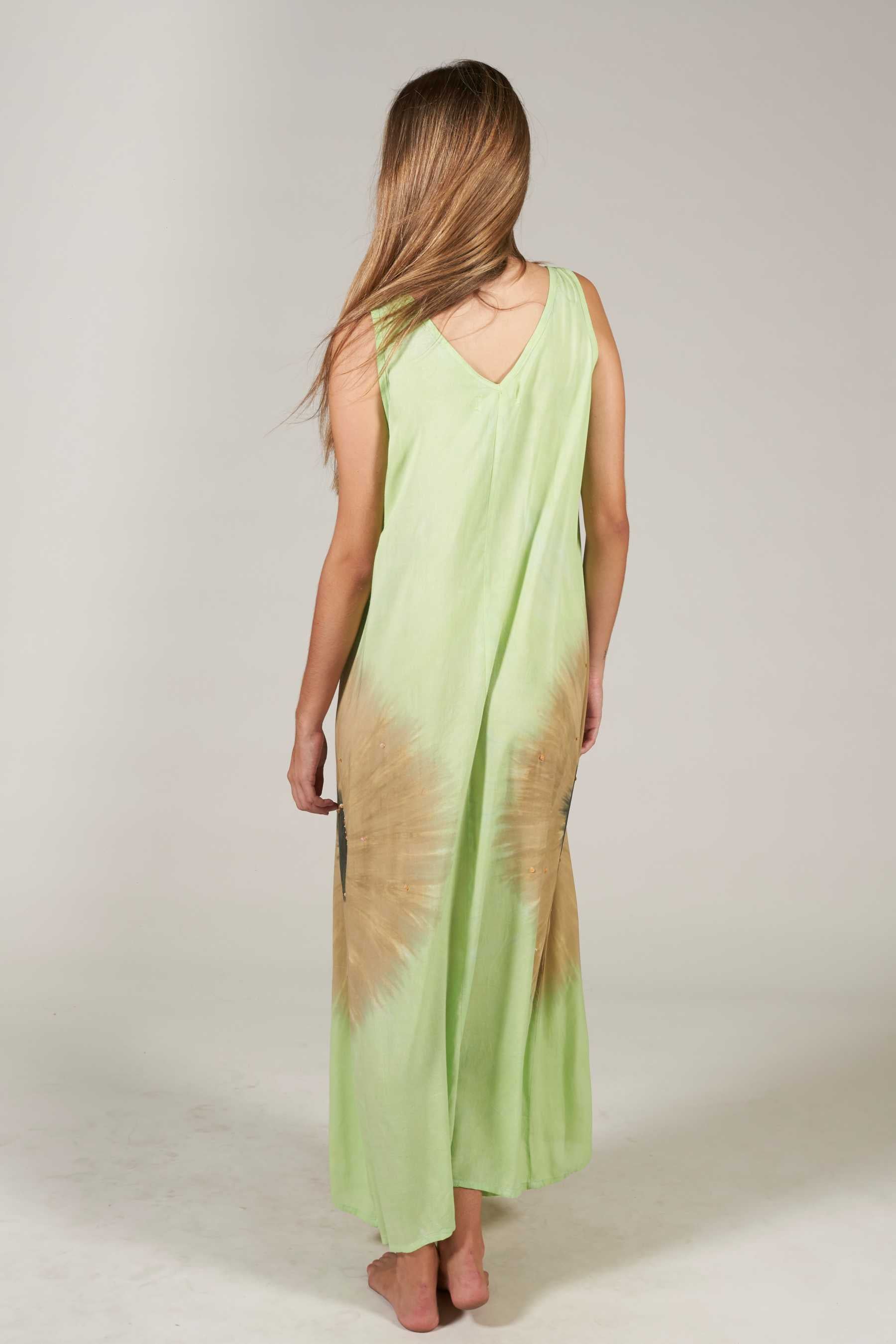 El vestido Soema es un imprescindible para tu armario este verano. Con un escote en pico favorecedor y tirantes anchos que garantizan comodidad en cualquier ocasión, este vestido presenta un corte recto que se ajusta a diversas siluetas. Destacan sus dos aberturas laterales que añaden un toque de sensualidad al dejar entrever las piernas al caminar. El diseño único de tie dye, creado con técnicas artesanales y pigmentos naturales, completa su estilo veraniego y vibrante.