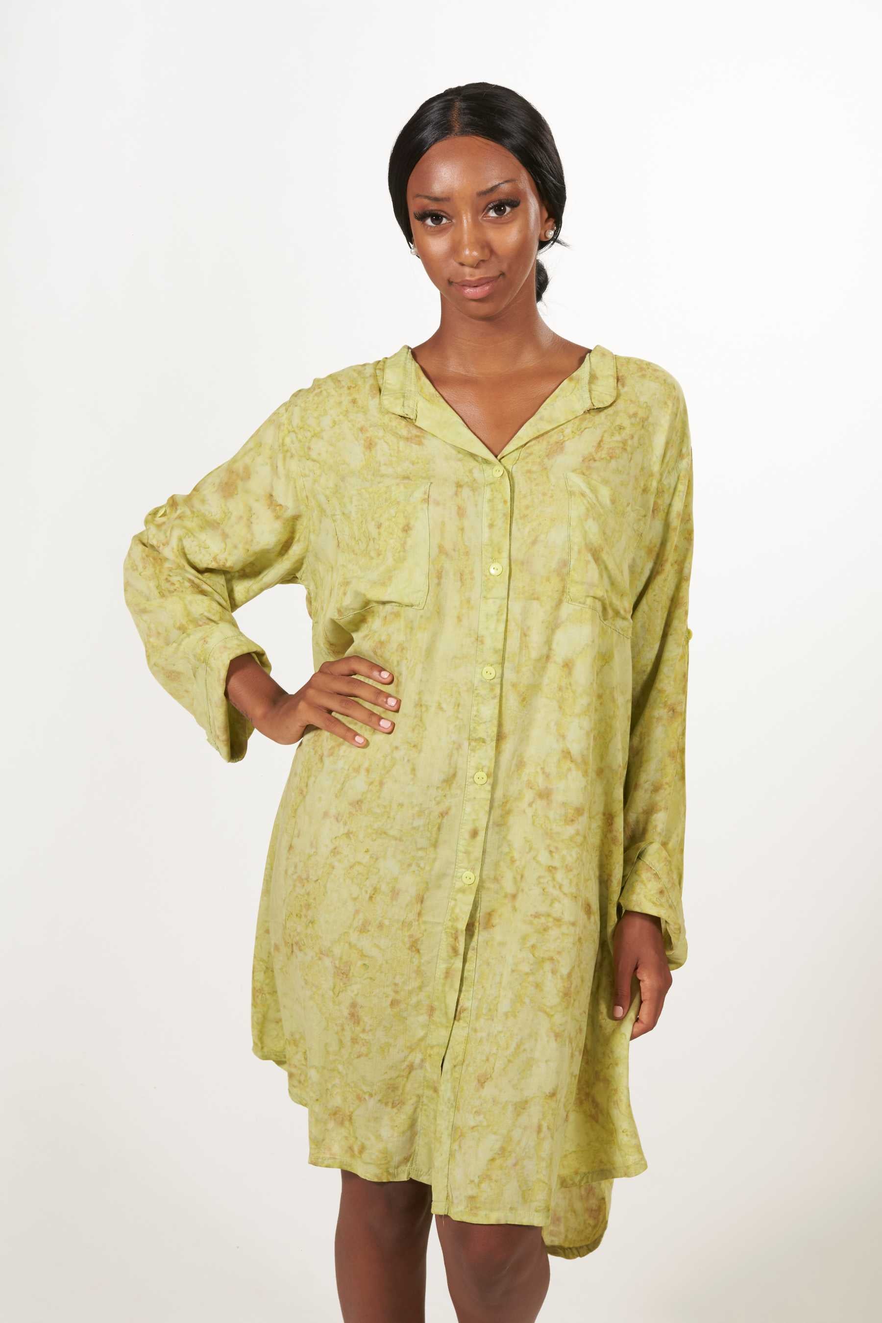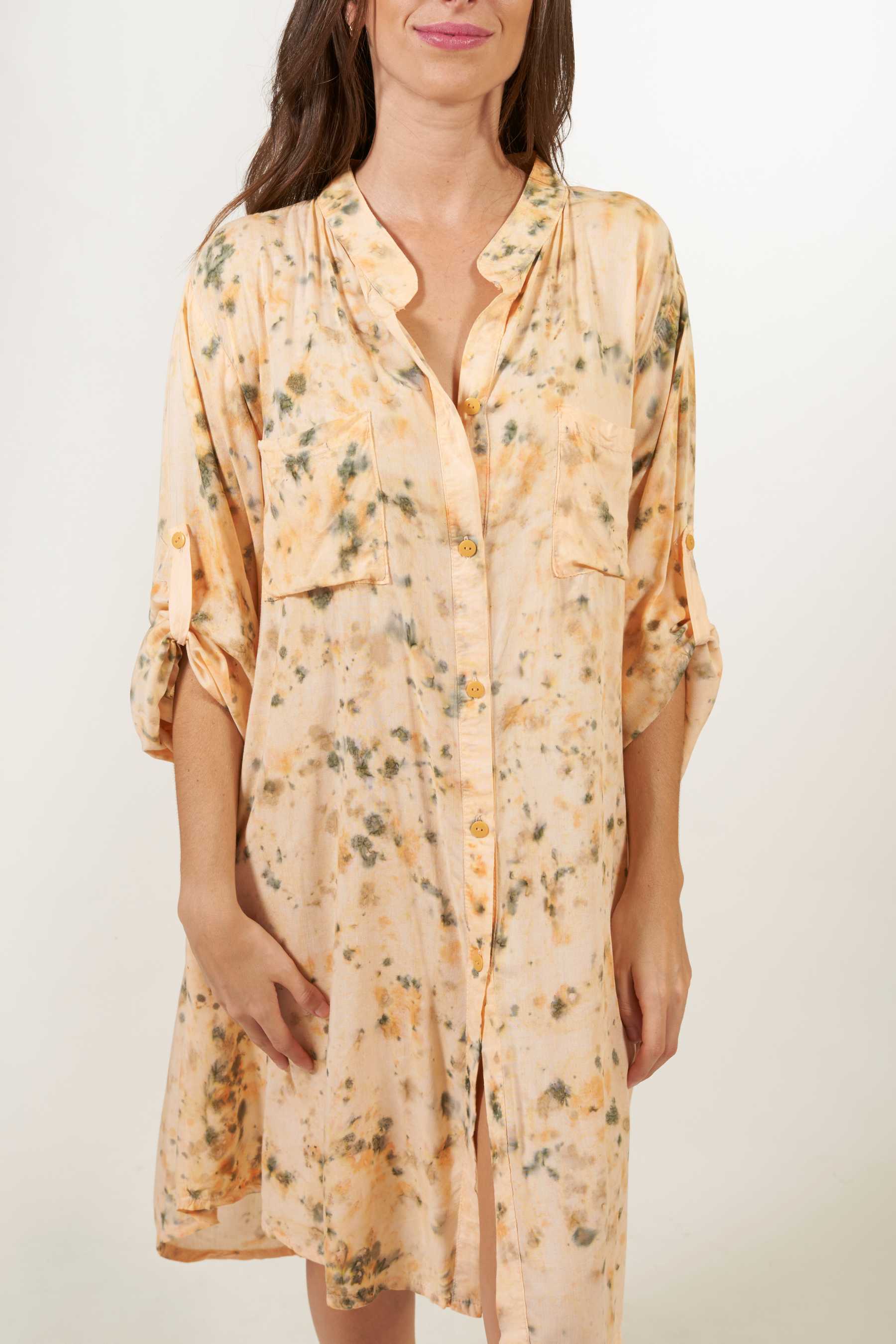 El vestido corto Durdle es camisero de corte holgado. Tiene manga larga con trabillas para ajustarla en altura a tu gusto. Cierre con botones centrales.