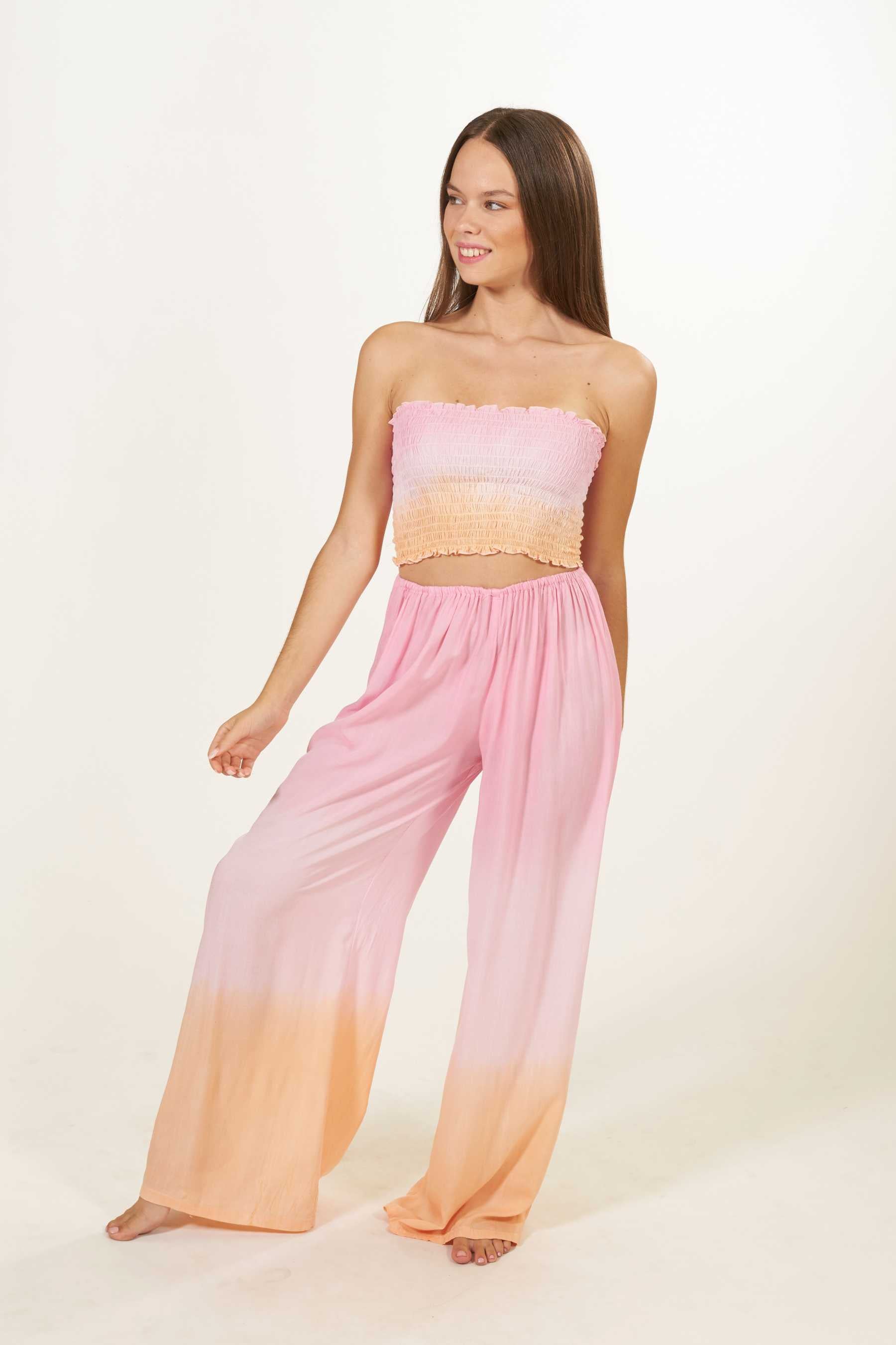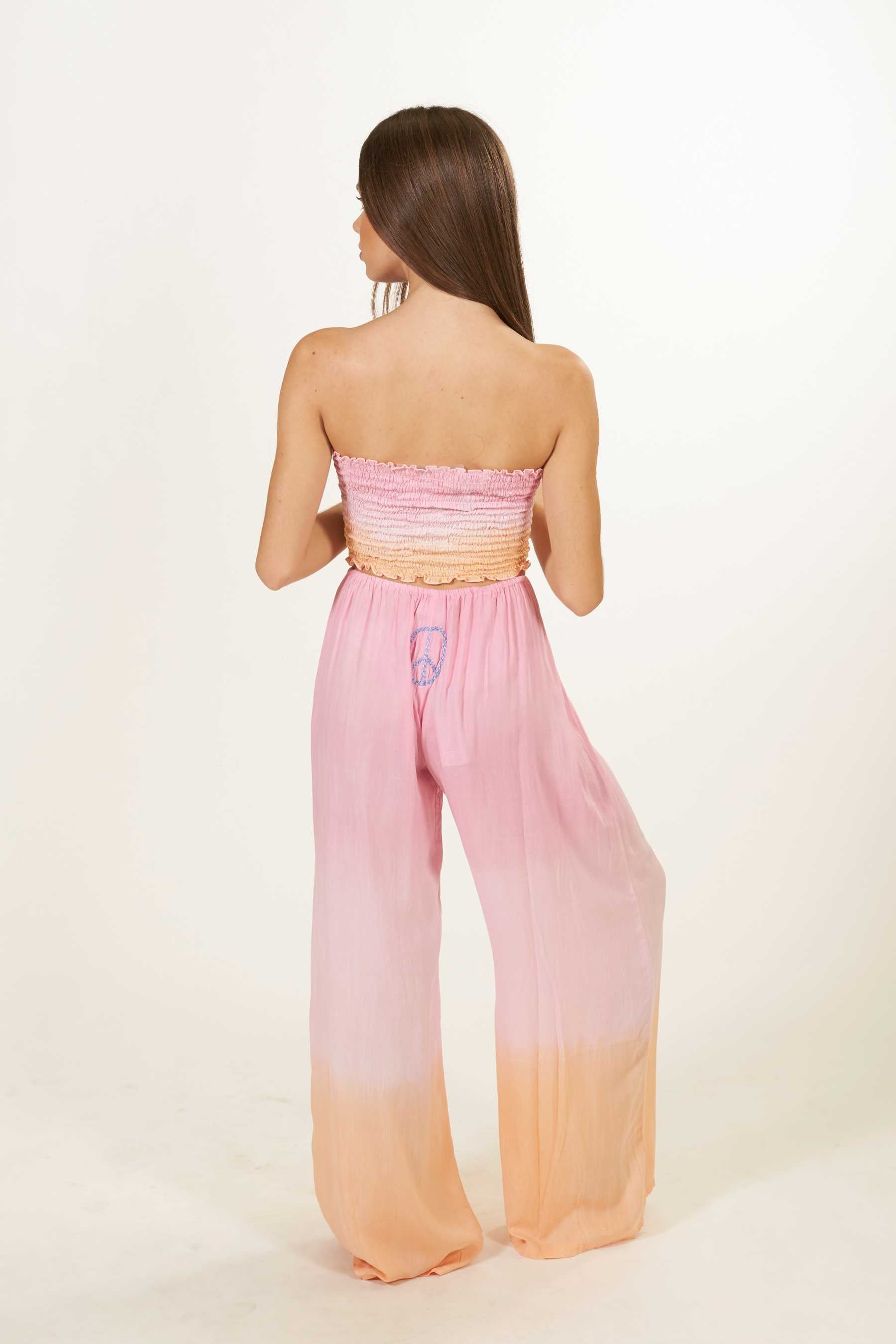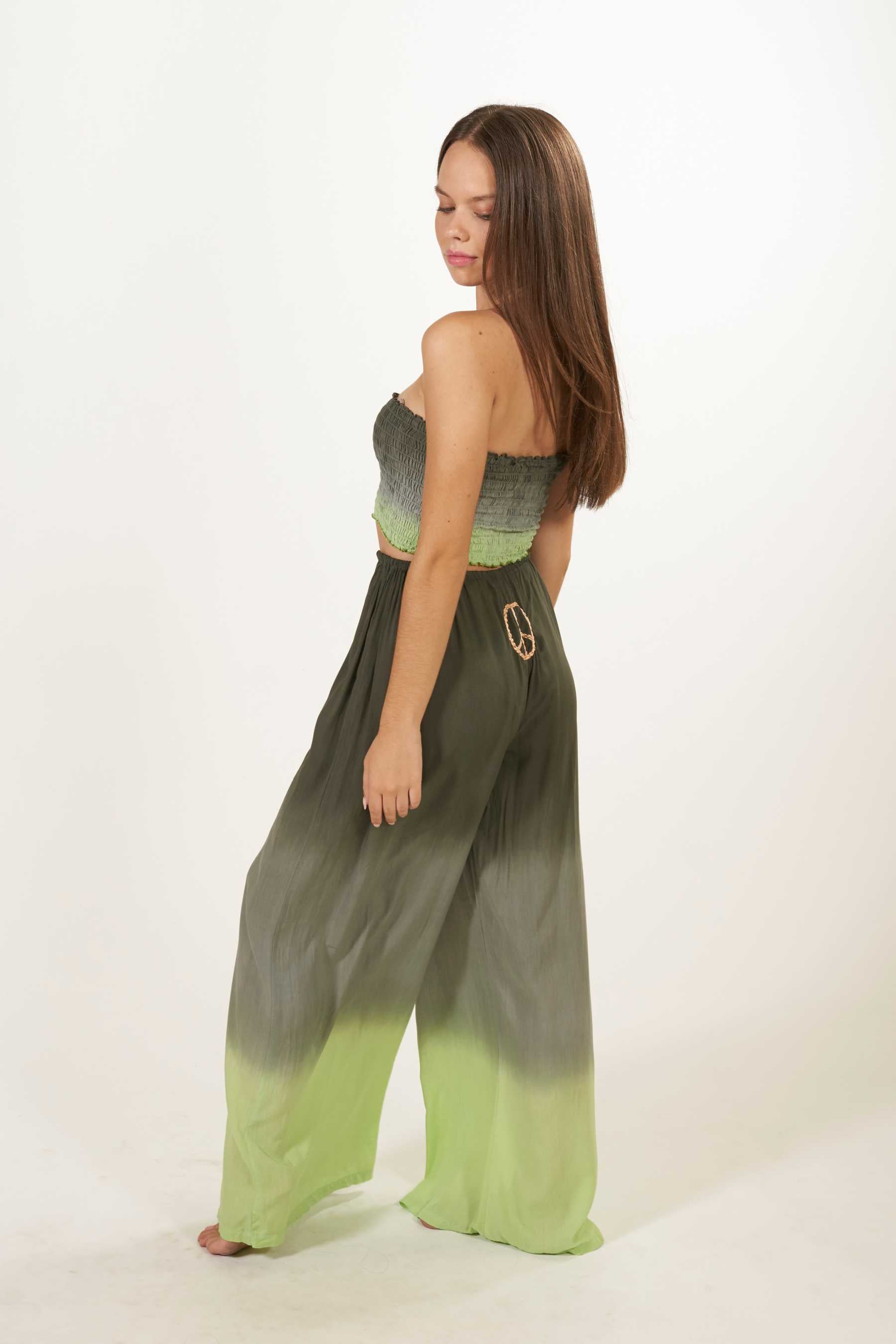 El pantalón Fryes presenta un estilo tipo pijama, fresco y cómodo para llevar en los días calurosos. Con una longitud que llega hasta los pies, este pantalón se ajusta con una cintura elástica, permitiéndote llevarlo a la altura de la cintura o a la cadera, según tu preferencia. Combínalo con uno de nuestros tops para un look completo o úsalo con una blusa blanca lisa para un estilo más formal y sobrio. El tejido tie dye, diseñado y elaborado a mano con técnicas tradicionales y pigmentos naturales, le agrega un toque único.