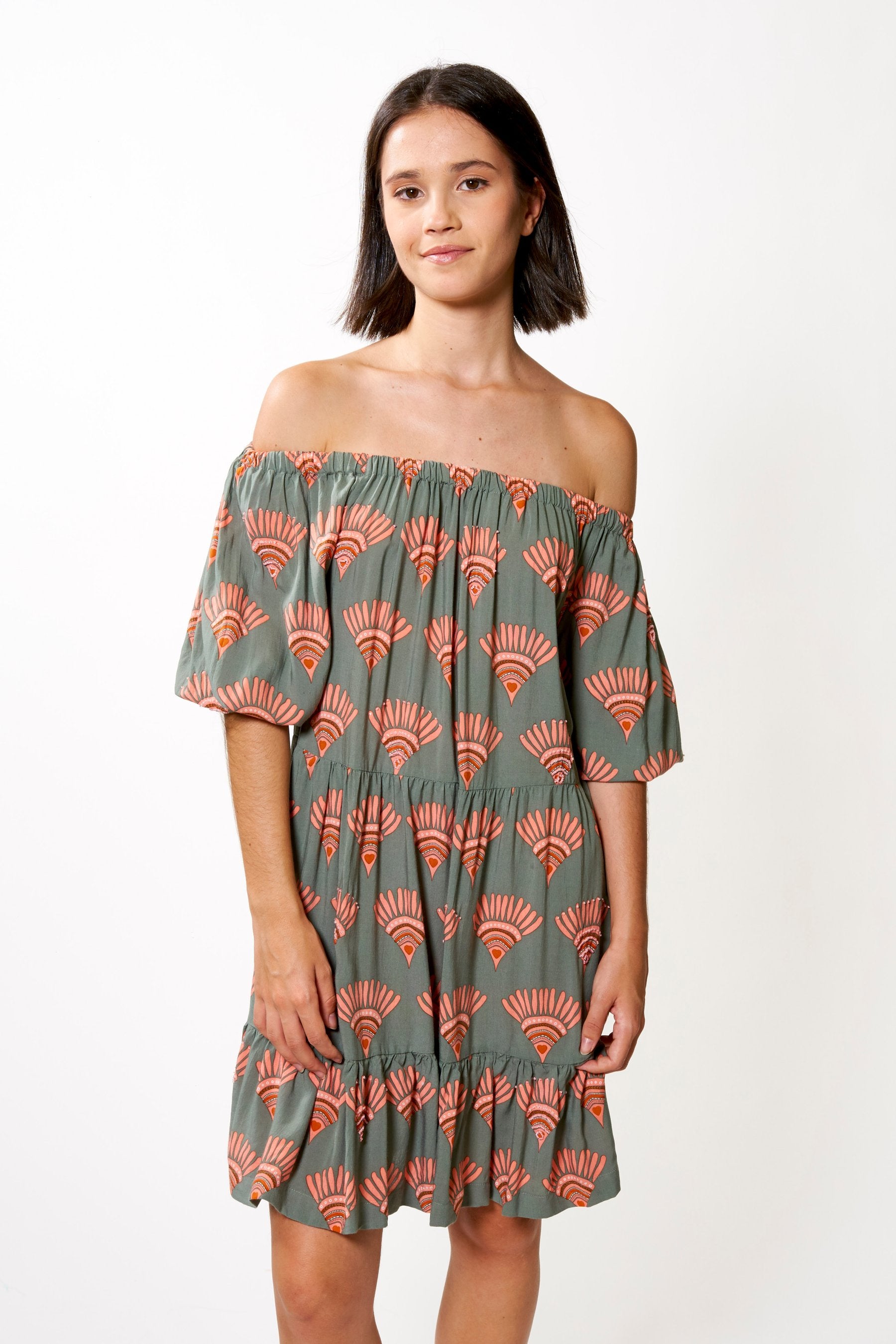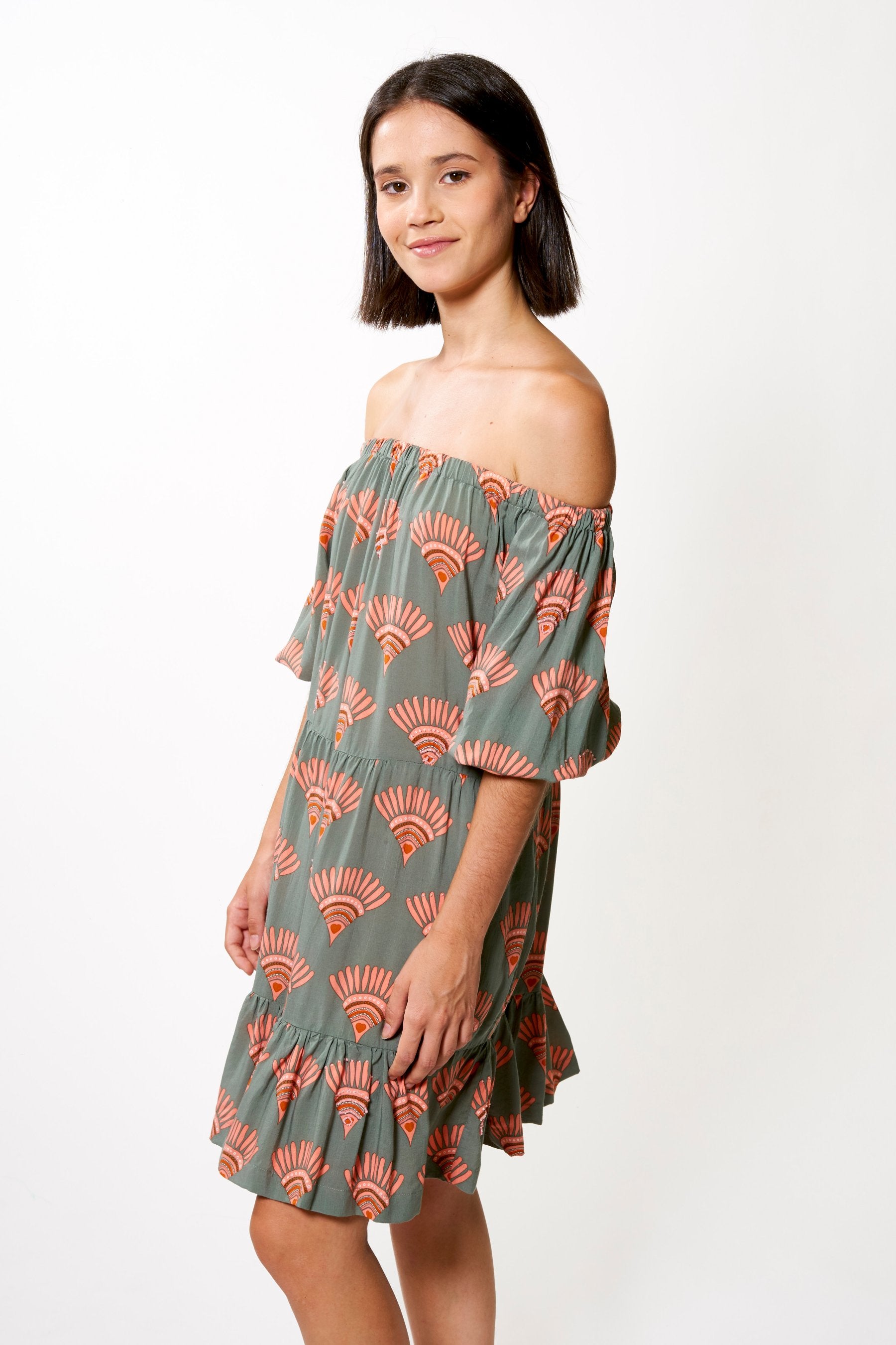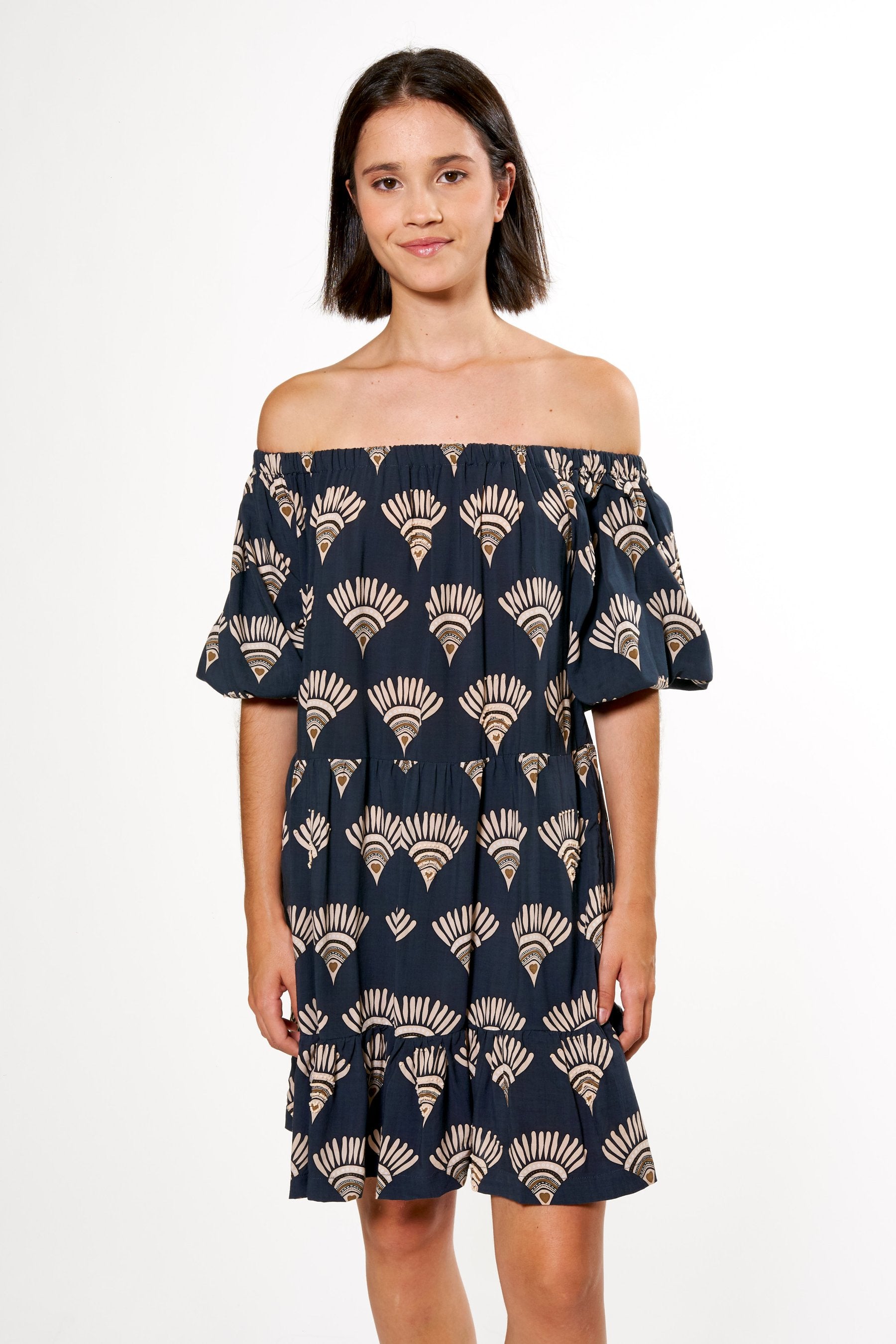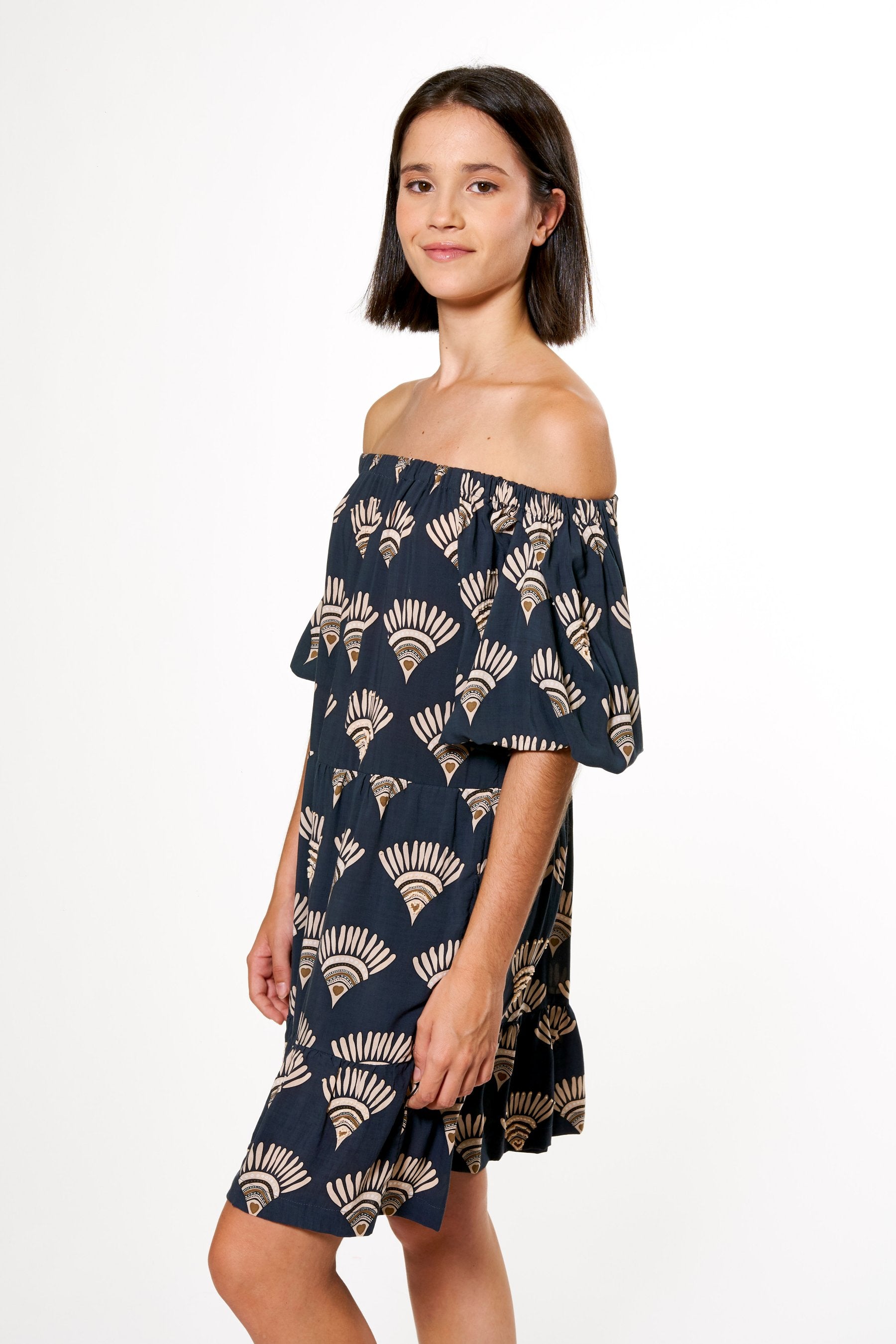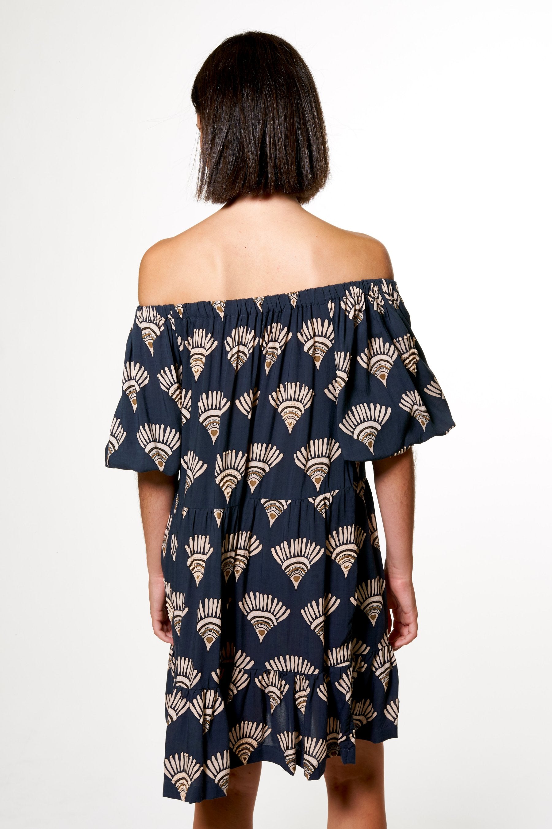 El Short Dress Bondi es una prenda esencial para el verano, con un diseño fluido y una caída impecable. Su estilo relajado y su tejido ligero lo convierten en el vestido perfecto para cualquier ocasión, desde un paseo por la playa hasta una cena informal. Disponible en tonos sofisticados inspirados en un verano elegante pero relajado. Las formas del estampado están decoradas aleatoriamente con pequeñas cuentas que delinean su silueta en contraste, aportando un detalle artesanal que resalta la frescura y la elegancia natural de la prenda.
