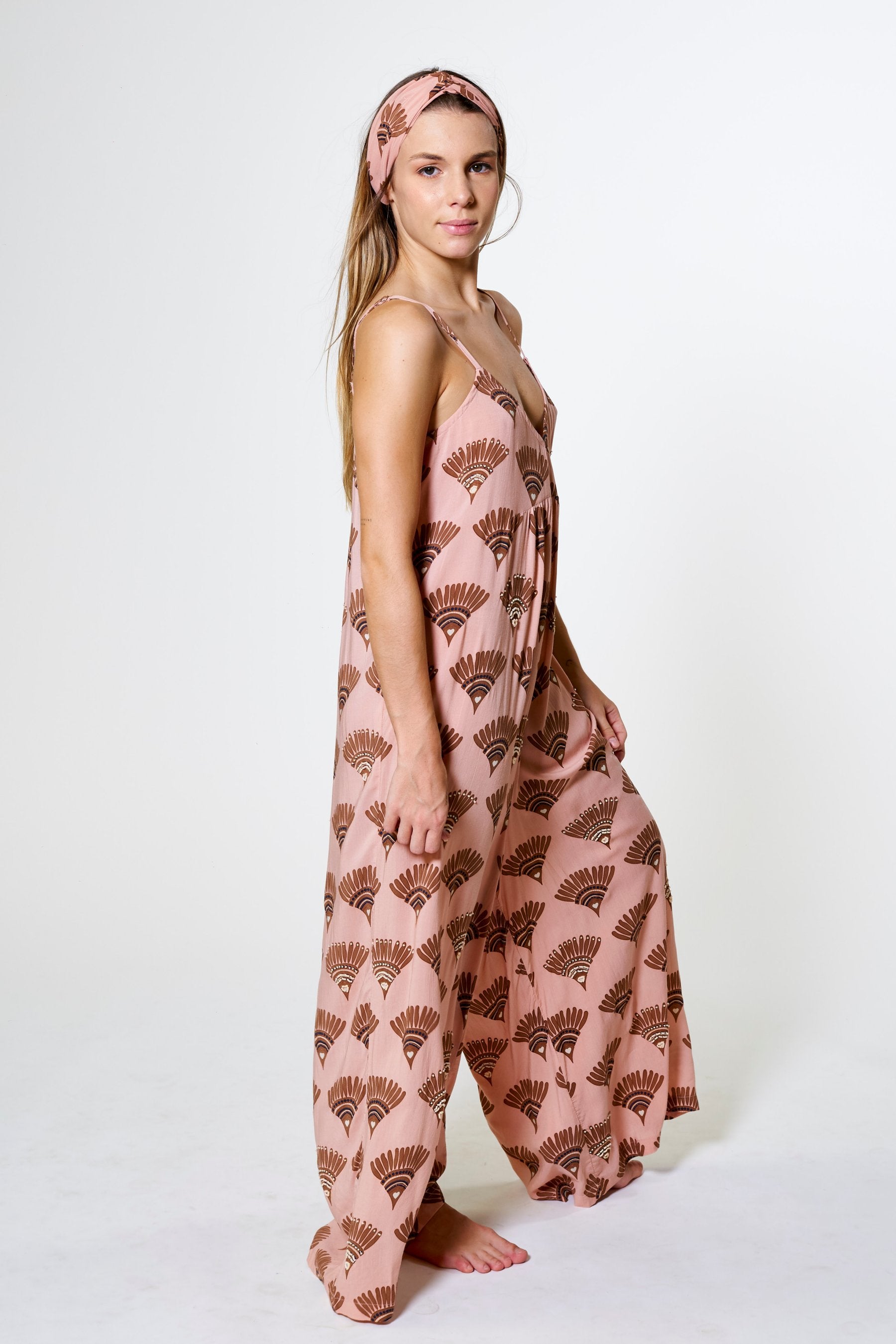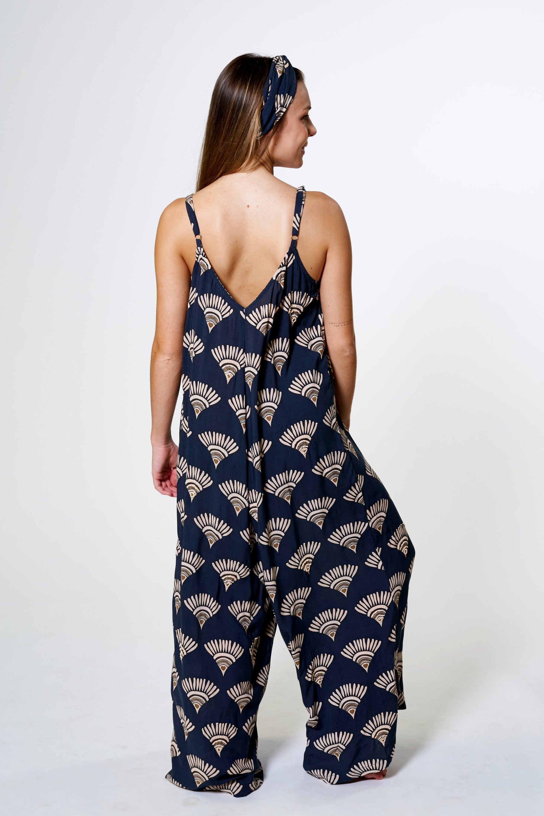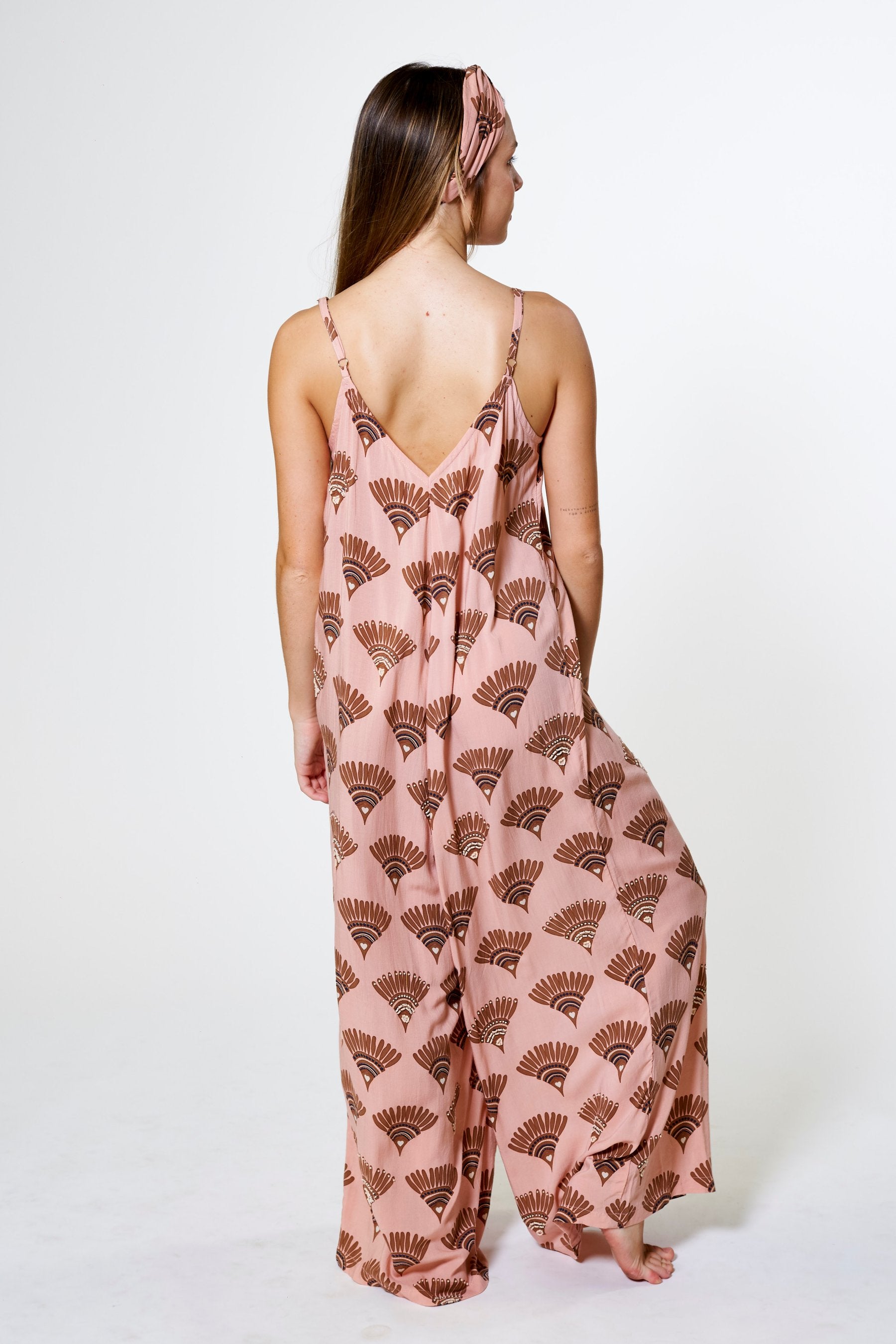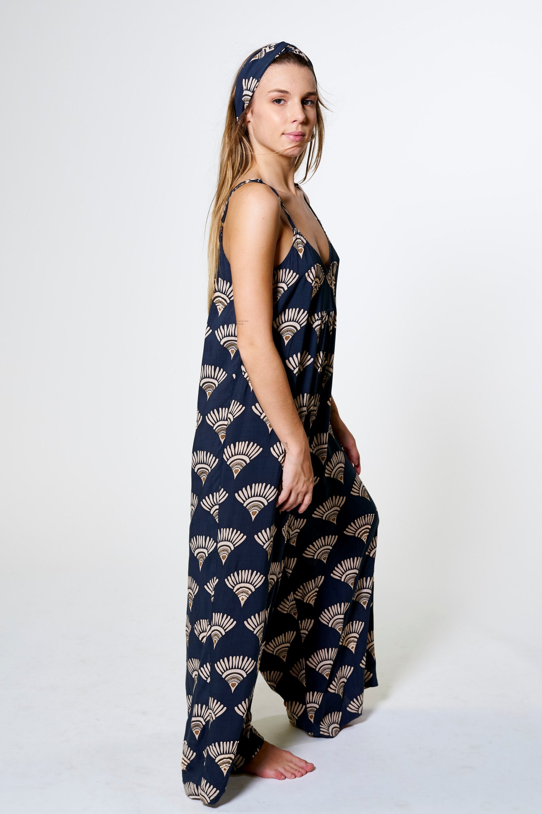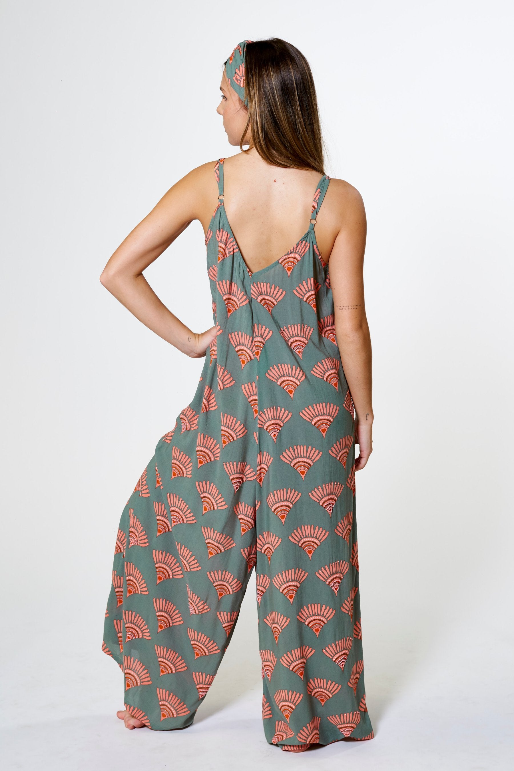 El Mono Kilpa es una pieza pensada para ofrecer máxima comodidad sin renunciar al estilo. Su diseño fluido, con escote en pico y pernera ancha, crea una silueta elegante y relajada a partes iguales. Confeccionado en tejido natural y teñido de forma artesanal, cada pieza refleja una belleza única e imperfecta que conecta con la filosofía slow de la colección. Disponible en los colores y estampados exclusivos de la colección: tonos neutros que evocan calma y versatilidad con las formas del estampado decoradas aleatoriamente con pequeñas cuentas que delinean su silueta en contraste, aportando un detalle artesanal que resalta la frescura y la elegancia natural de la prenda.