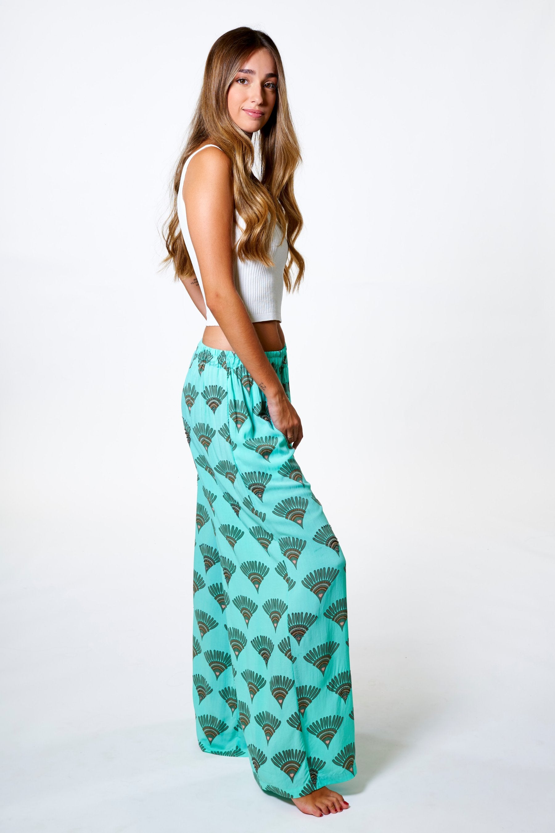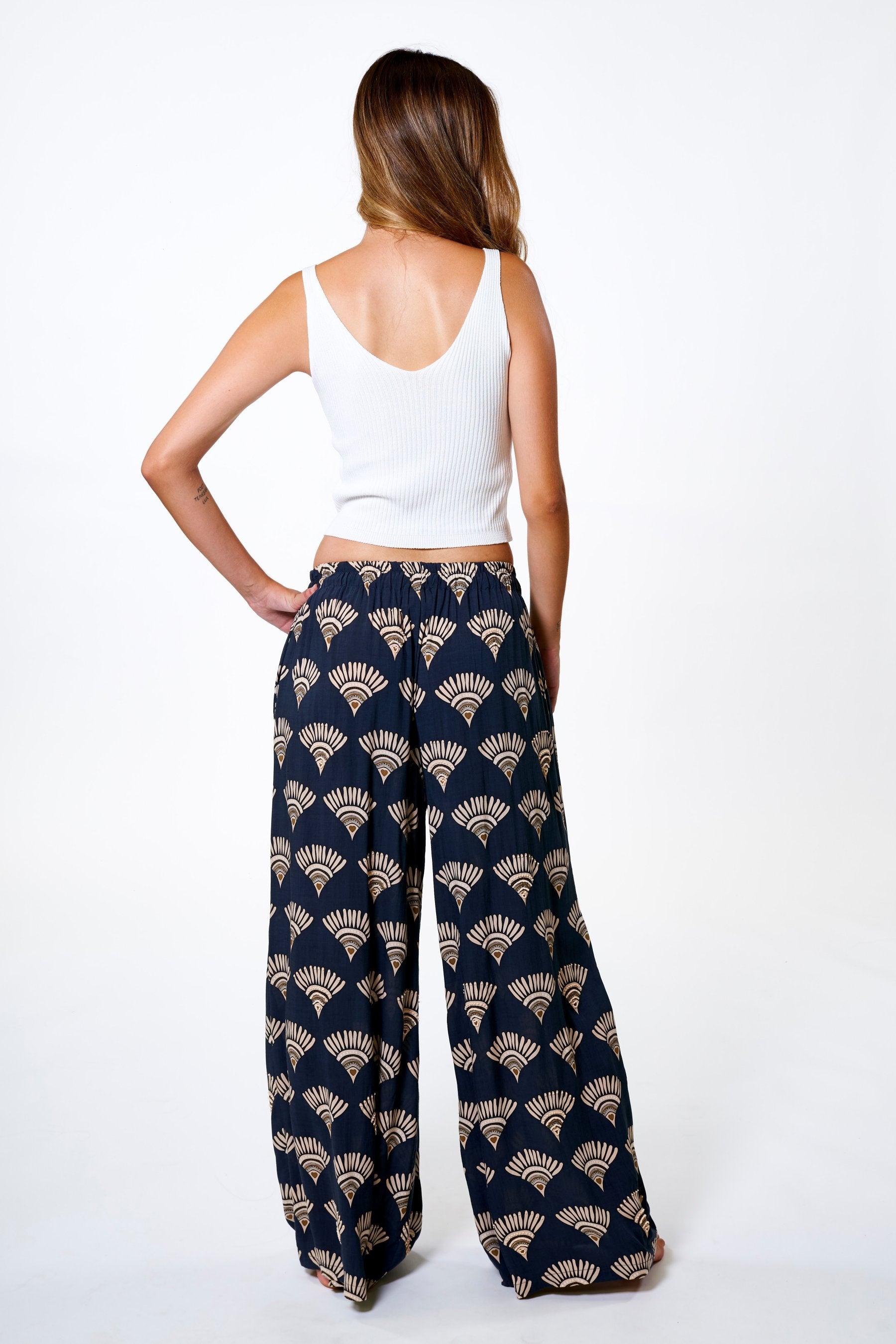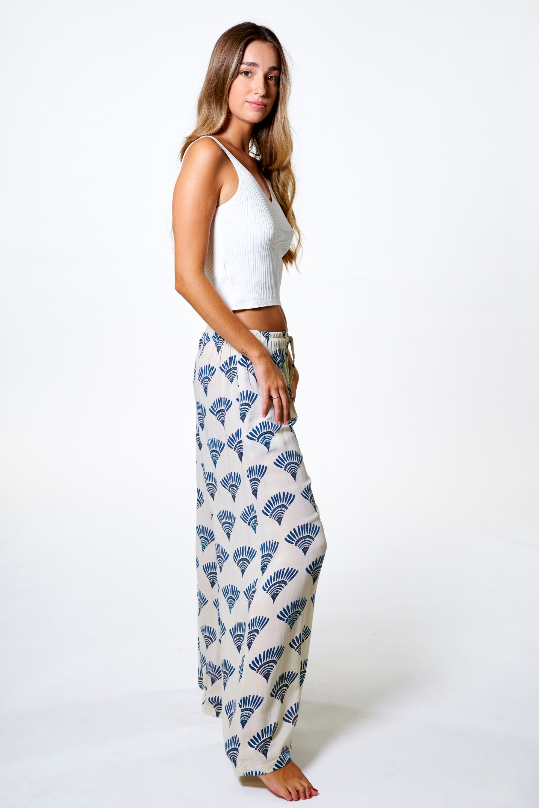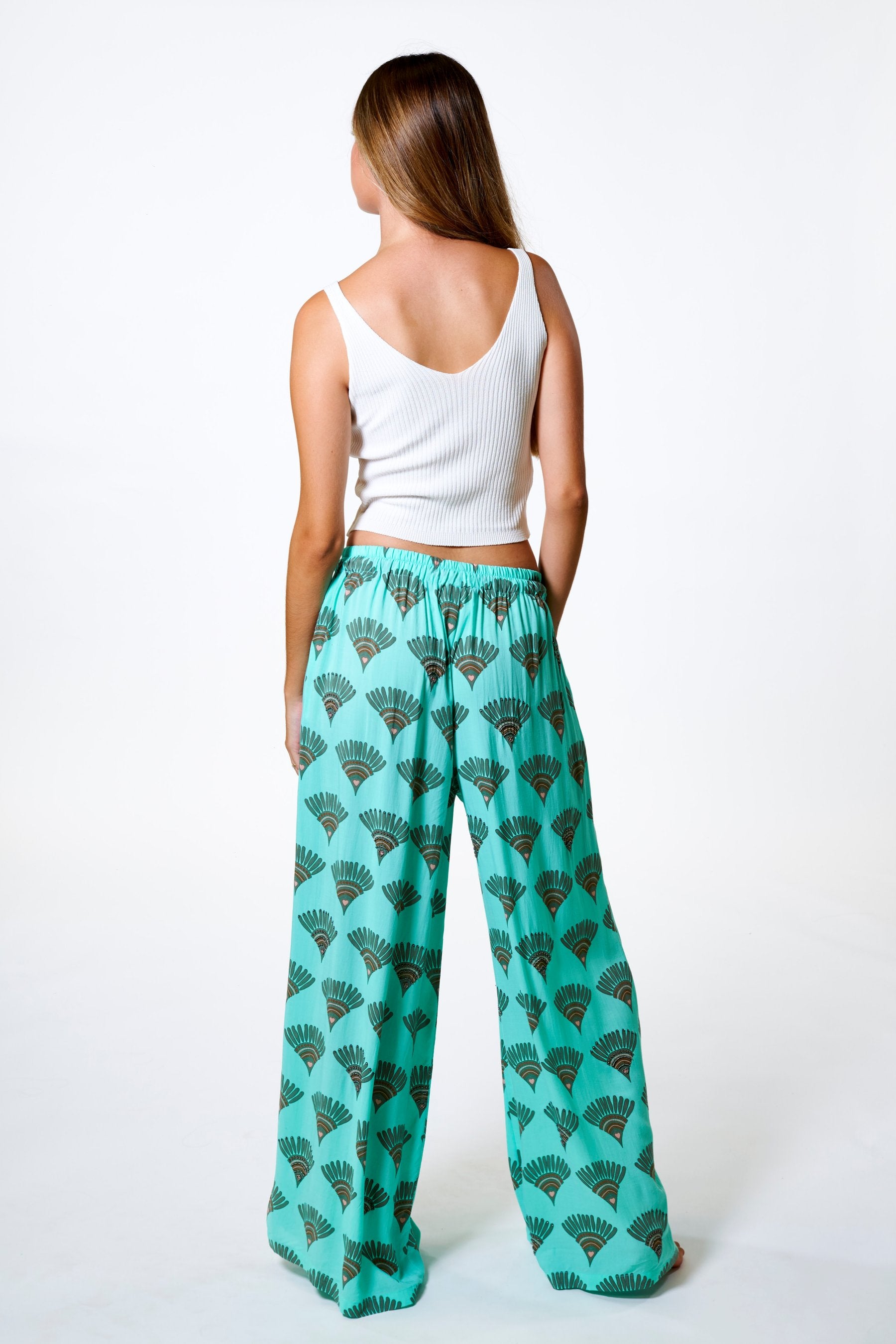 El Pantalón Manuk es una prenda versátil y atemporal que destaca por su diseño relajado, su tejido fluido y su tacto suave. De inspiración bohemia con un corte contemporáneo, está diseñado para favorecer la silueta sin ceñir, ofreciendo libertad total de movimiento. Pensado tanto para llevar en clave relajada como para elevar con accesorios, se convierte en un fondo de armario imprescindible. Disponible en los tonos y estampados exclusivos de la colección. Las formas del estampado están decoradas aleatoriamente con pequeñas cuentas que delinean su silueta en contraste, aportando un detalle artesanal que resalta la frescura y la elegancia natural de la prenda.