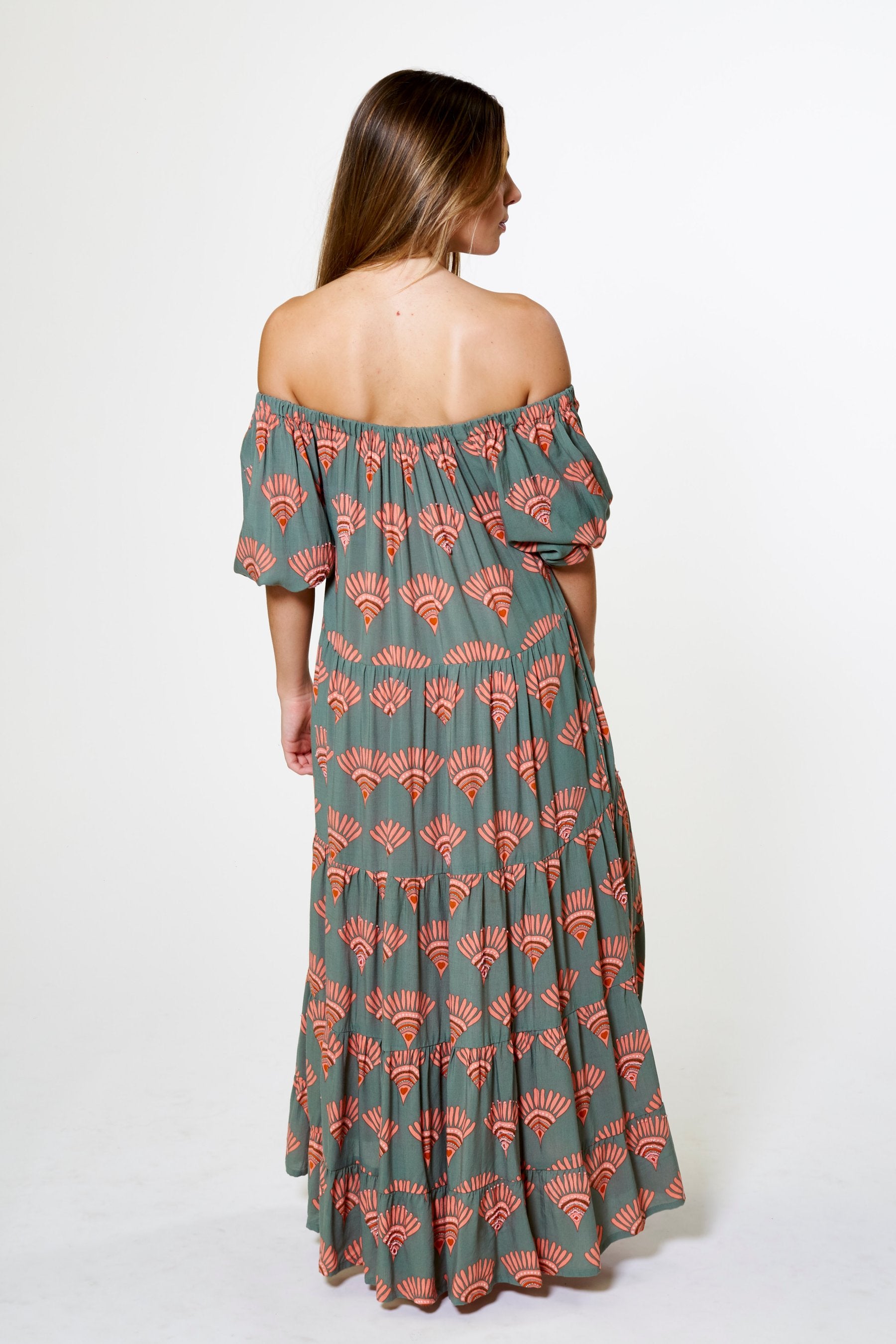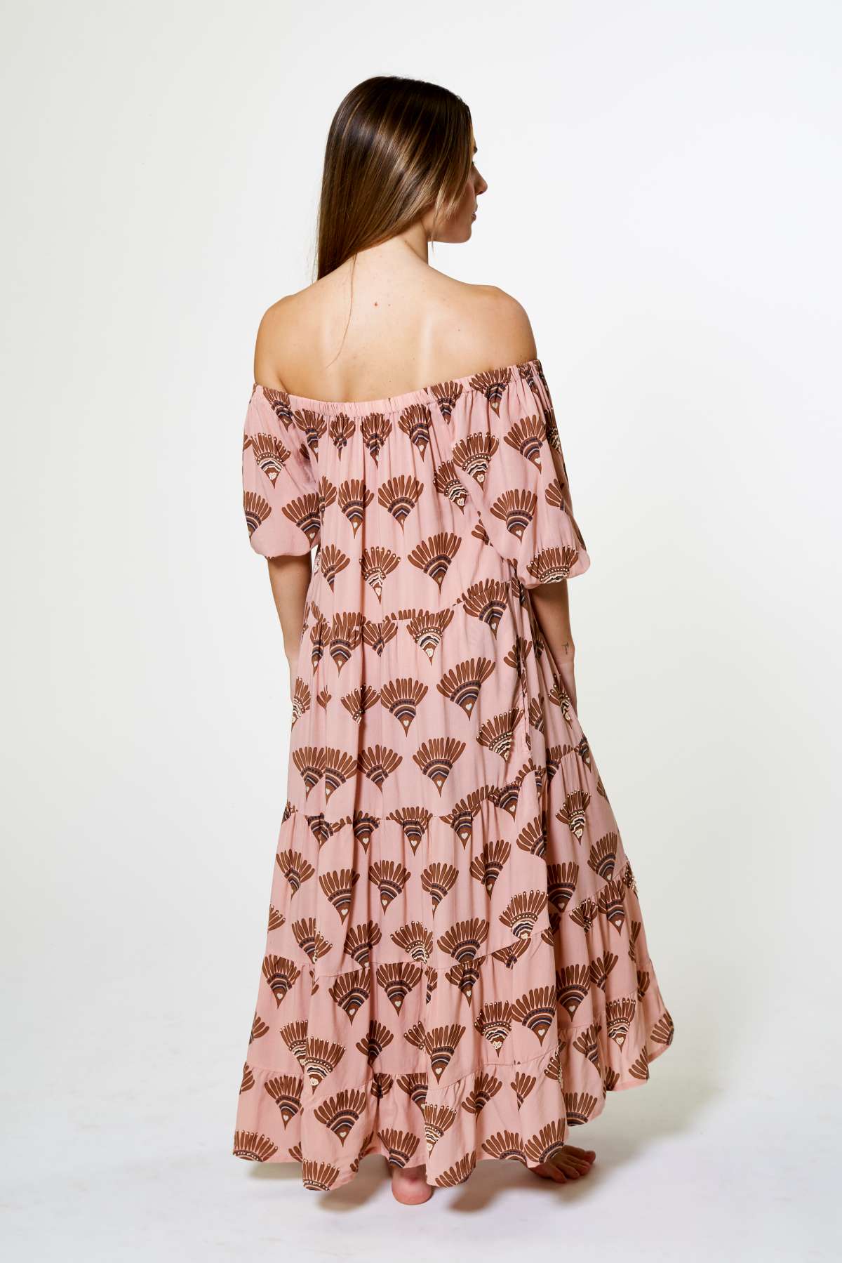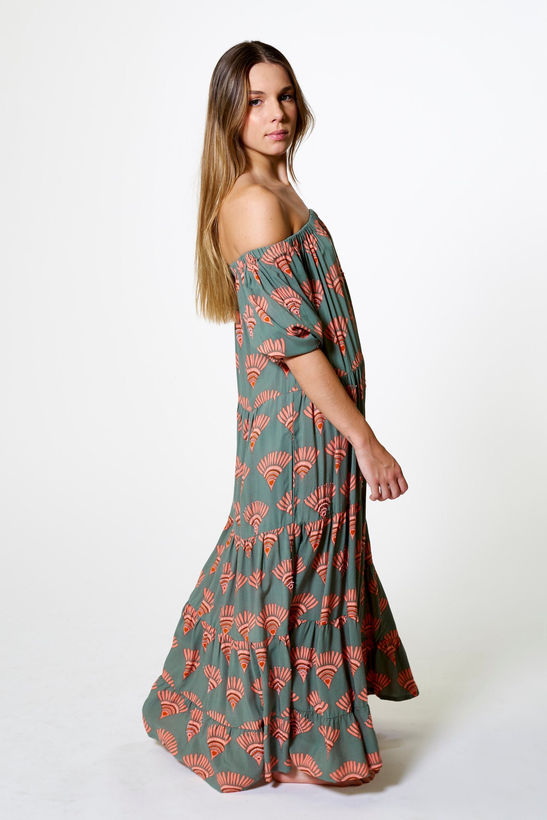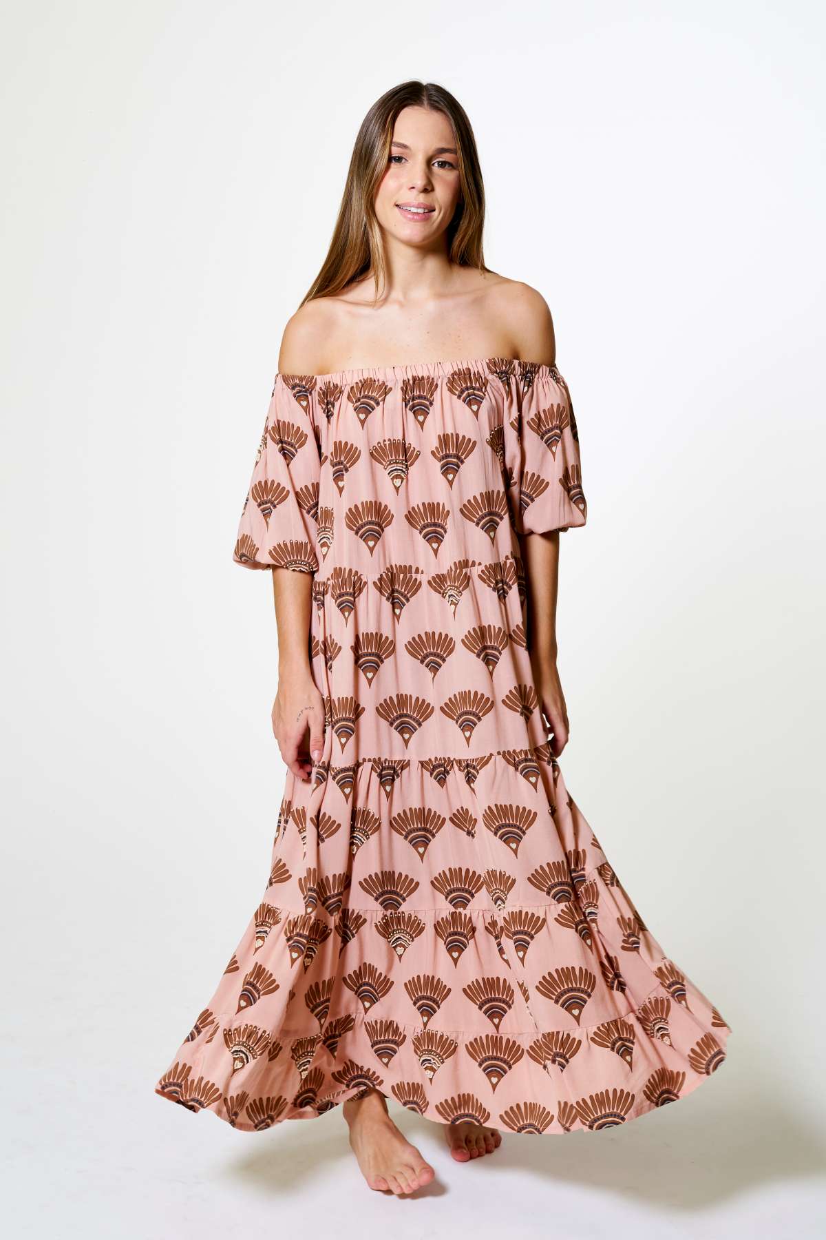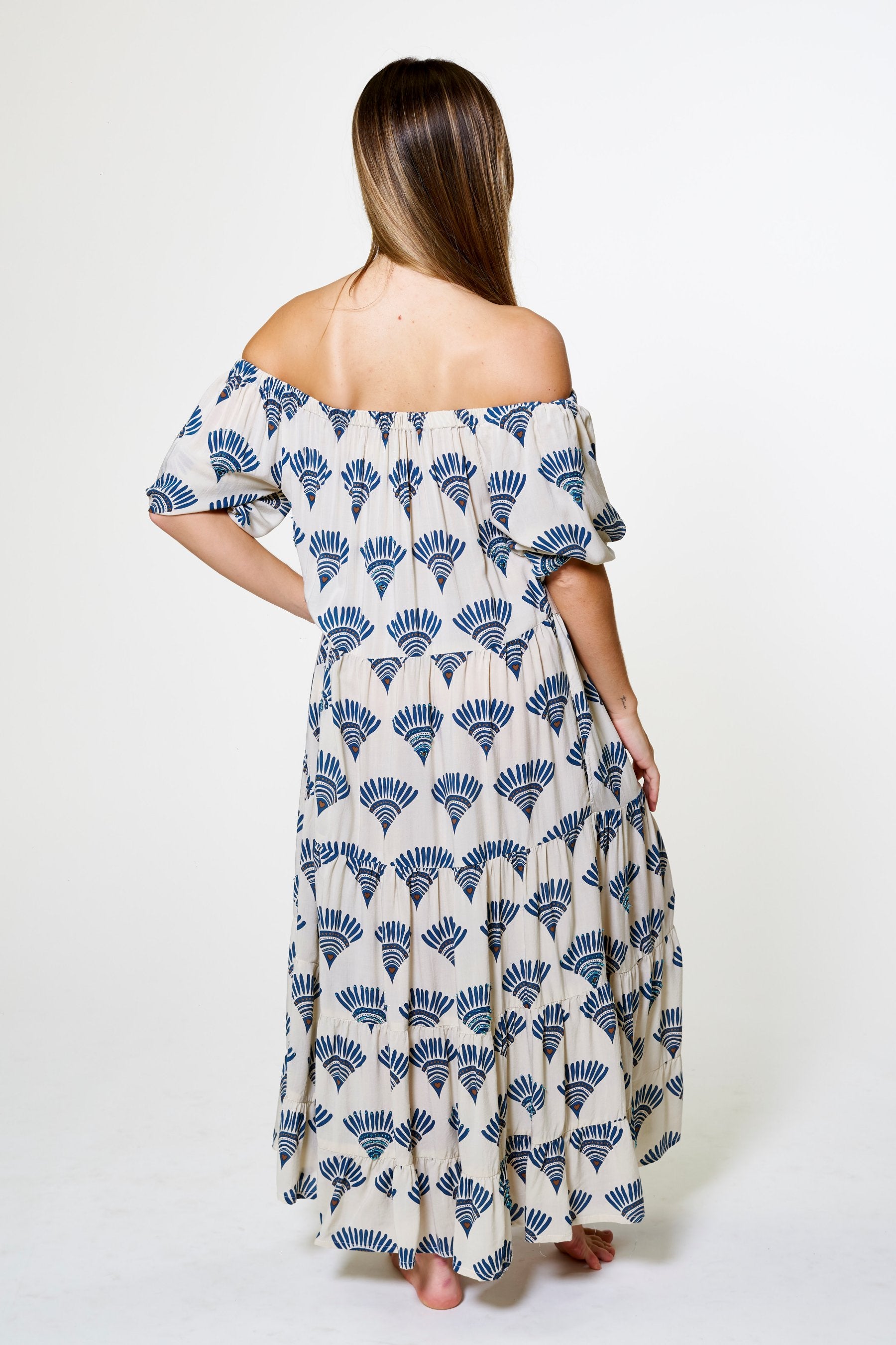 El Long Dress Bondi es un vestido largo de inspiración boho con un corte fluido y femenino. Su diseño liviano, sus tonos naturales y el estampado exclusivo de la colección con sus formas decoradas aleatoriamente con pequeñas cuentas que delinean su silueta en contraste, aportando un detalle artesanal que resalta la frescura y la elegancia natural de la prenda, lo convierten en una opción imprescindible para la temporada.