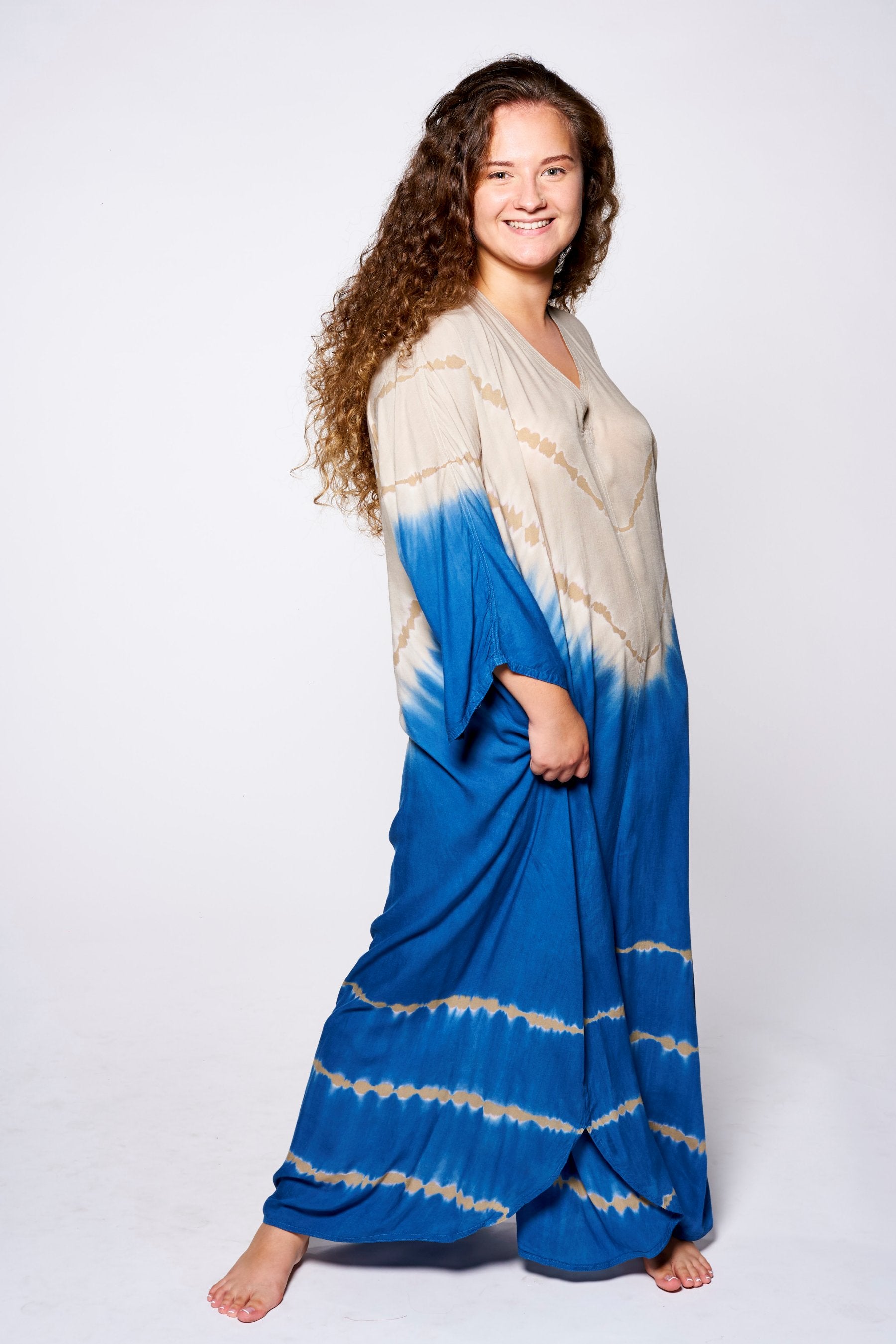 La confección se realiza en Bali, Indonesia, la cuna del Tie Dye, en pequeños talleres familiares de artesanos que, uno a uno, confeccionan, tiñen y cosen a mano las prendas, creando verdaderas obras de arte únicas y exclusivas.