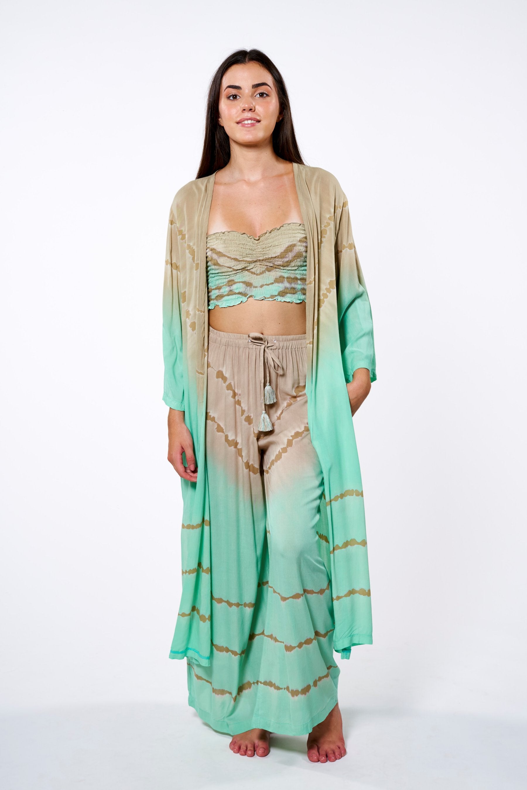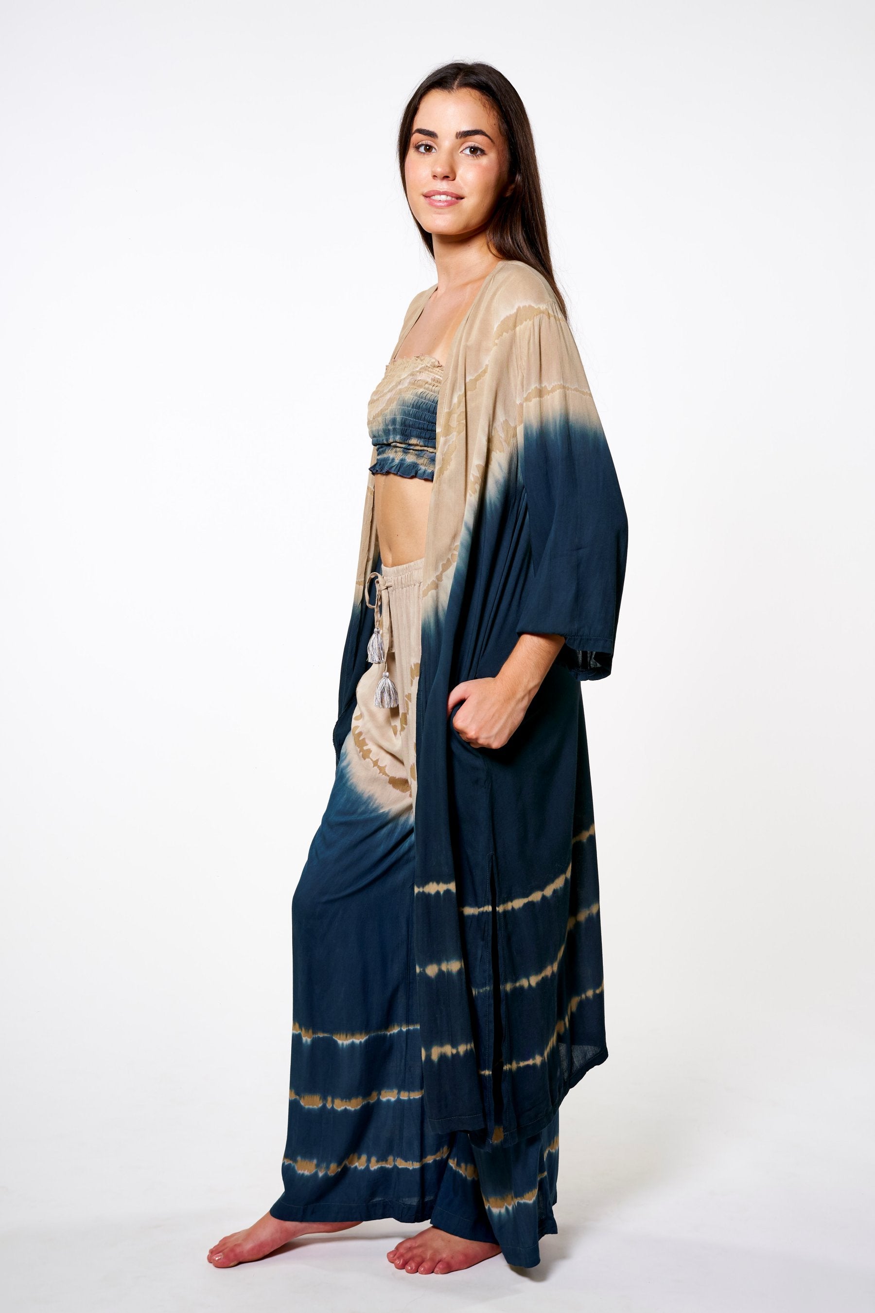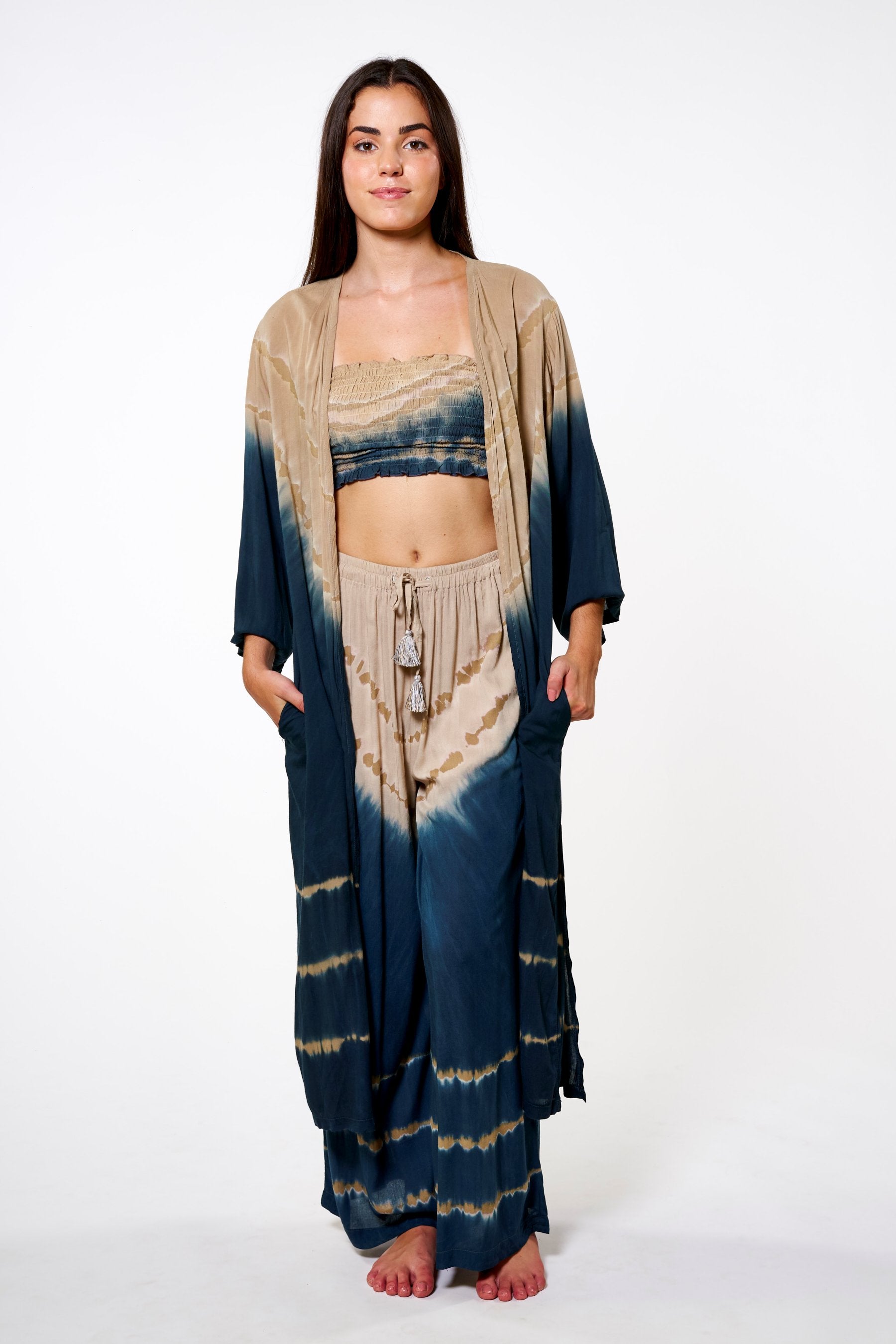 La confección se realiza en Bali, Indonesia, la cuna del Tie Dye, en pequeños talleres familiares de artesanos que, uno a uno, confeccionan, tiñen y cosen a mano las prendas, creando verdaderas obras de arte únicas y exclusivas.