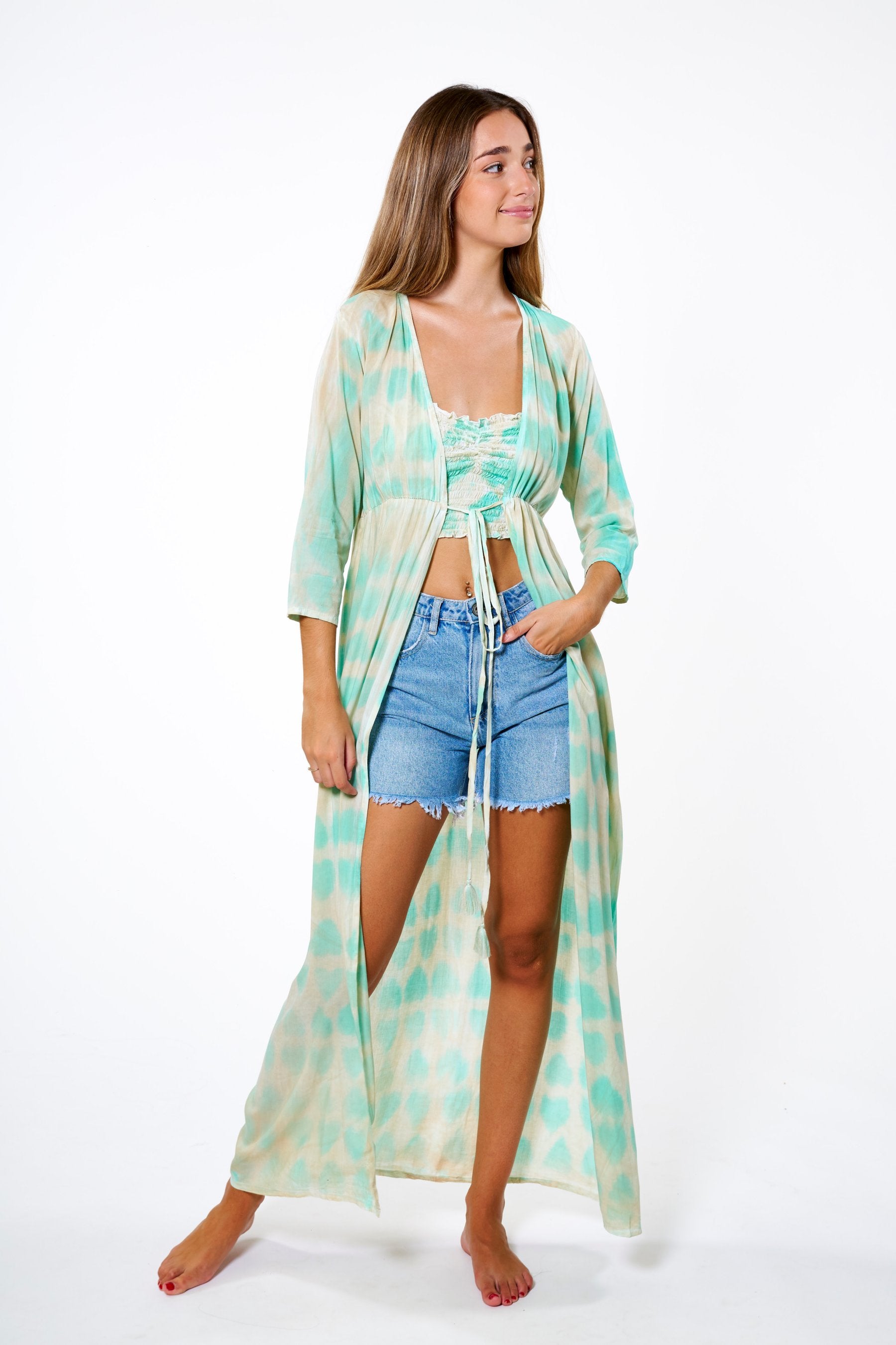 La confección se realiza en Bali, Indonesia, la cuna del Tie Dye, en pequeños talleres familiares de artesanos que, uno a uno, confeccionan, tiñen y cosen a mano las prendas, creando verdaderas obras de arte únicas y exclusivas.