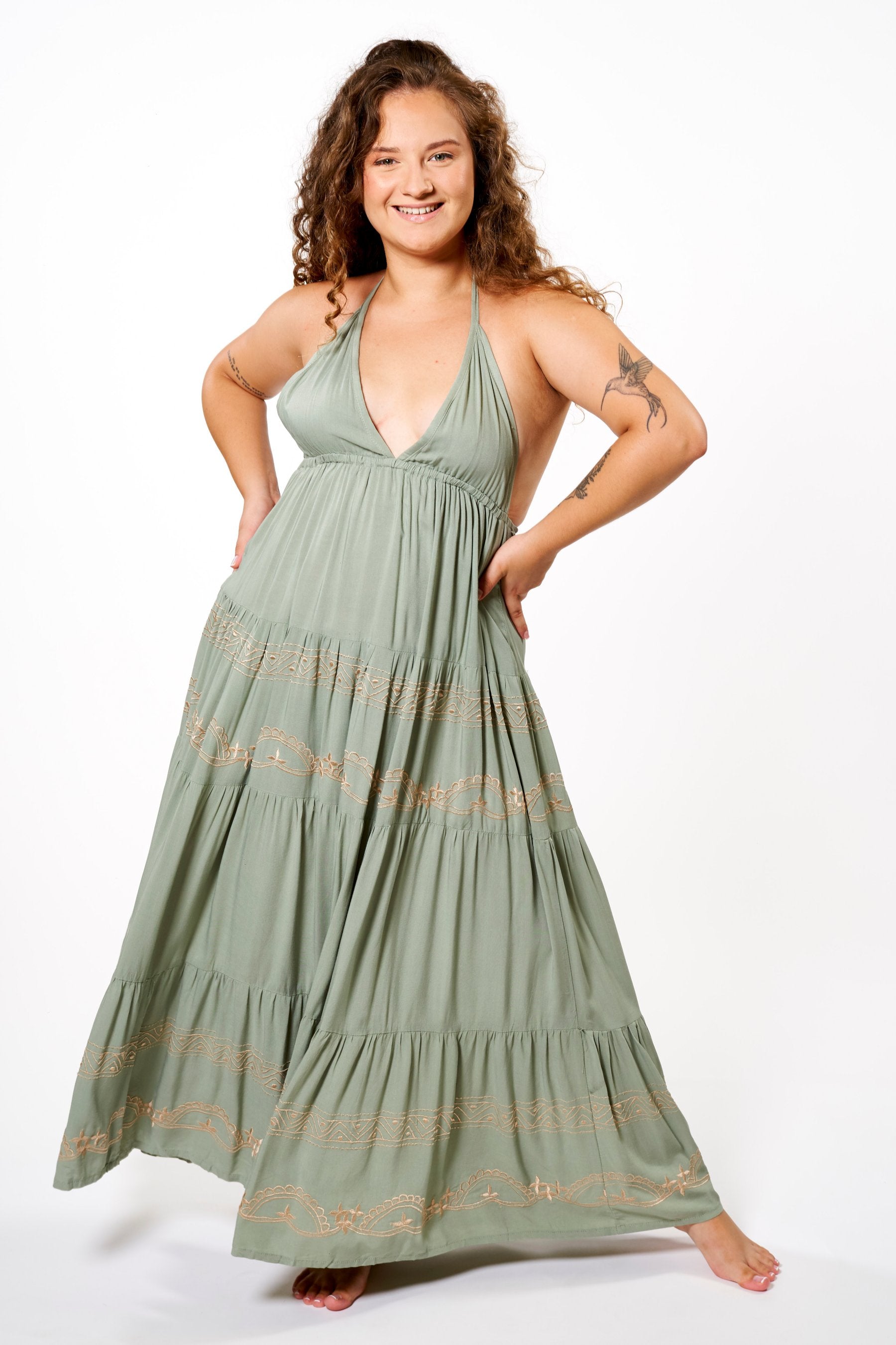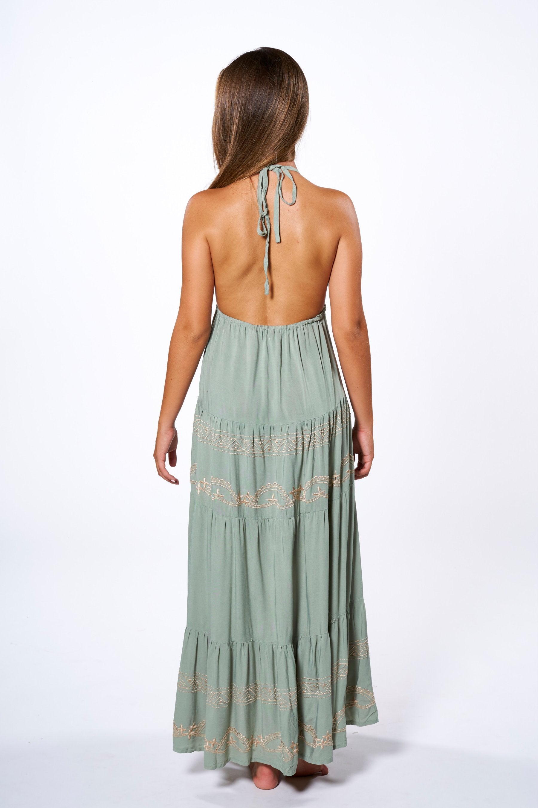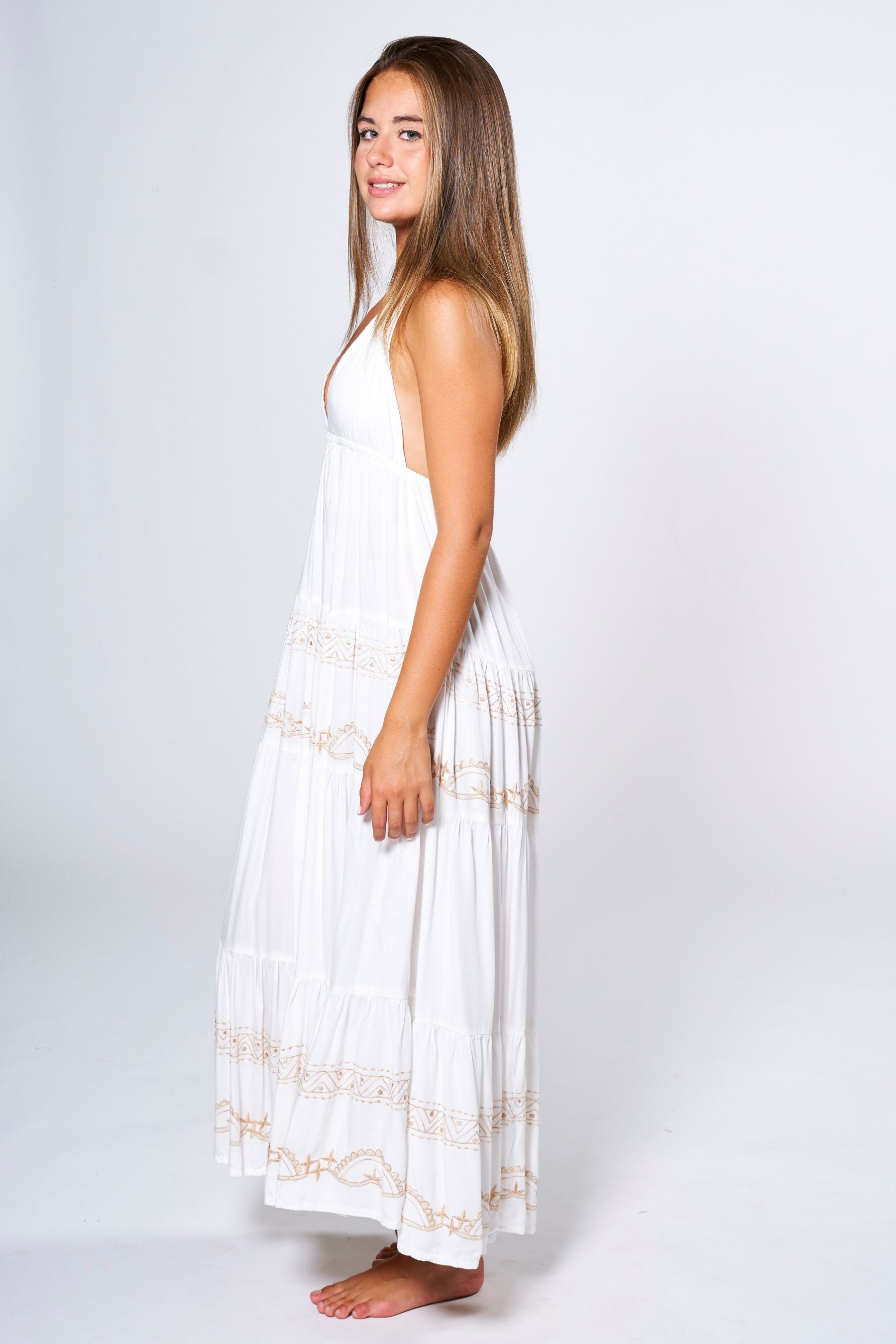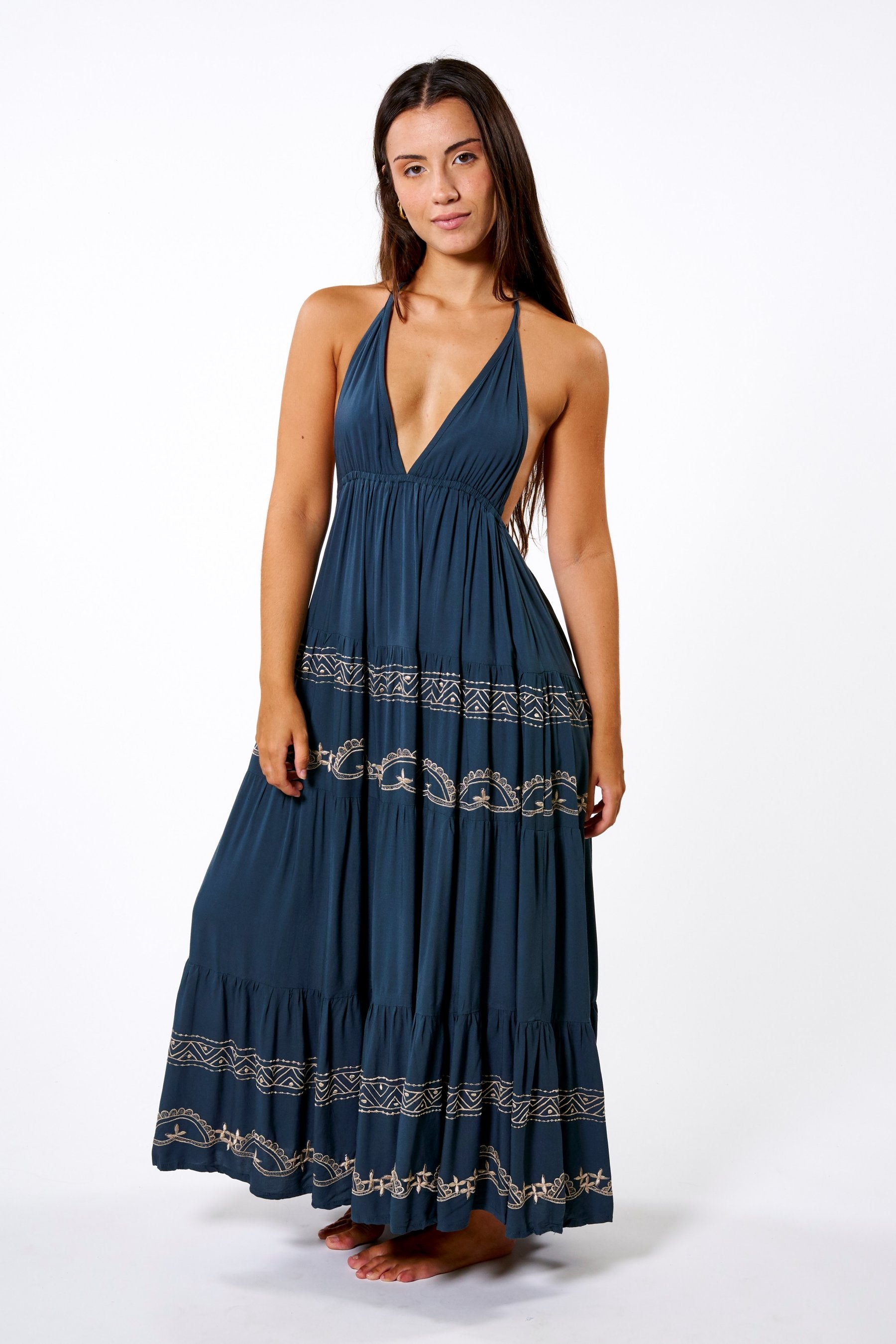 El Long Dress Anini es una pieza delicada y sofisticada que combina la frescura de la viscosa con exquisitos bordados artesanales. Su diseño fluido y su tejido ligero lo convierten en un must-have para el verano. Disponible en tonos inspirados en la naturaleza y la artesanía tradicional.