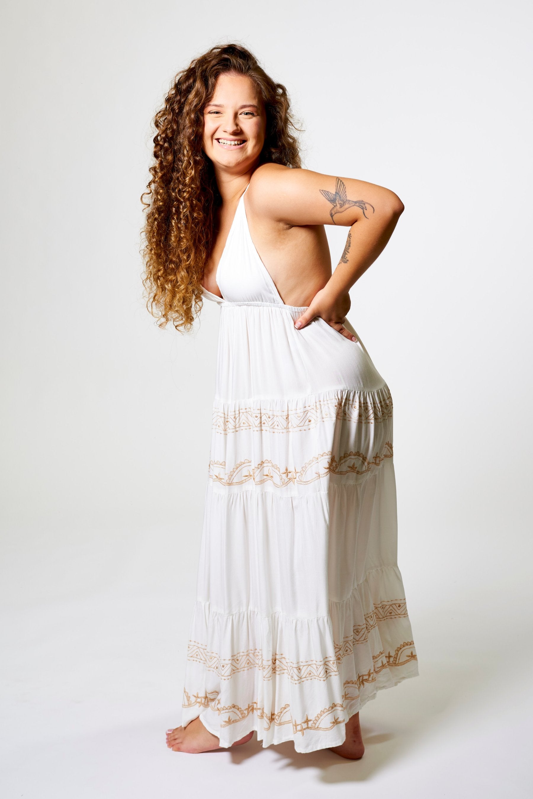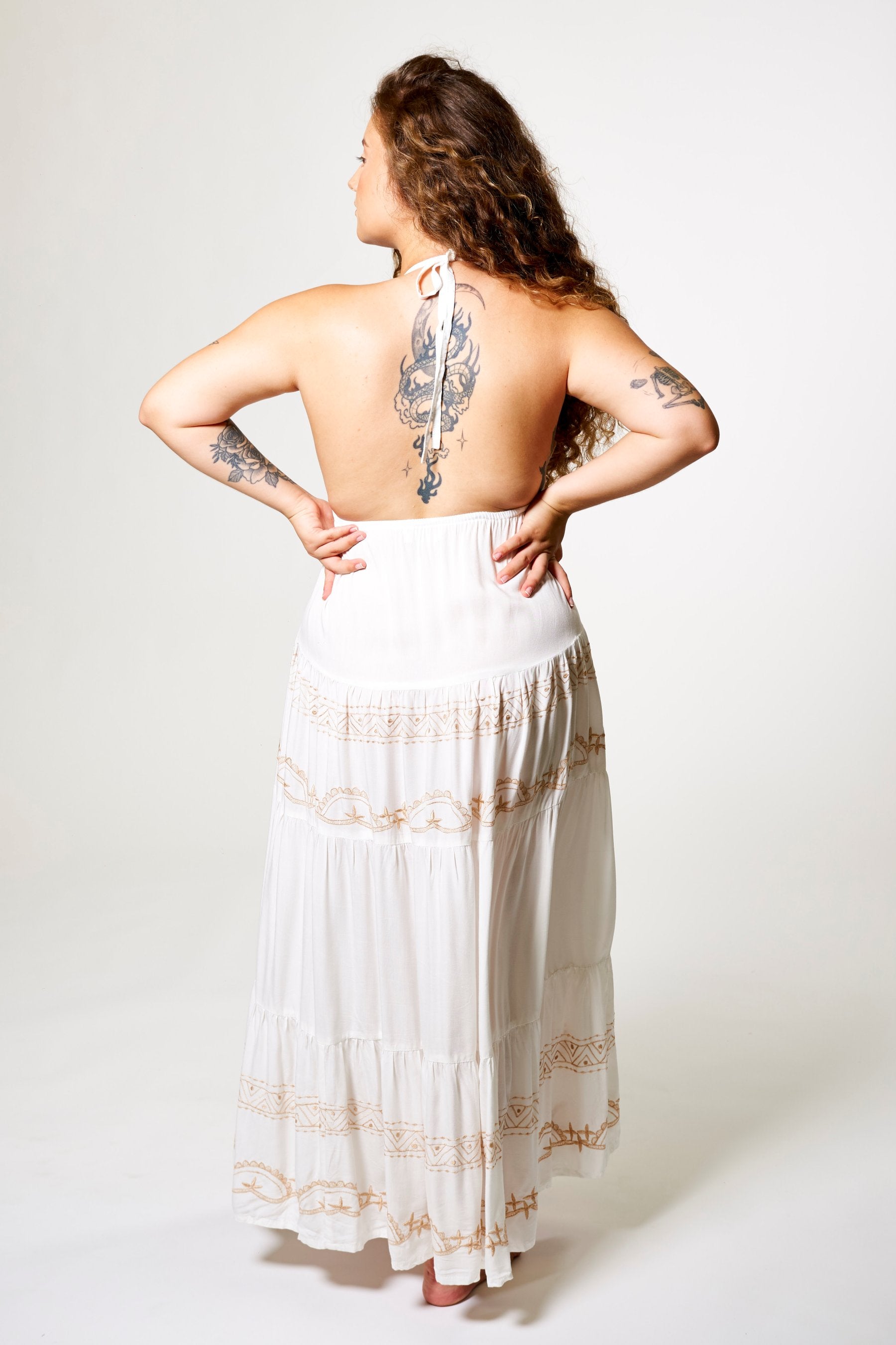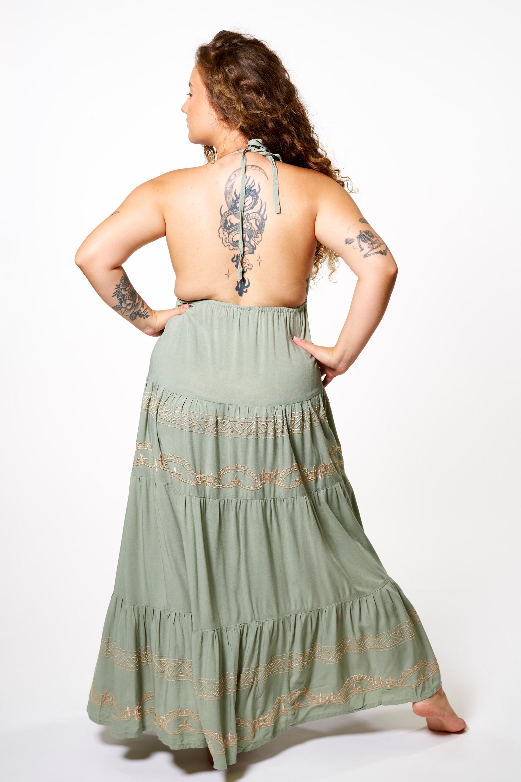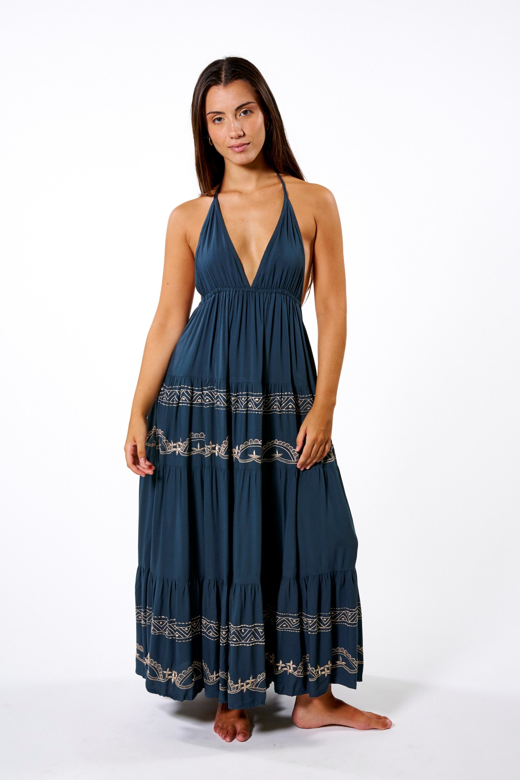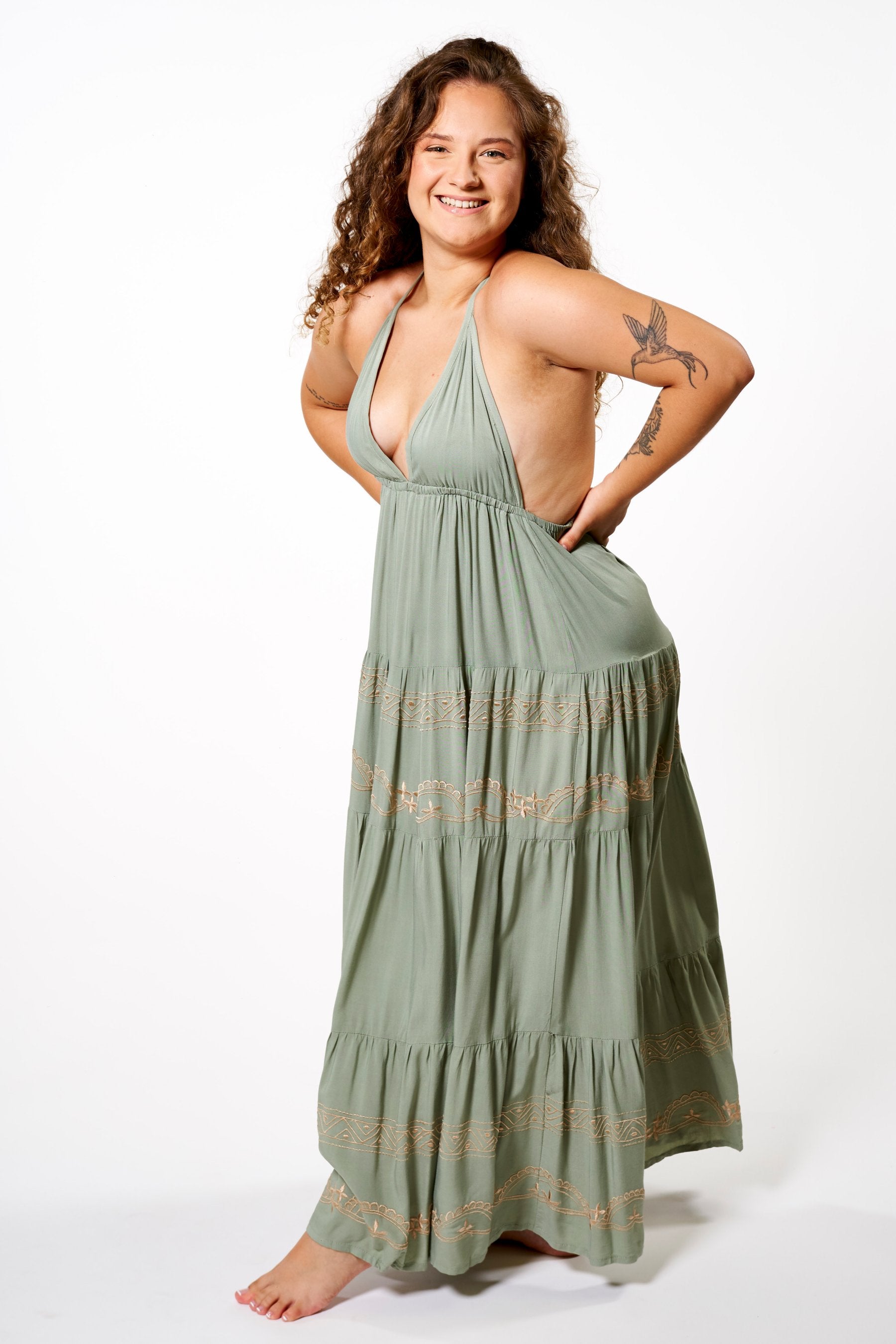El Long Dress Anini es una pieza delicada y sofisticada que combina la frescura de la viscosa con exquisitos bordados artesanales. Su diseño fluido y su tejido ligero lo convierten en un must-have para el verano. Disponible en tonos inspirados en la naturaleza y la artesanía tradicional.