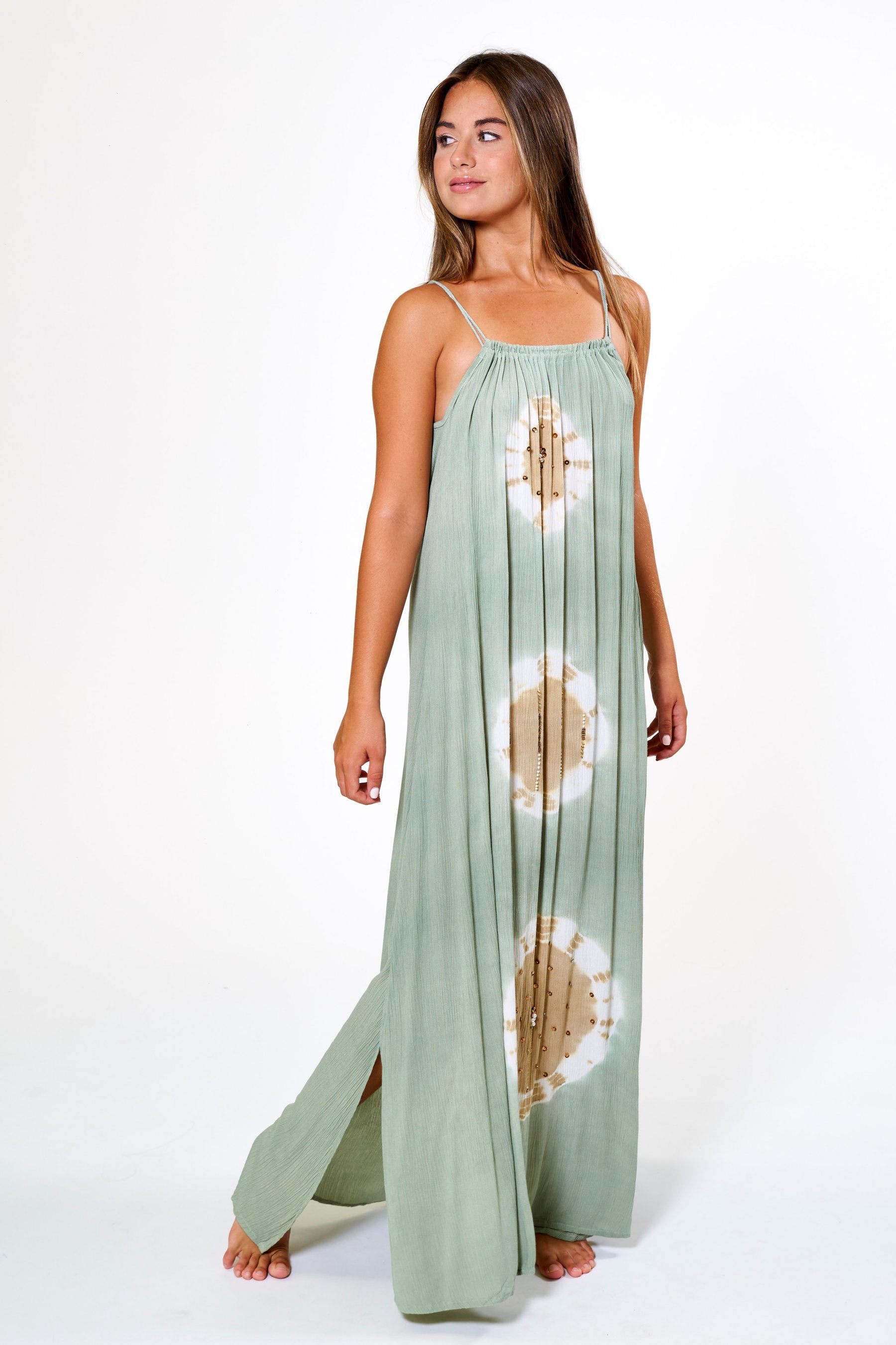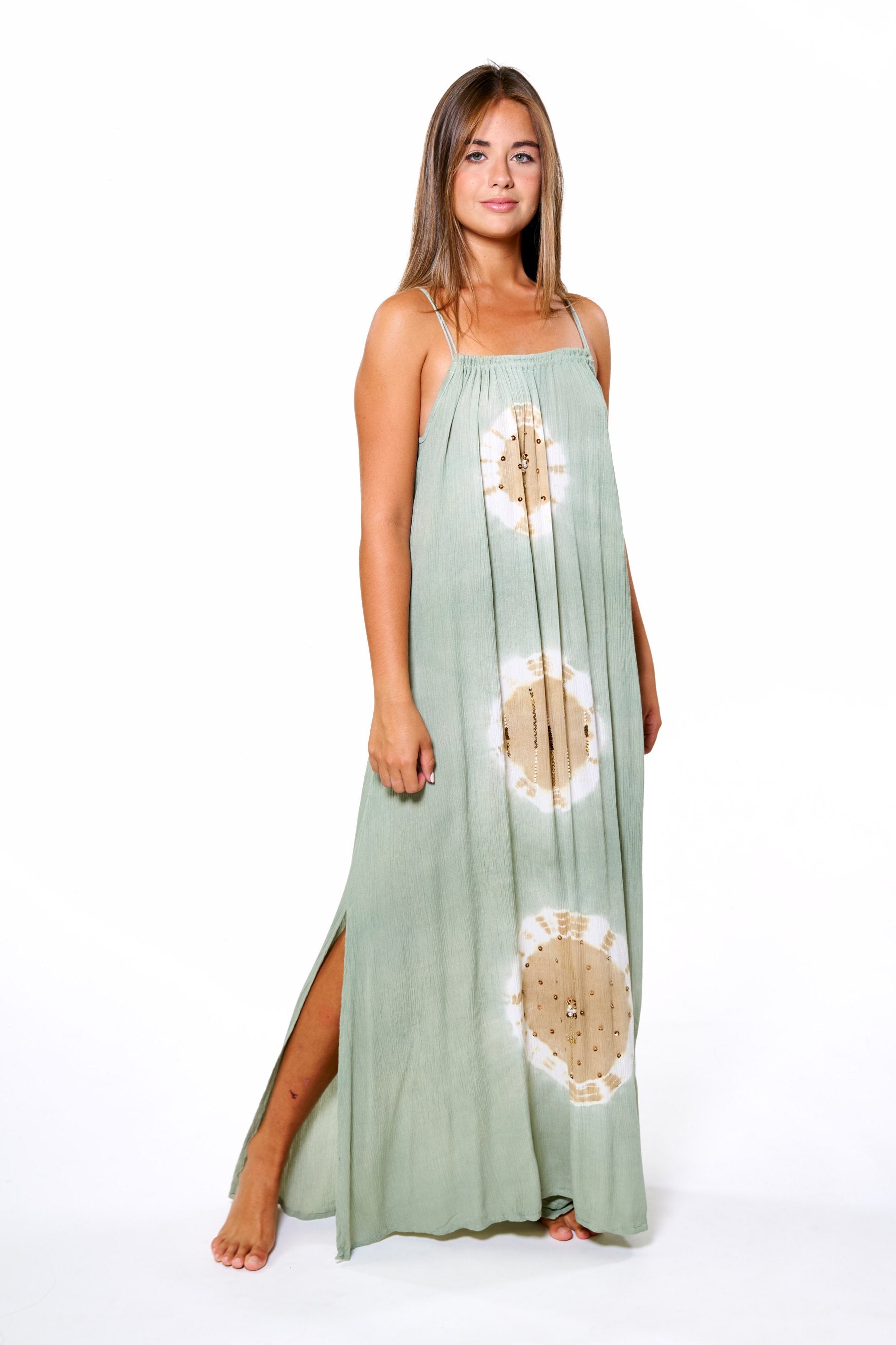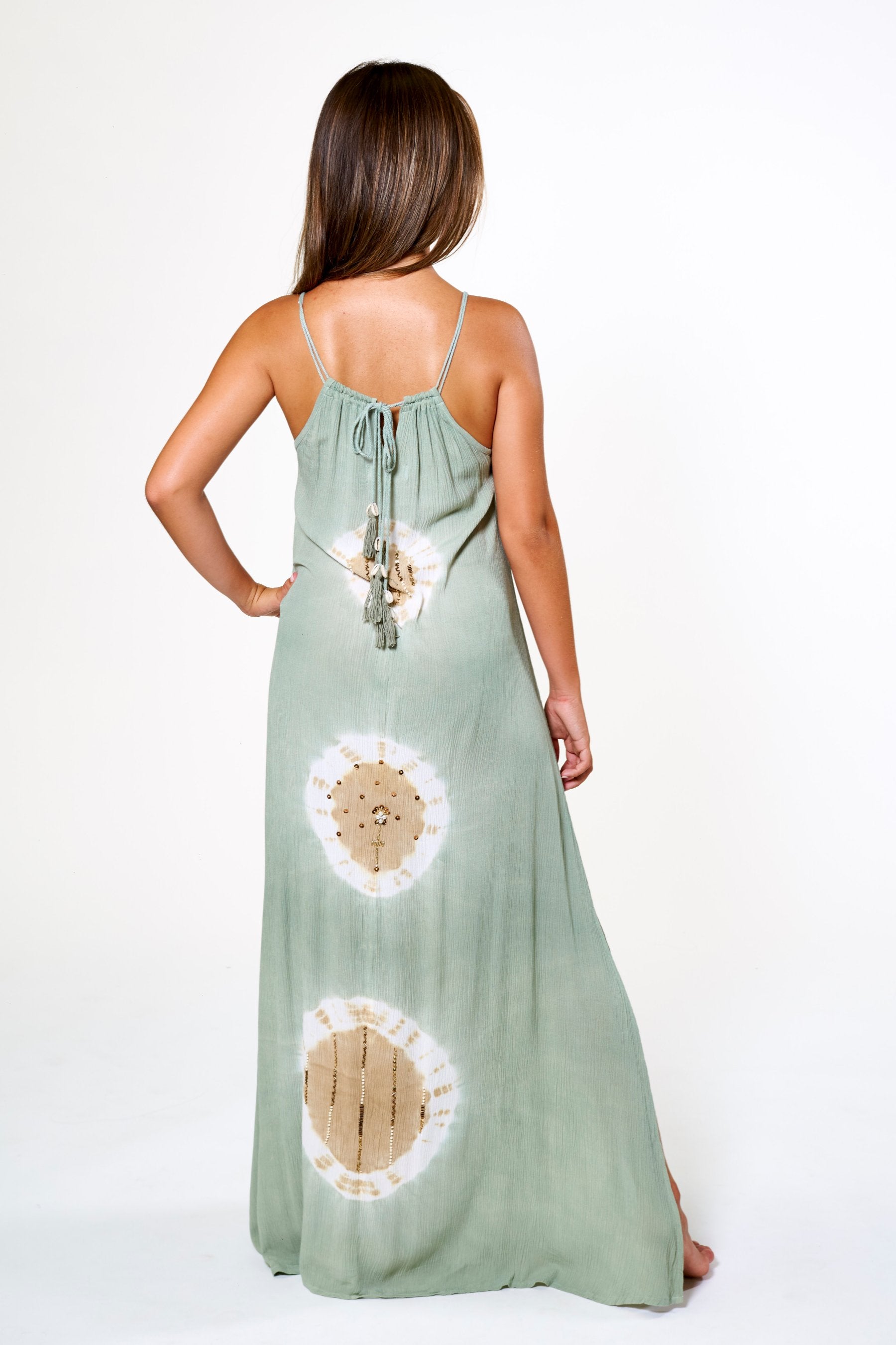 La confección se realiza en Bali, Indonesia, la cuna del Tie Dye, en pequeños talleres familiares de artesanos que, uno a uno, confeccionan, tiñen y cosen a mano las prendas, creando verdaderas obras de arte únicas y exclusivas.