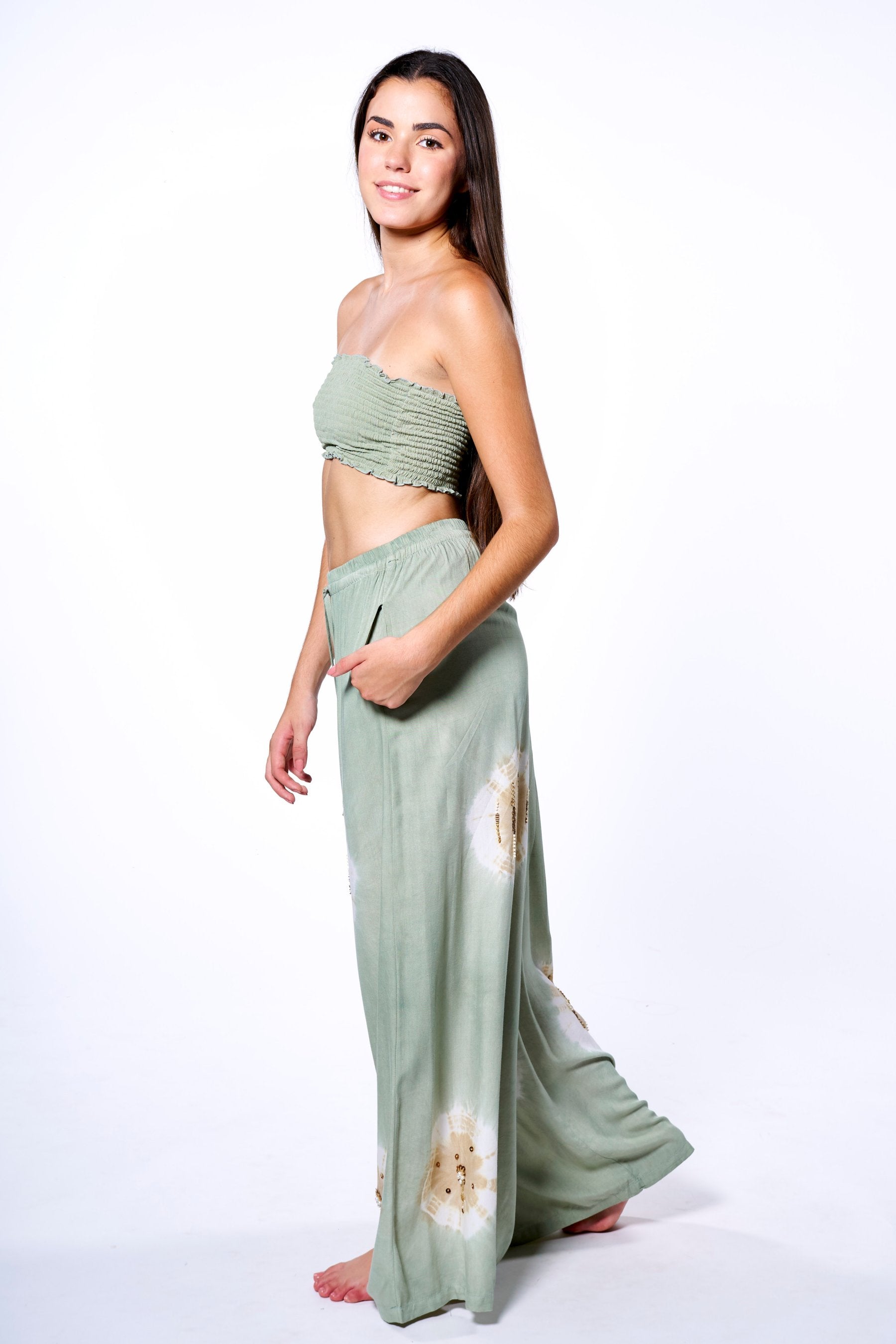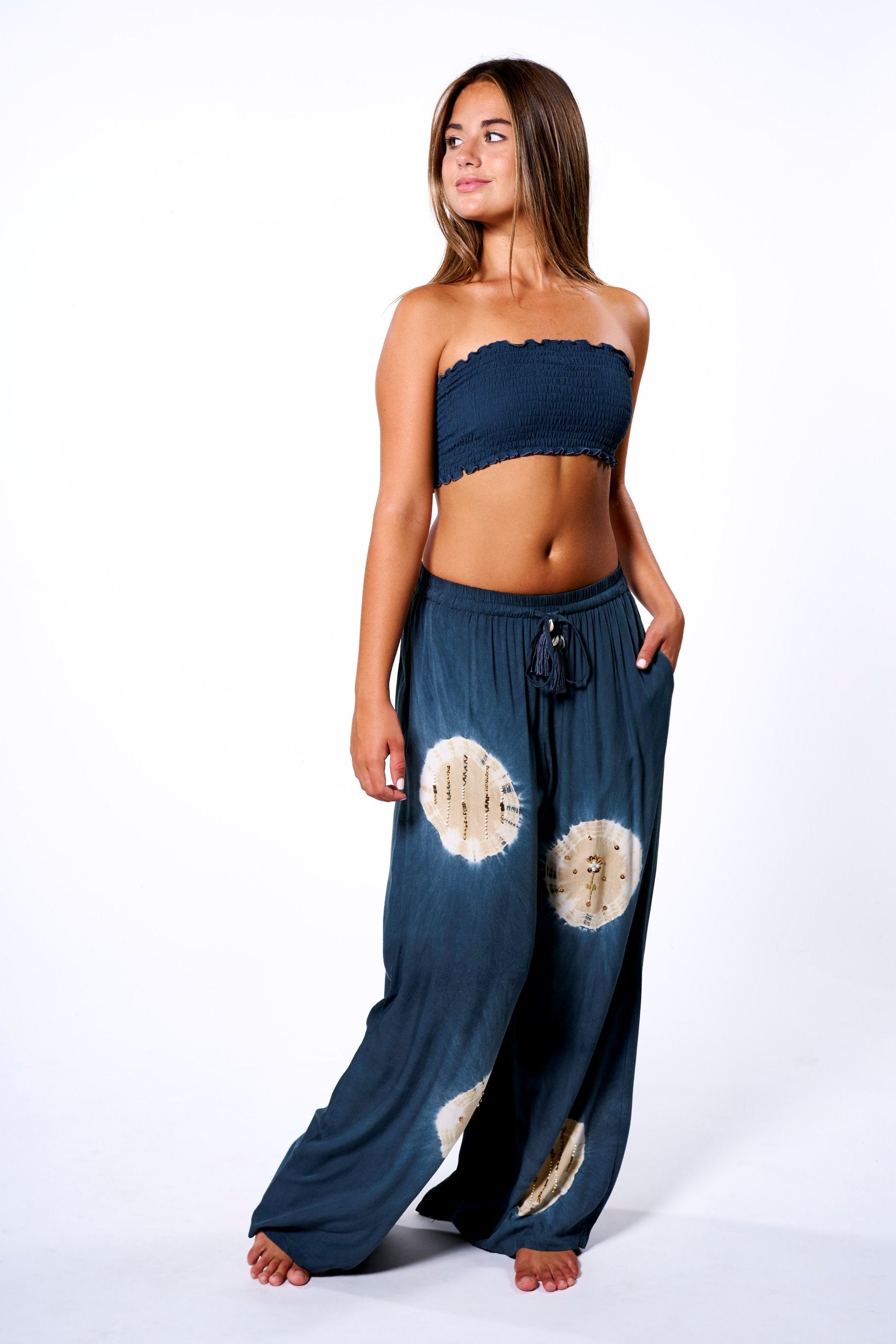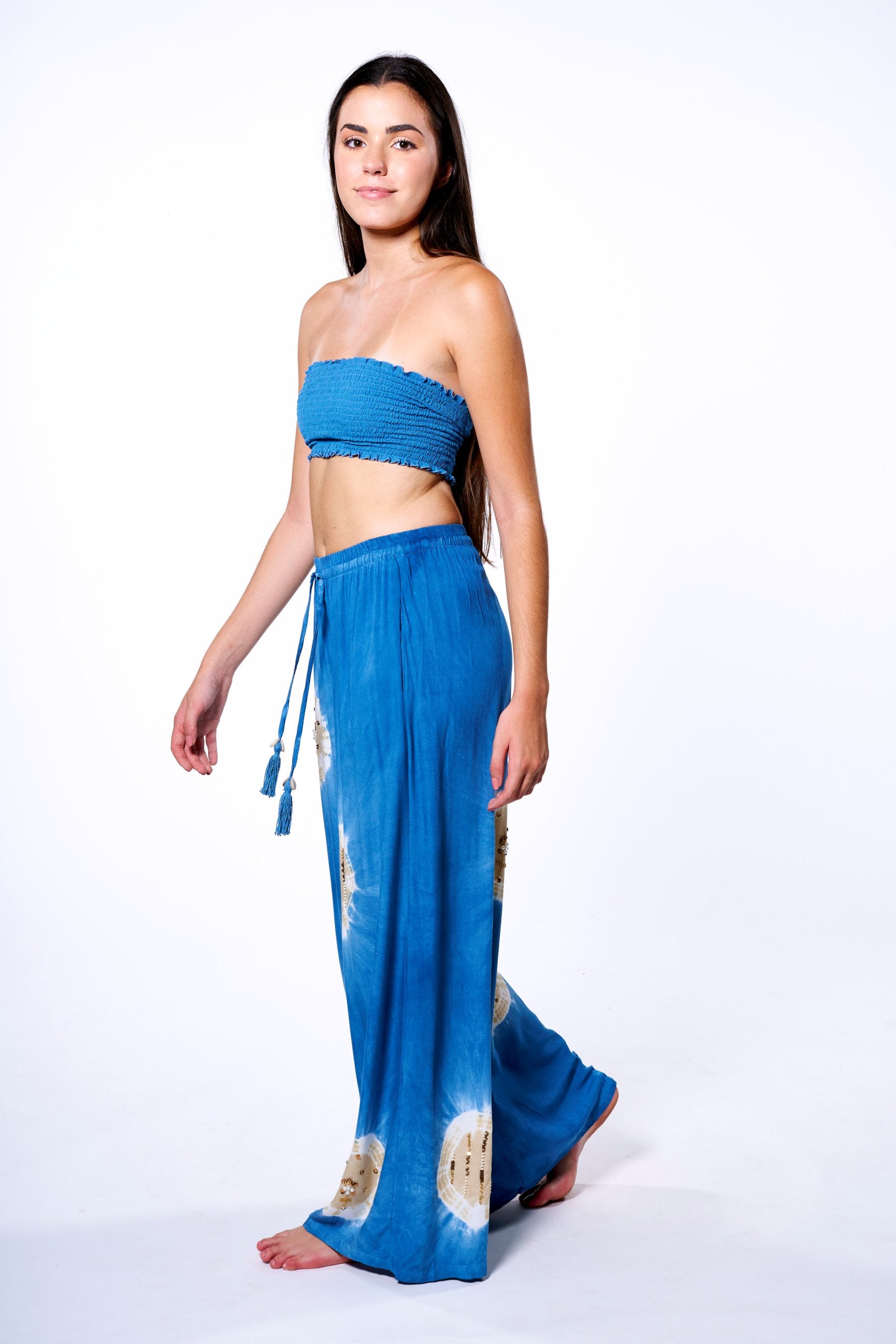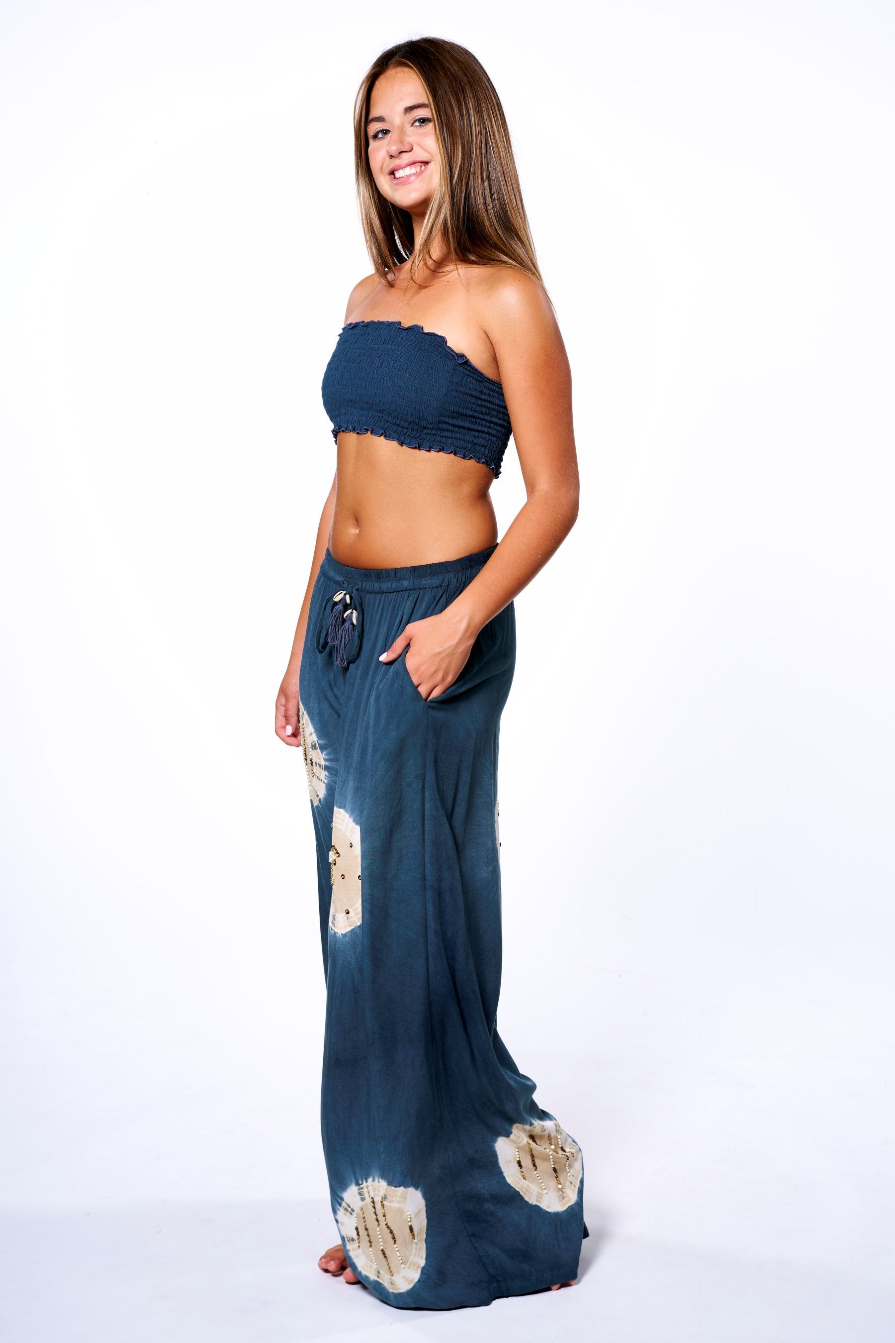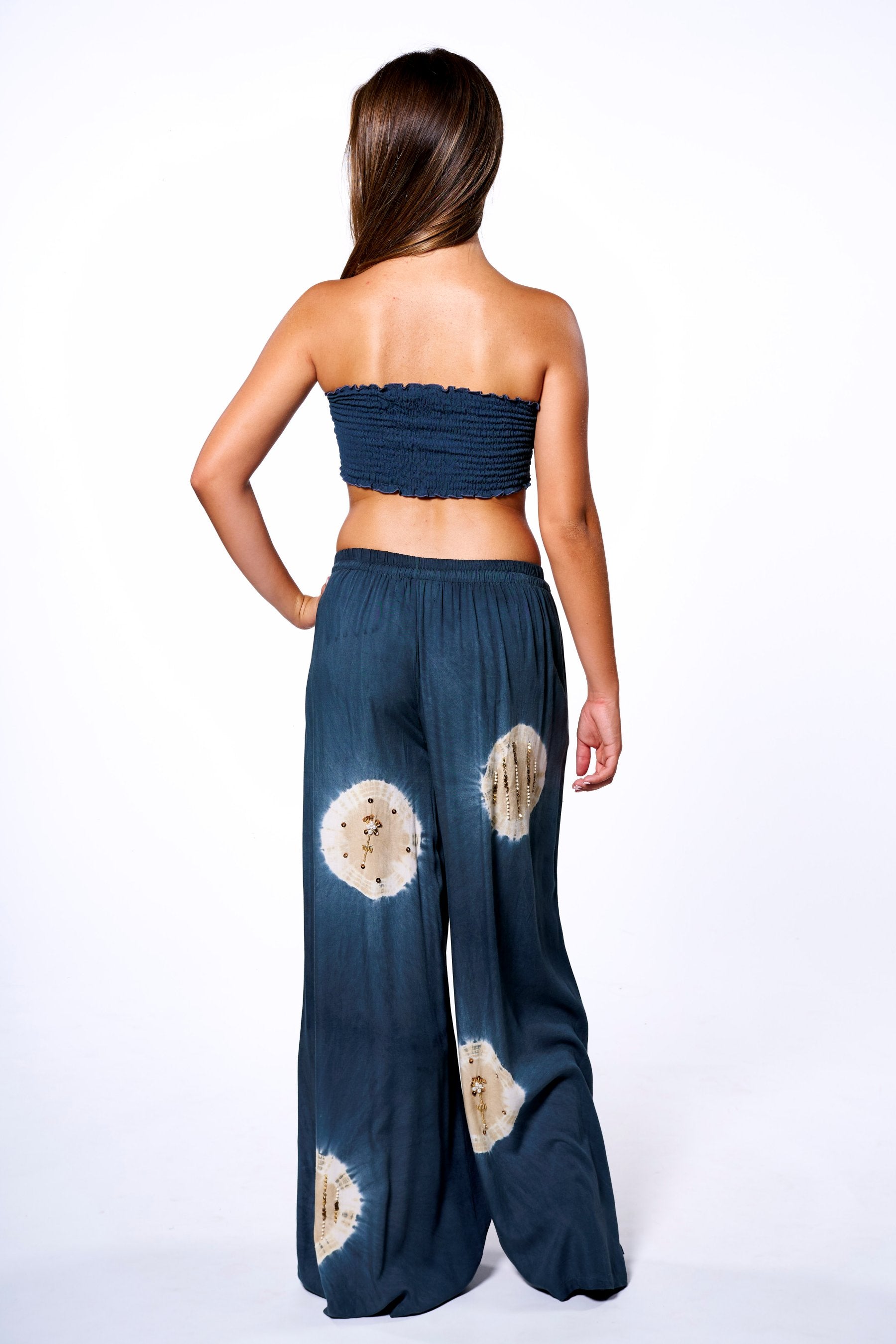 La confección se realiza en Bali, Indonesia, la cuna del Tie Dye, en pequeños talleres familiares de artesanos que, uno a uno, confeccionan, tiñen y cosen a mano las prendas, creando verdaderas obras de arte únicas y exclusivas.