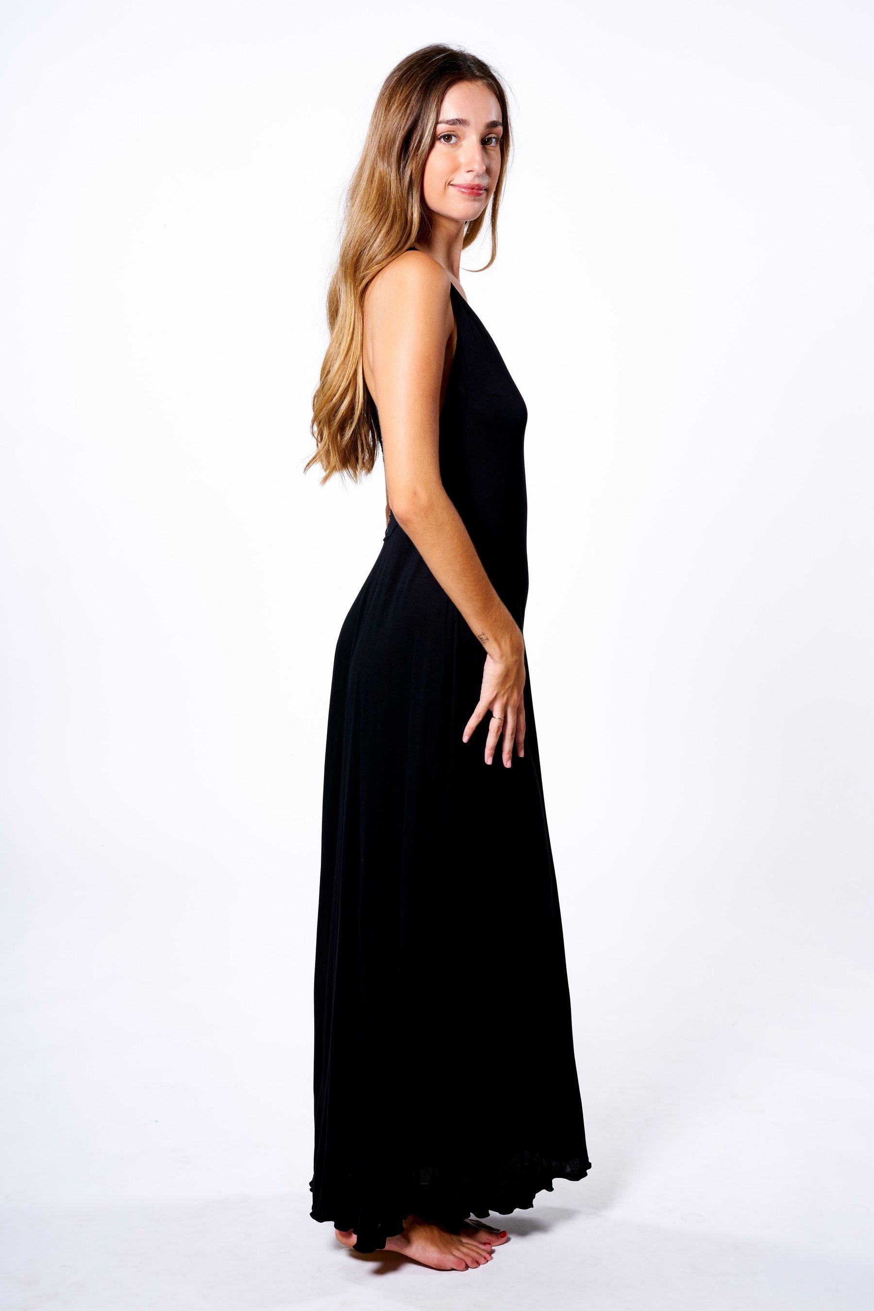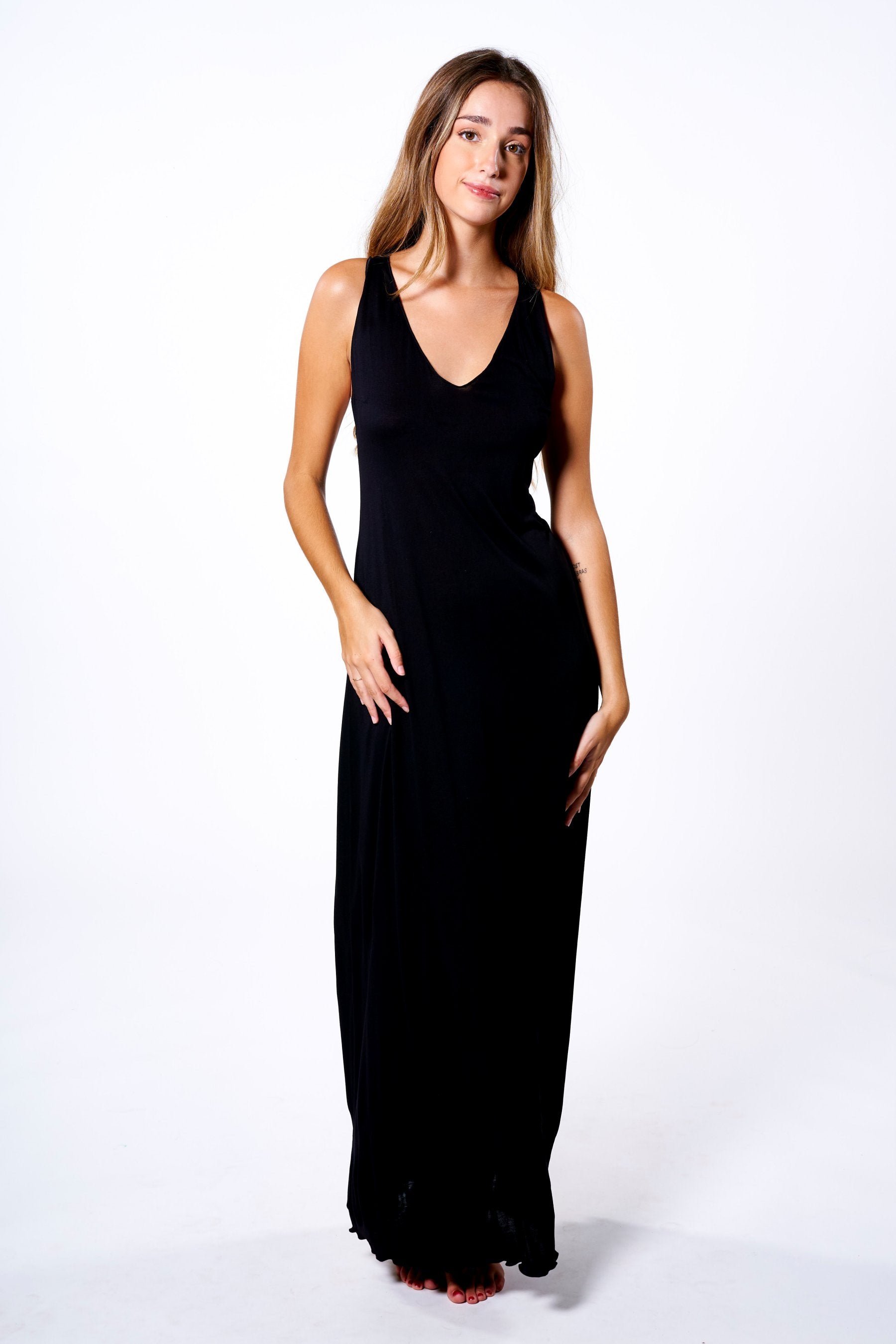 ¡El básico indispensable para tu armario de verano! ¡El vestido Palermo total black es la elección perfecta para tus eventos veraniegos! Destacándose como uno de nuestros diseños estrella, este vestido ofrece un ajuste maravilloso y una comodidad excepcional gracias a su tejido elástico 100% punto de algodón. Su elegante escote en V agrega un toque de sofisticación, pero es la espalda lo que realmente lo hace destacar: Confeccionada en tul y adornada con abalorios cosidos a mano, presenta un corte de nadadora con tirantes anchos que realzan tu figura. Con una longitud hasta los pies, este vestido es una combinación perfecta de estilo y confort.