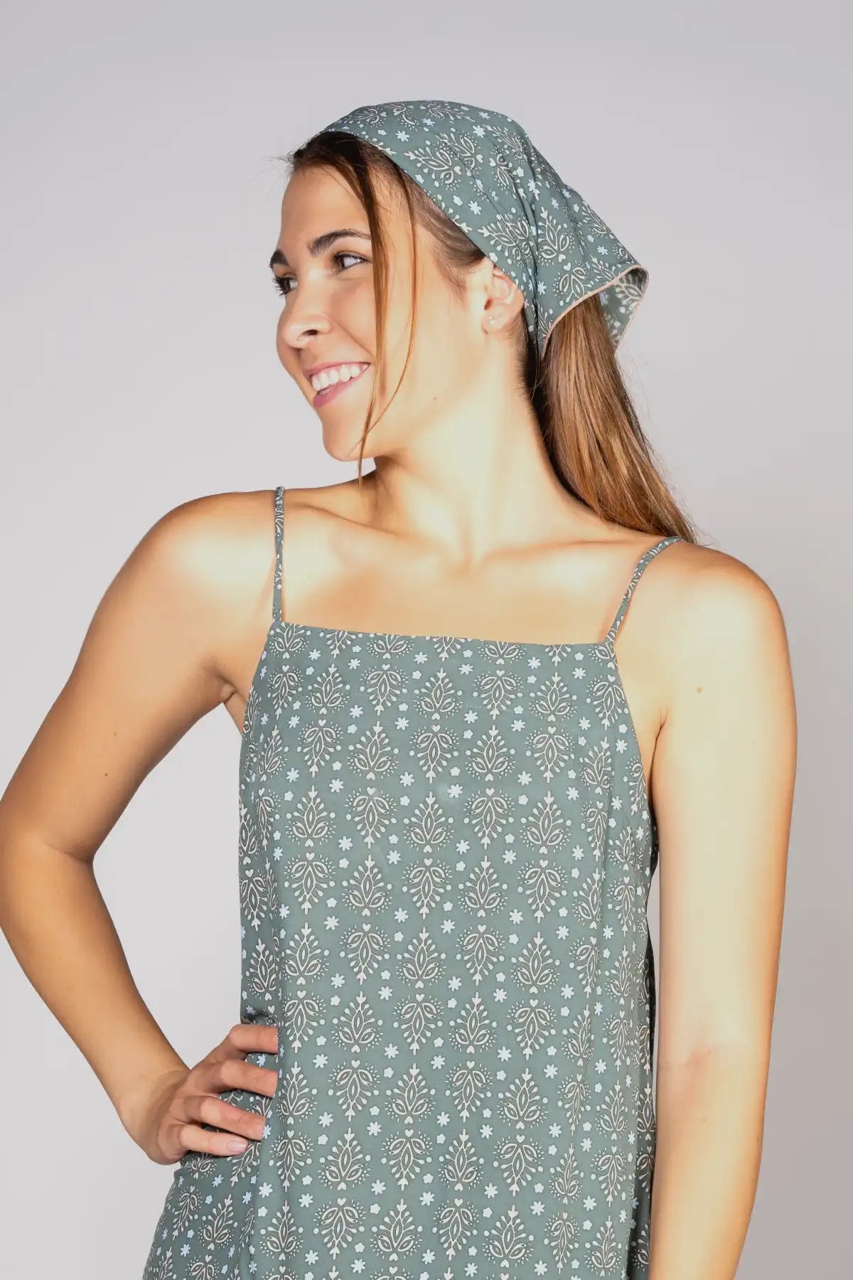 Pañuelo para el cabello de nuestro print exclusivo de la nueva colección Wailele, un estampado de diseño propio. Úsalo como cinta para el pelo o como pañuelo también para dar un toque especial a tus complementos y crea un total look Melé Beach.