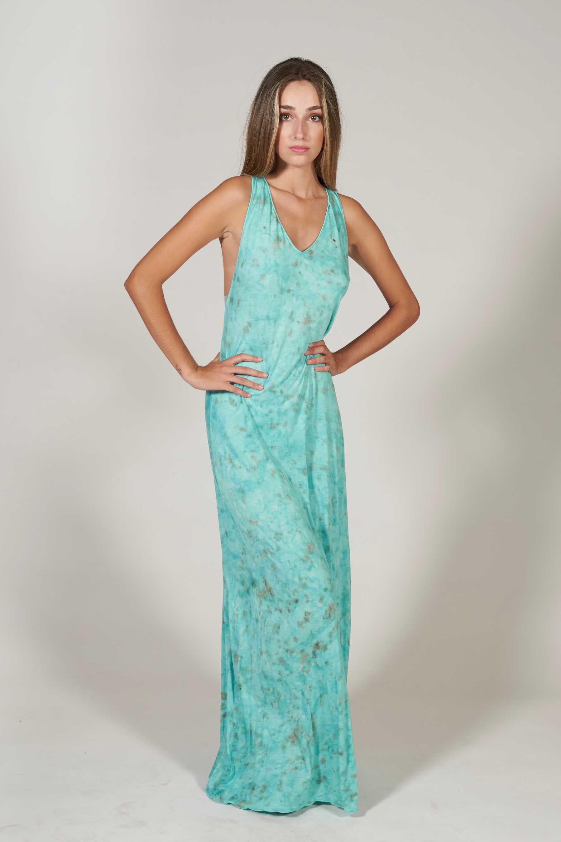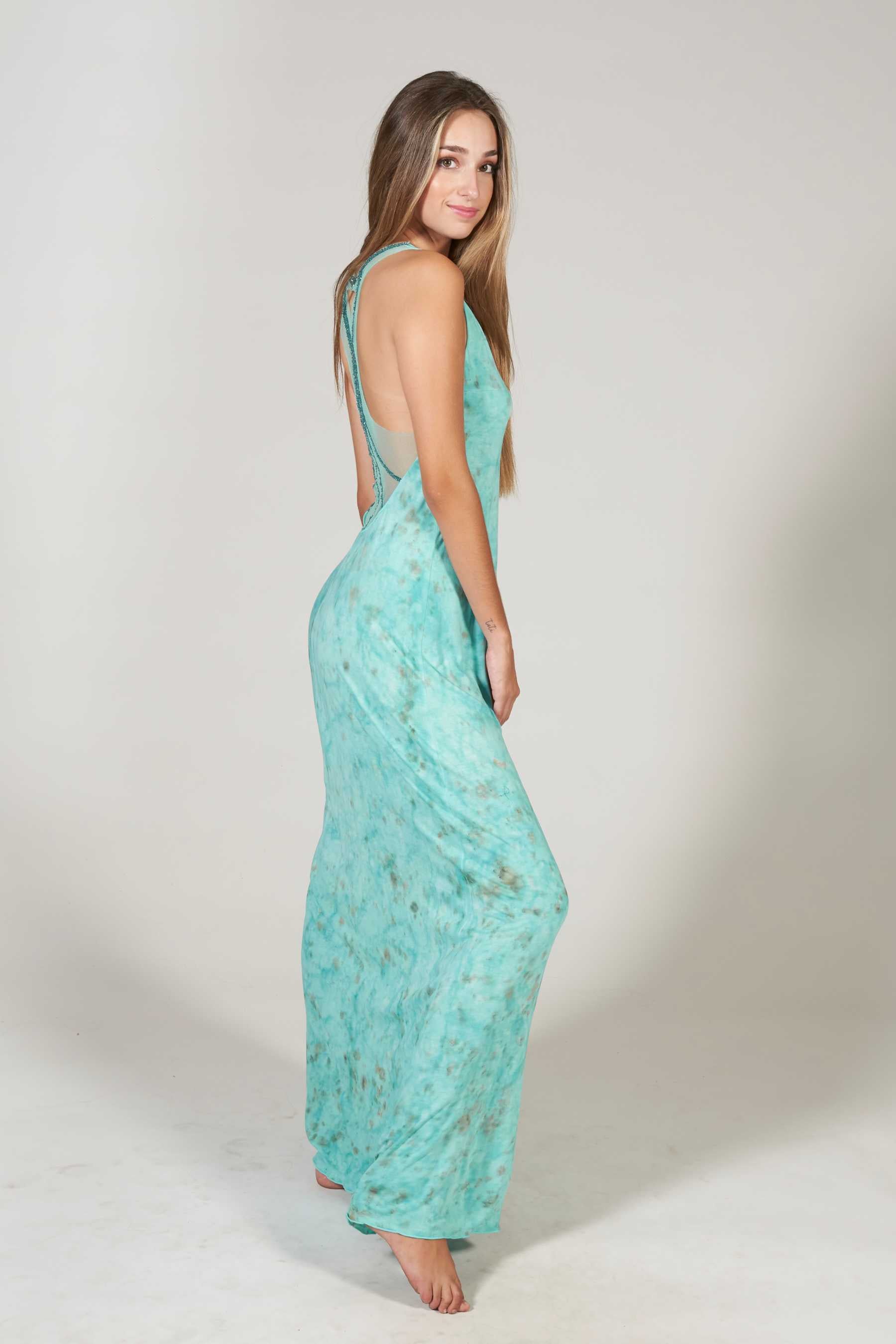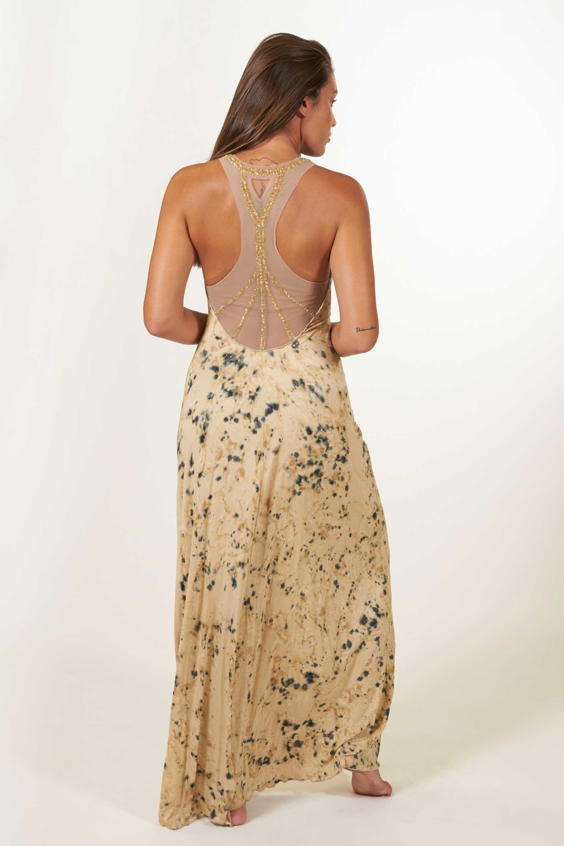¡El vestido Palermo es la elección perfecta para tus eventos veraniegos! Destacándose como uno de nuestros diseños estrella, este vestido ofrece un ajuste maravilloso y una comodidad excepcional gracias a su tejido elástico 100% punto de algodón. Su elegante escote en V agrega un toque de sofisticación, pero es la espalda lo que realmente lo hace destacar: Confeccionada en tul y adornada con abalorios cosidos a mano, presenta un corte de nadadora con tirantes anchos que realzan tu figura. Con una longitud hasta los pies, este vestido es una combinación perfecta de estilo y confort. El tie dye, realizado a mano con nuestros diseños exclusivos, utiliza pigmentos naturales para un toque único.