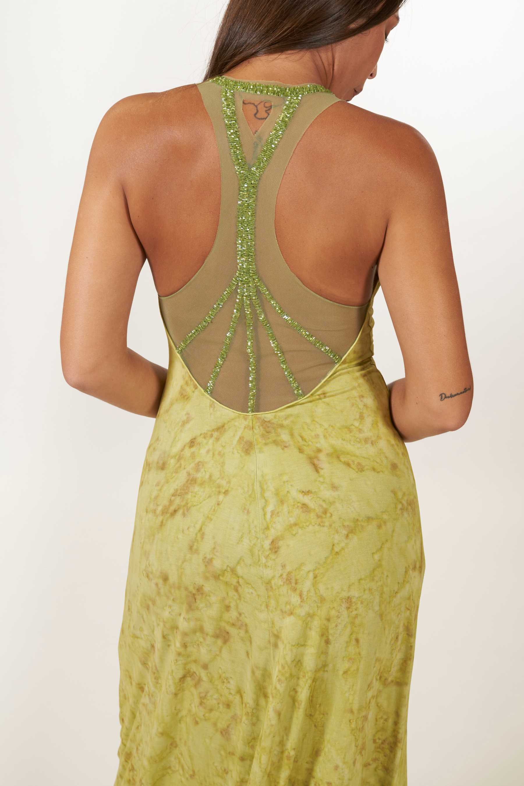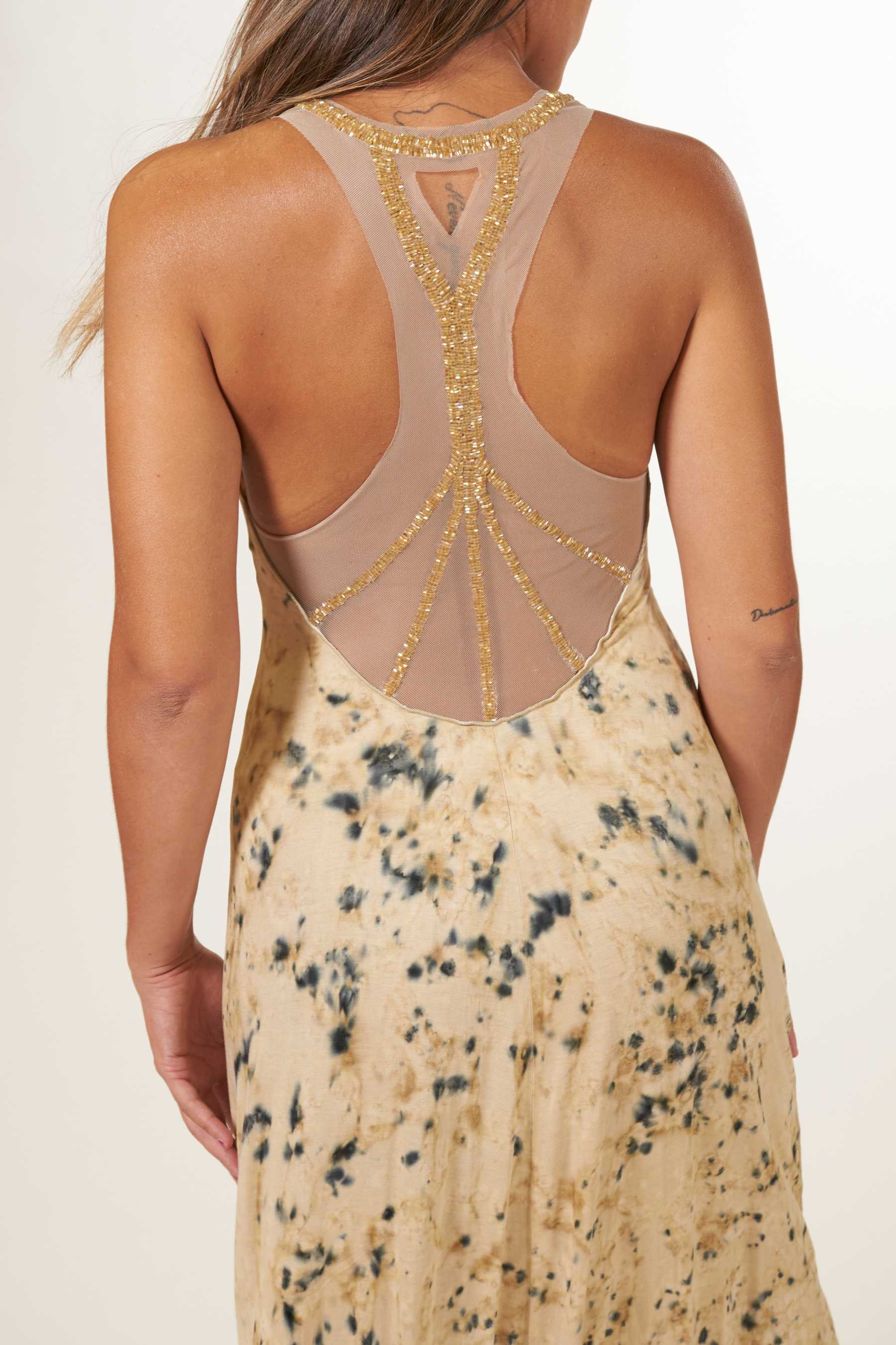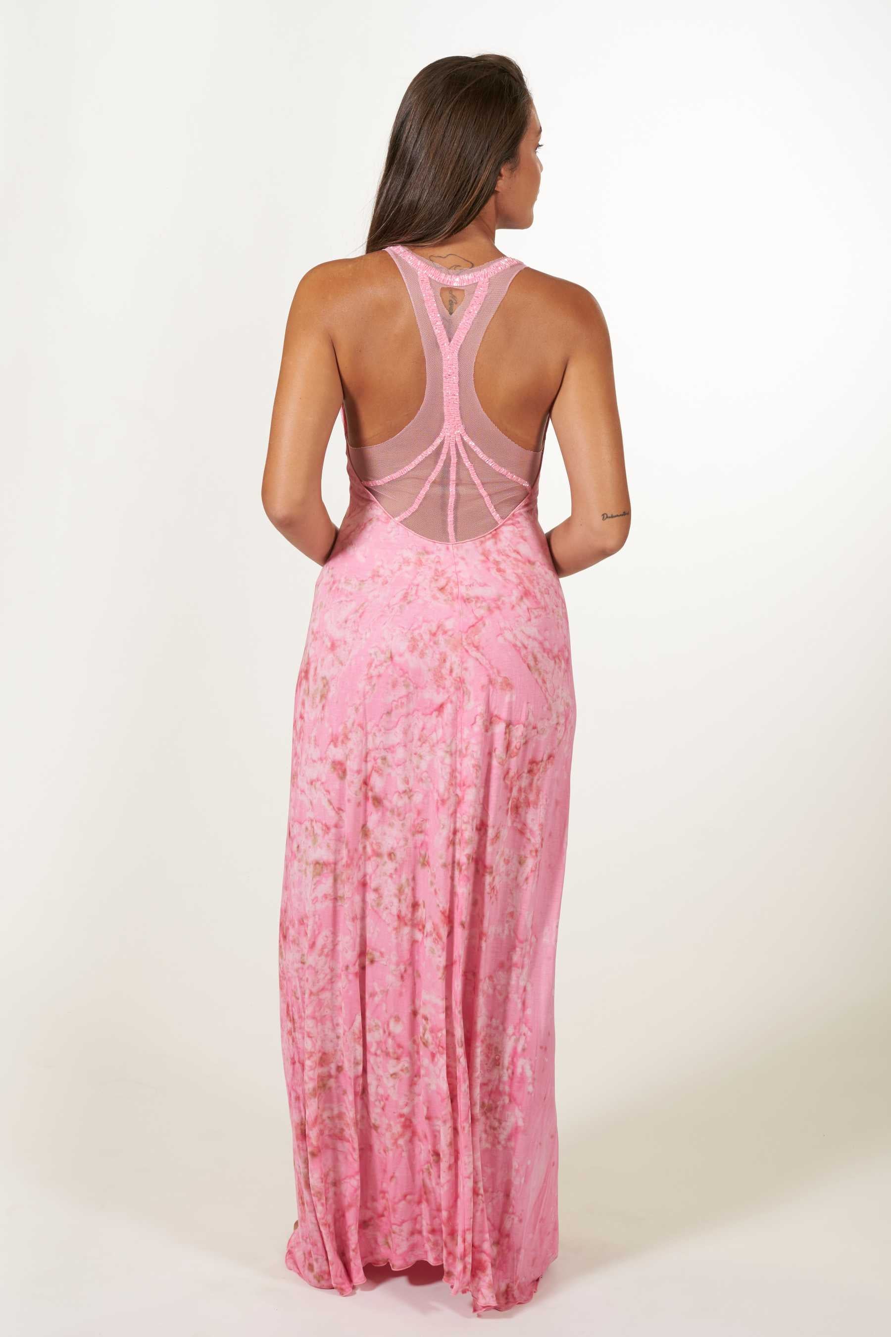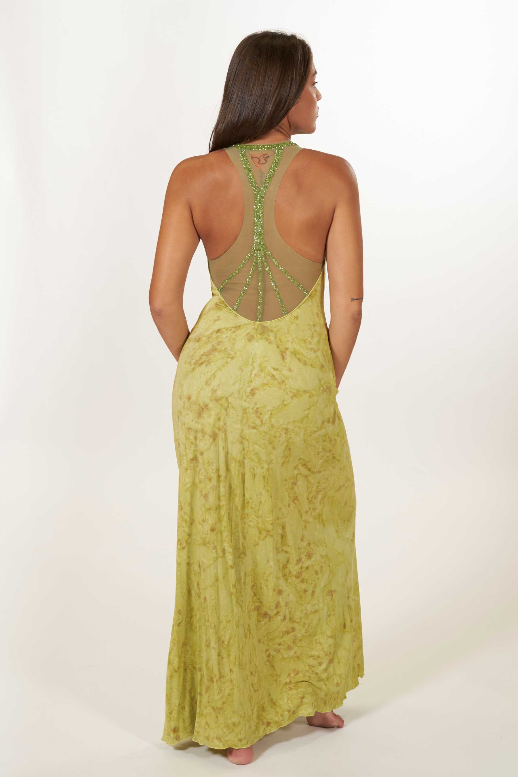 ¡El vestido Palermo es la elección perfecta para tus eventos veraniegos! Destacándose como uno de nuestros diseños estrella, este vestido ofrece un ajuste maravilloso y una comodidad excepcional gracias a su tejido elástico 100% punto de algodón. Su elegante escote en V agrega un toque de sofisticación, pero es la espalda lo que realmente lo hace destacar: Confeccionada en tul y adornada con abalorios cosidos a mano, presenta un corte de nadadora con tirantes anchos que realzan tu figura. Con una longitud hasta los pies, este vestido es una combinación perfecta de estilo y confort. El tie dye, realizado a mano con nuestros diseños exclusivos, utiliza pigmentos naturales para un toque único.