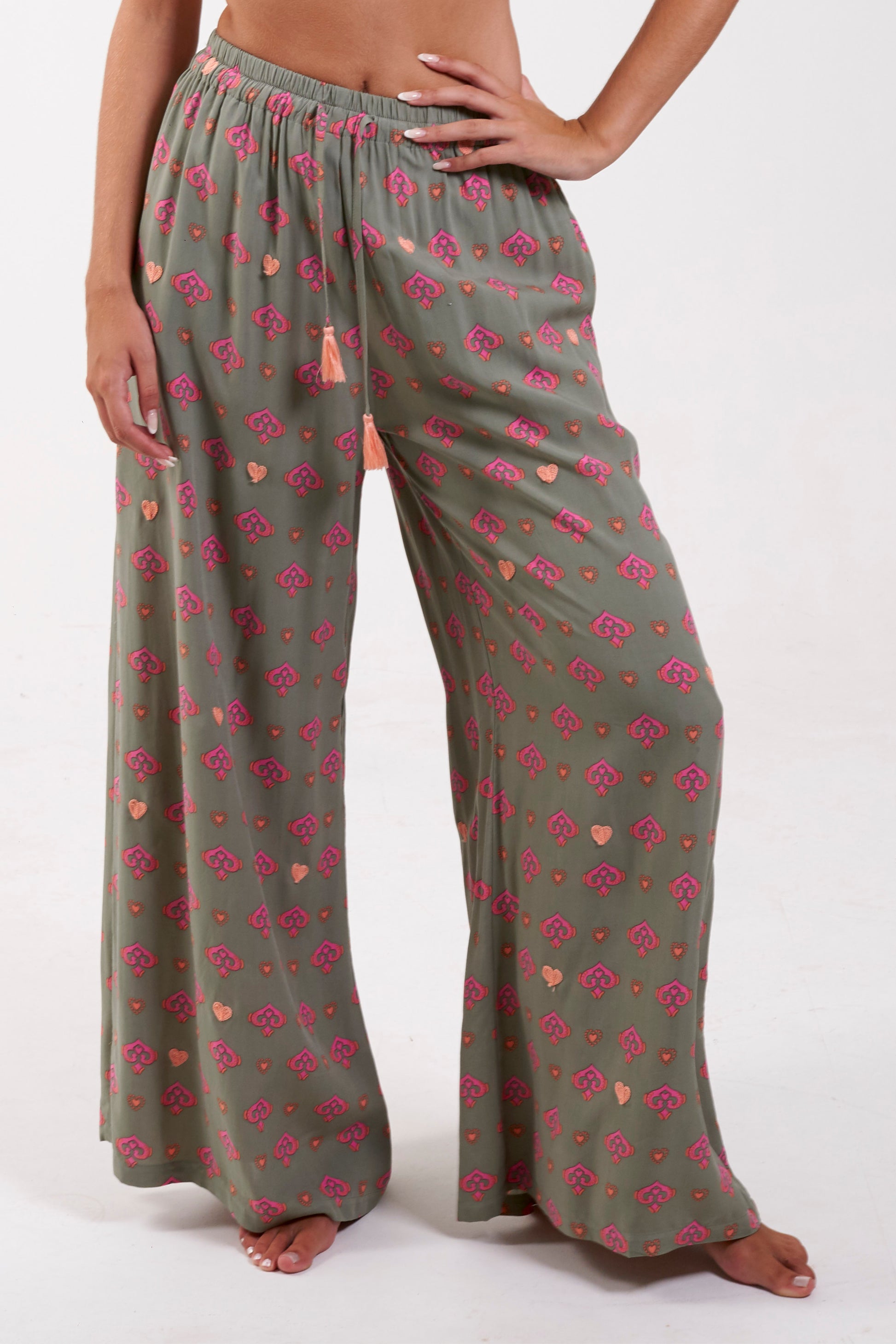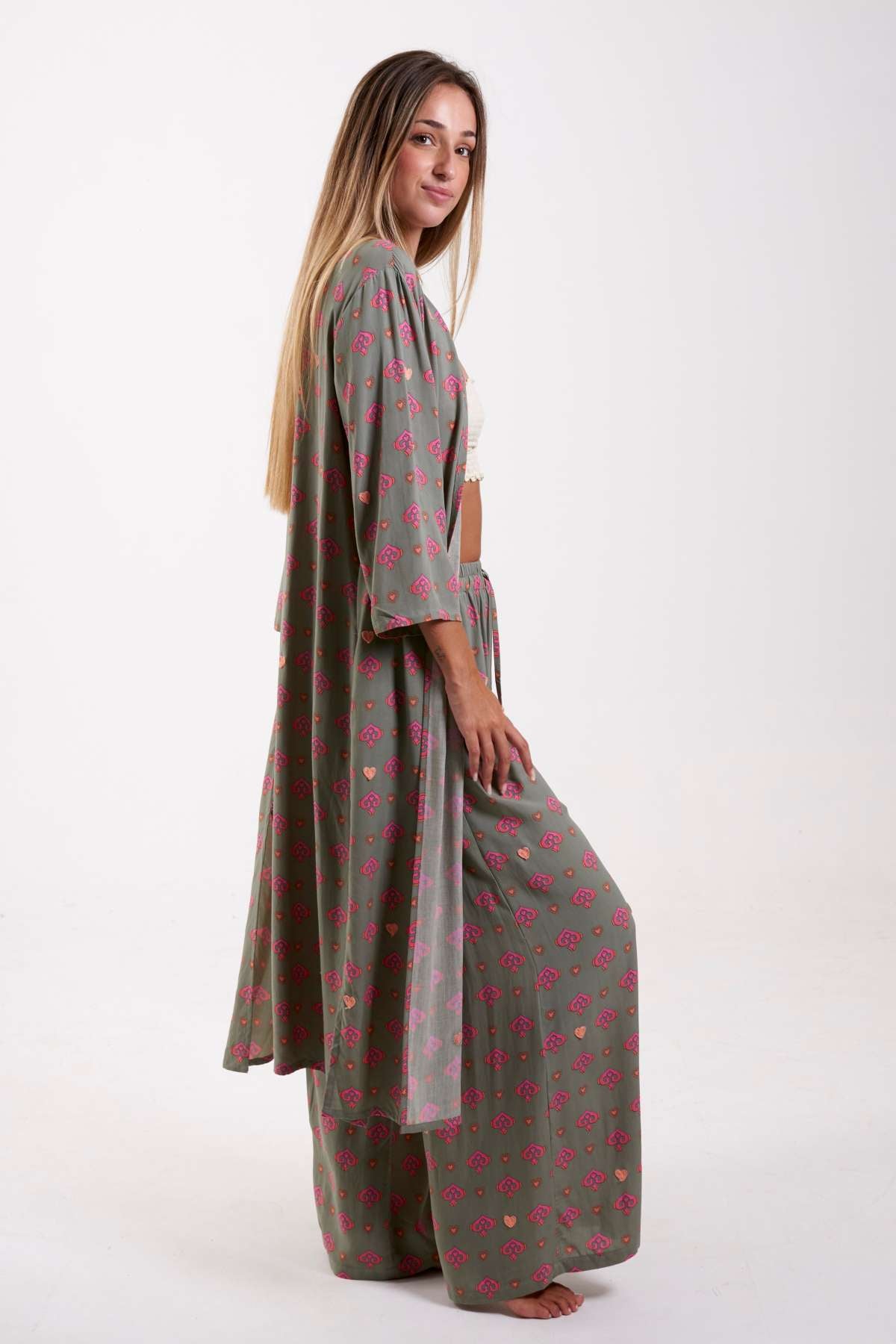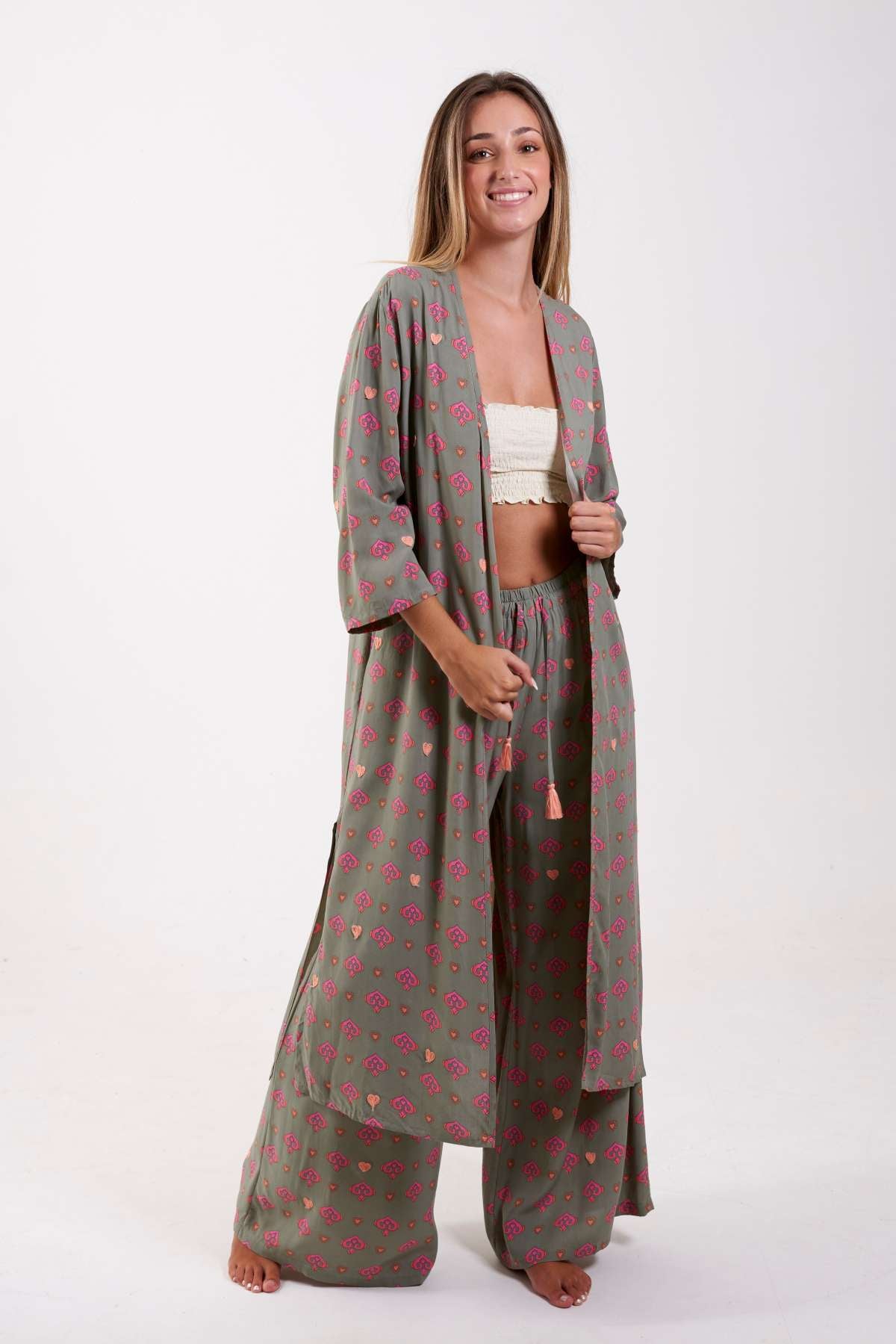 Está especialmente diseñado para combinar con la camisa Alika del mismo estampado, creando un conjunto coordinado estilo pijama, una de las grandes tendencias primavera-verano 2026, donde los looks relajados y elegantes son protagonistas.