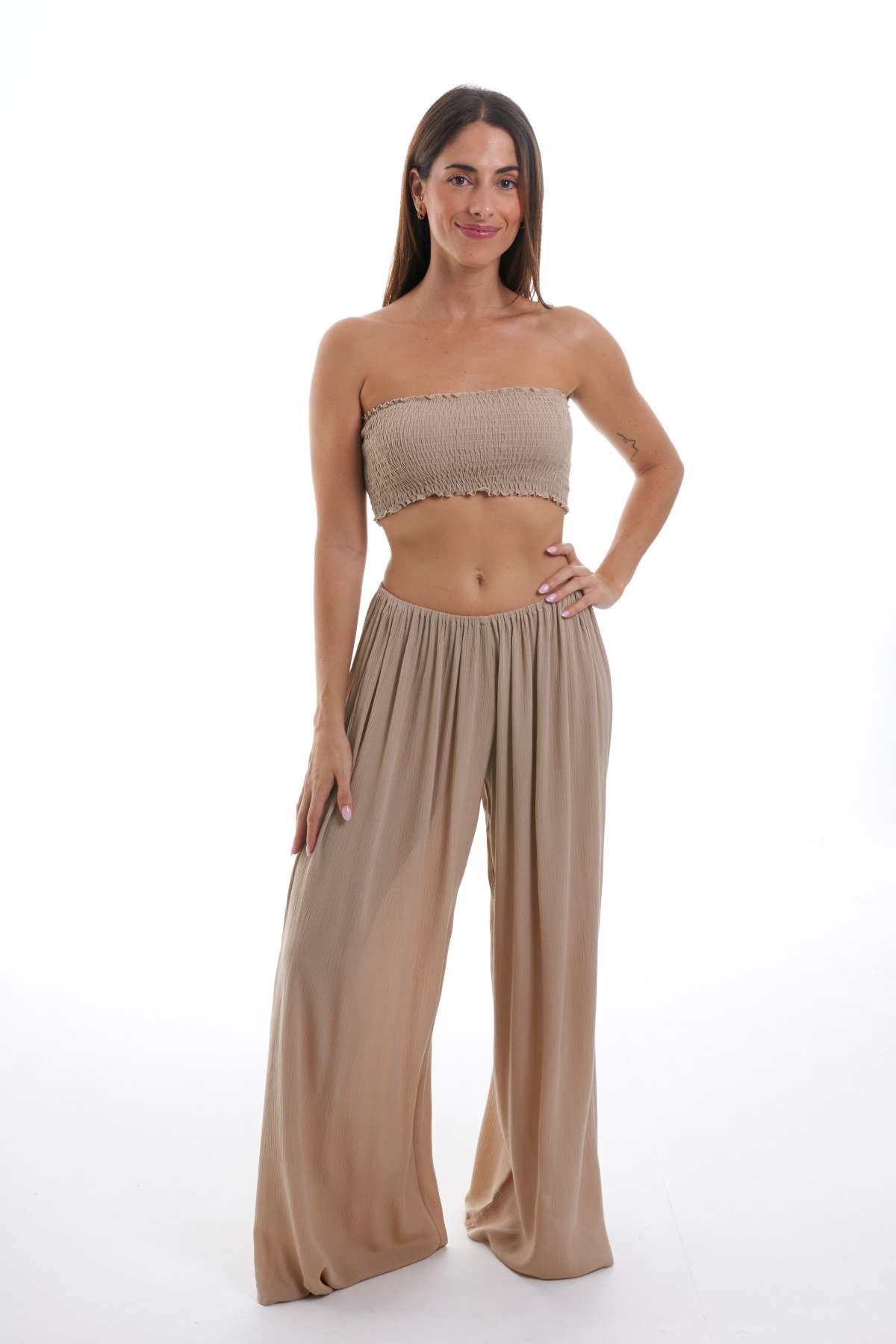 Combínalo con el Top Bandeau, Top Argos o Top Ios en el mismo tono para crear un conjunto elegante y veraniego.