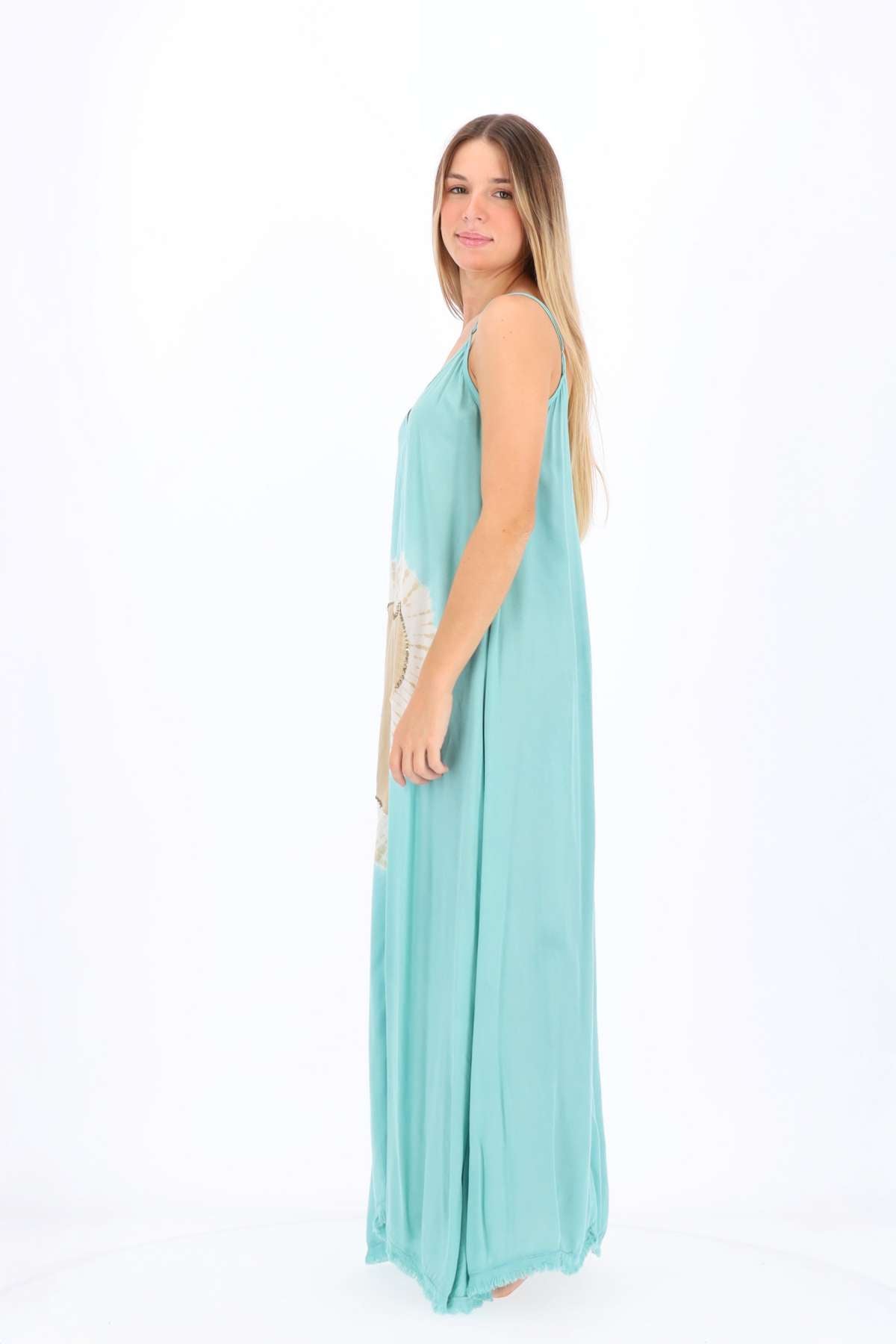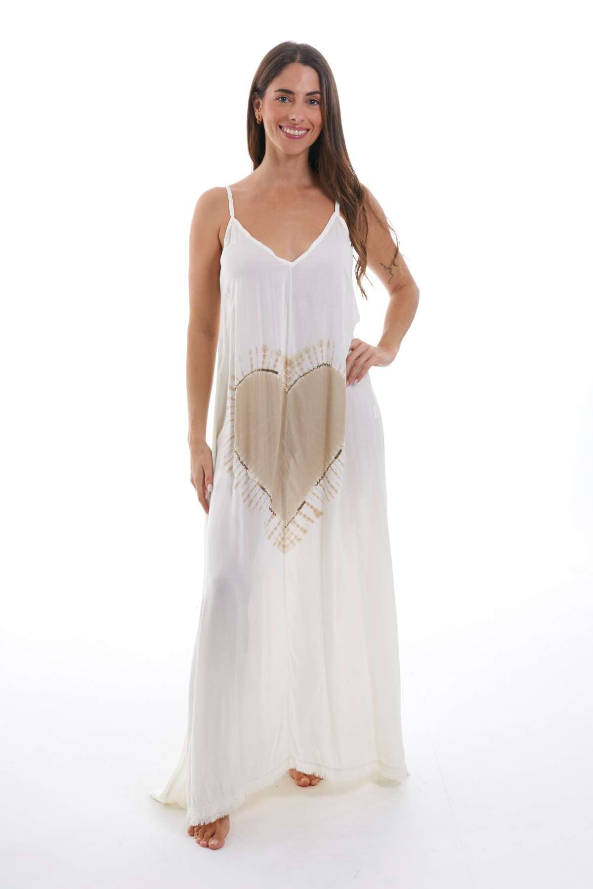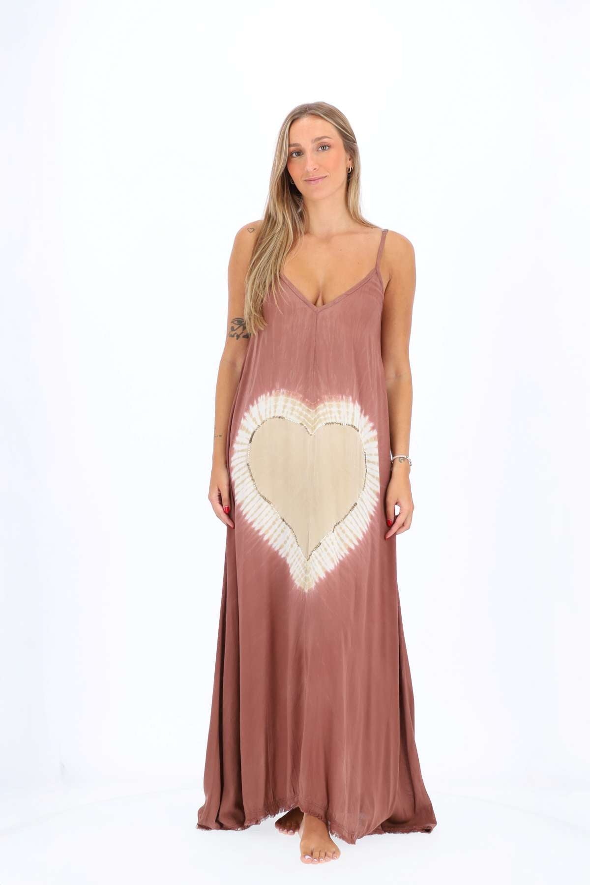 El Long Dress Tebo es la versión larga de uno de los patrones más exitosos de la marca, reinterpretado dentro de la colección Lovely con nuestro corazón tie dye artesanal como sello de identidad.